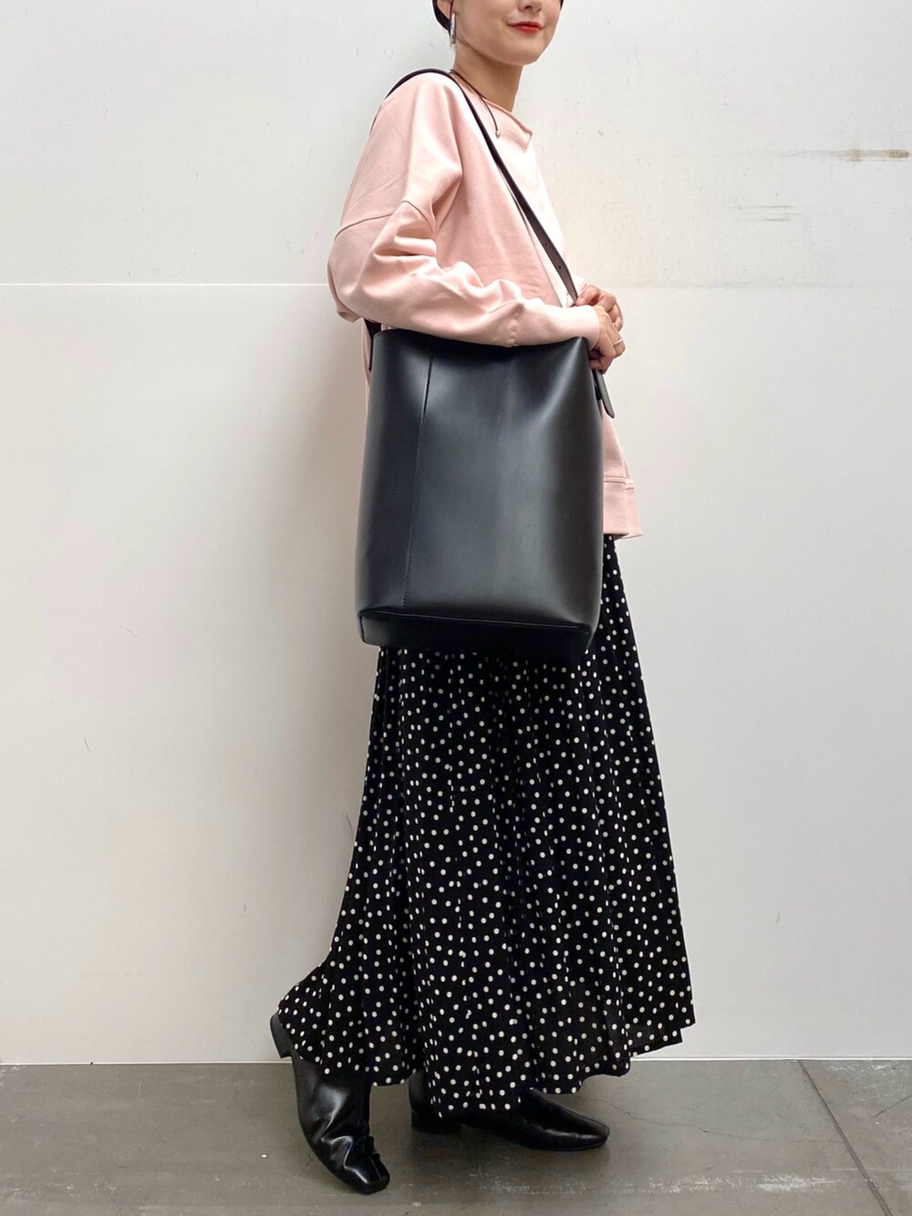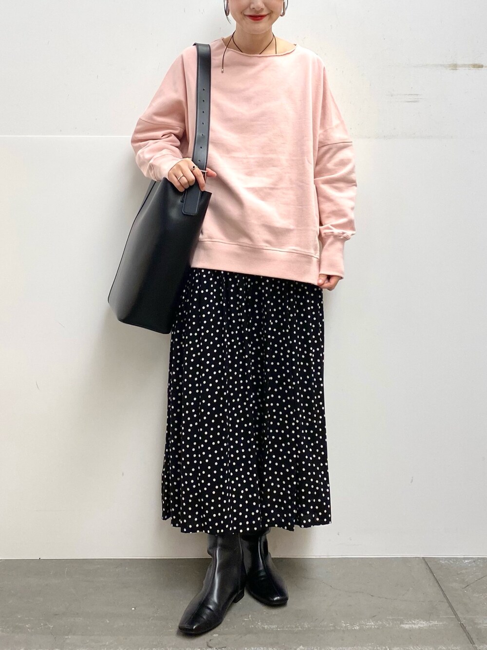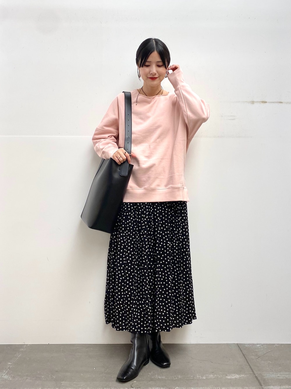 スカートは小さめのドットなので合わせやすいです!