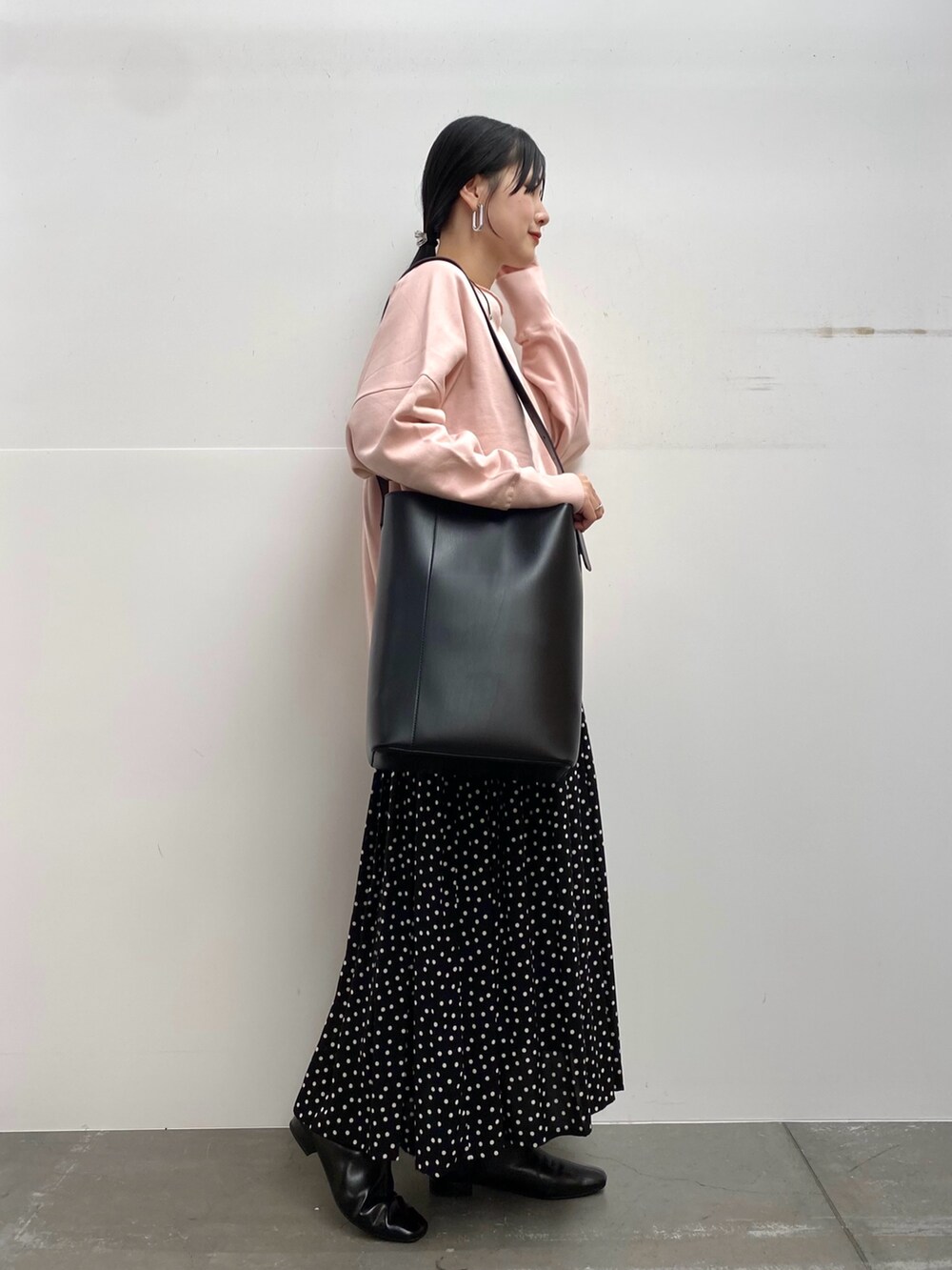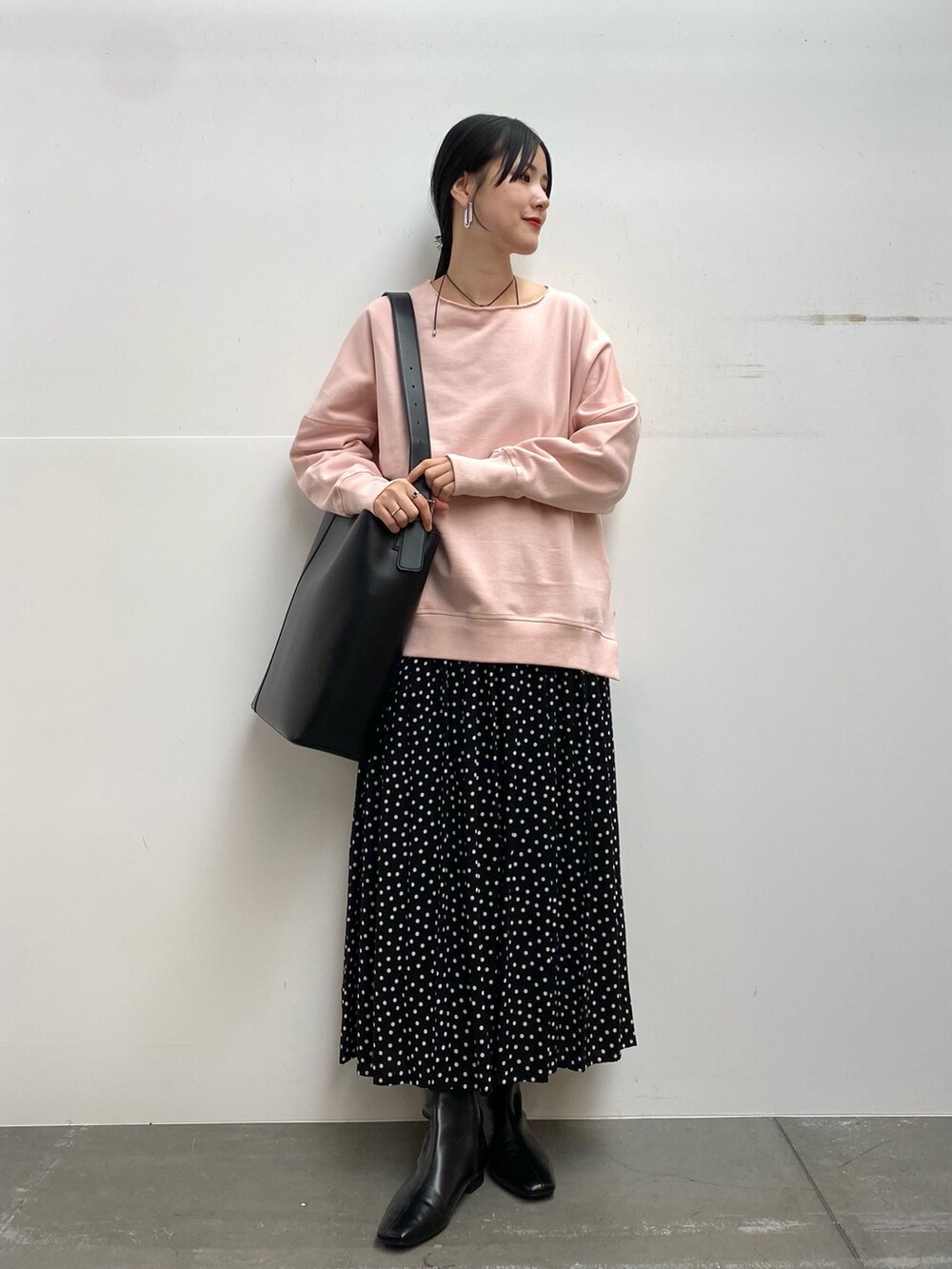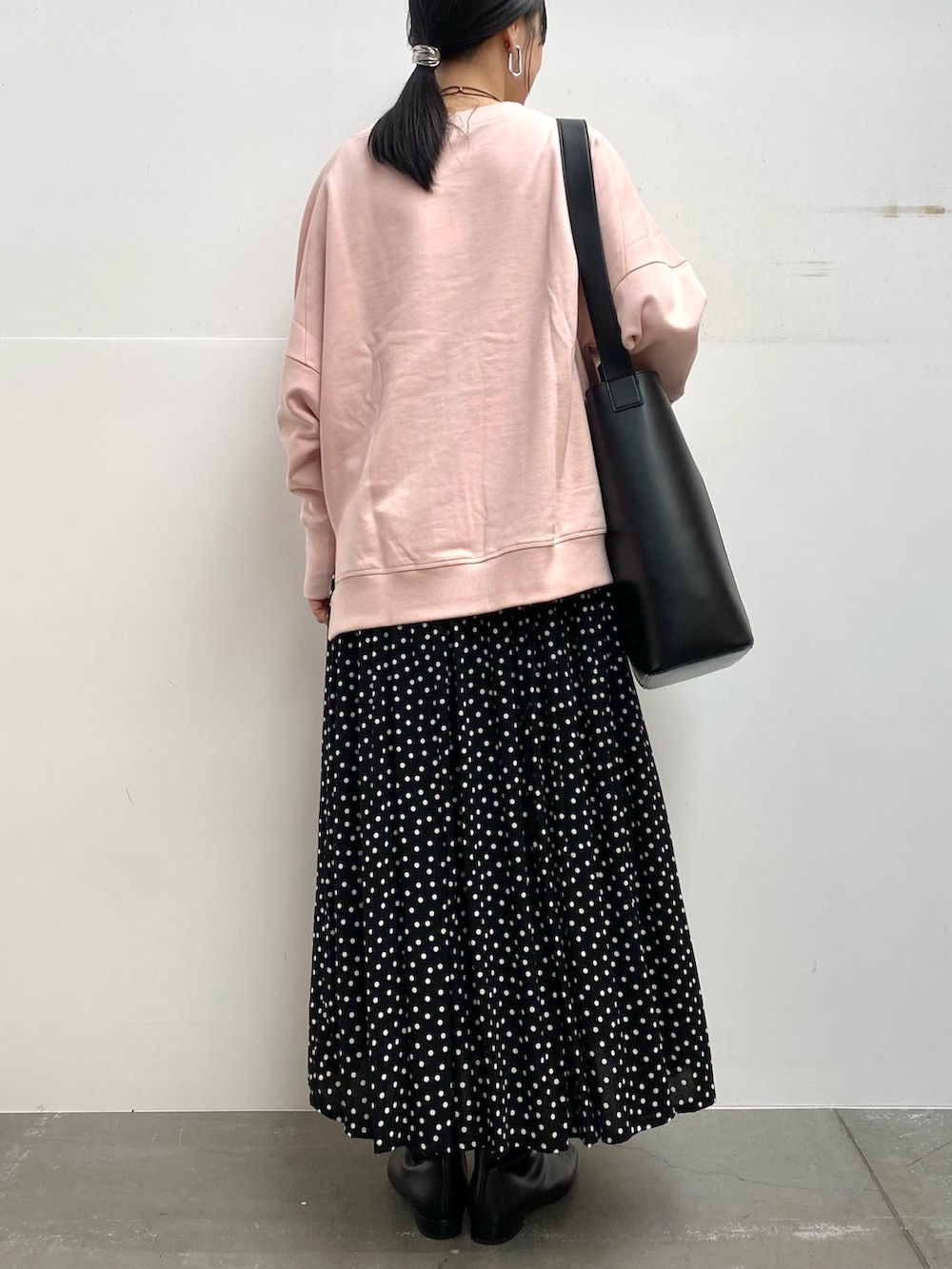スカートは小さめのドットなので合わせやすいです!