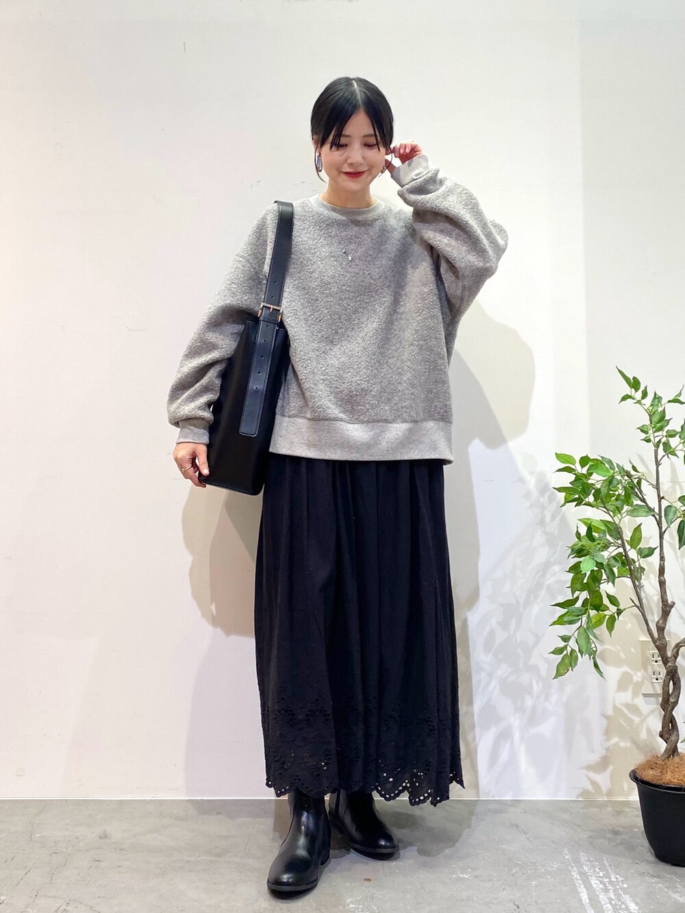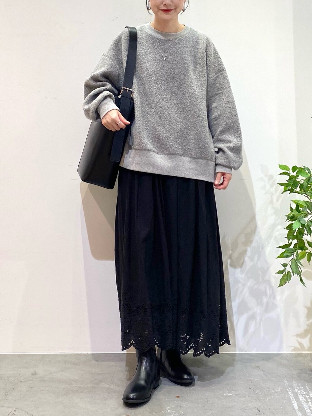 スカートはレースのデザインが女性らしい印象に♩