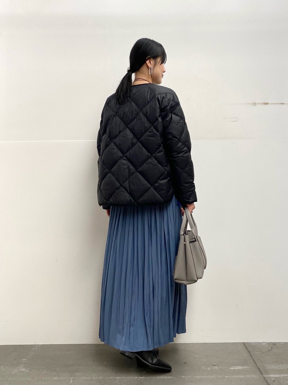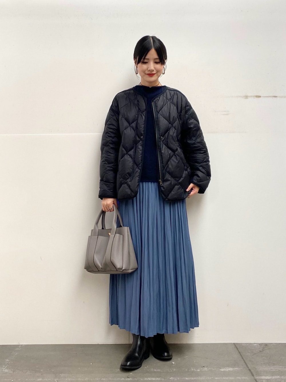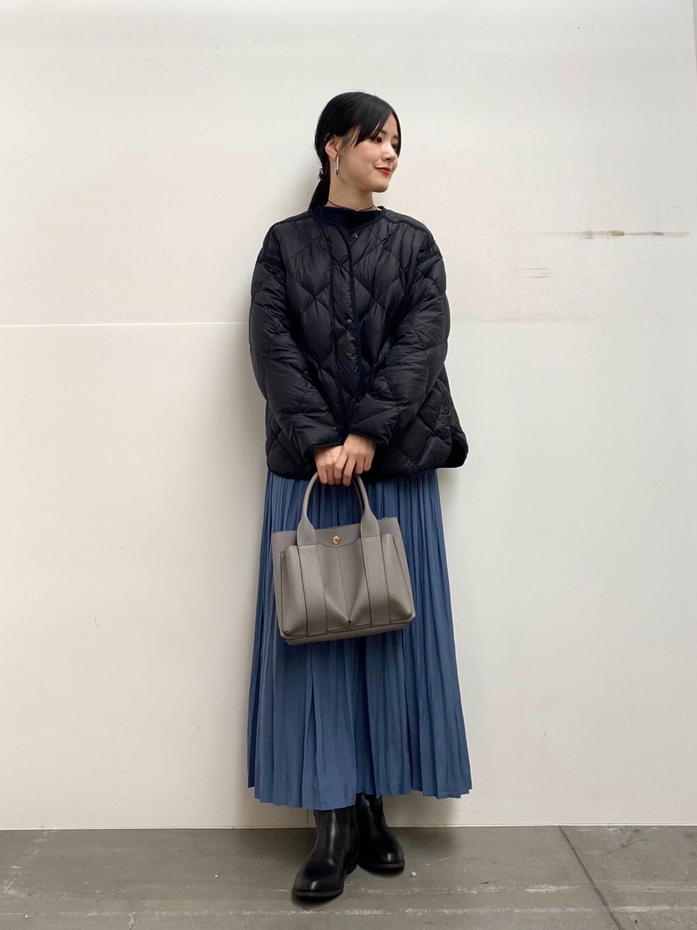 スカートのカラーに合わせて、他は暗めのトーンでまとめました♩