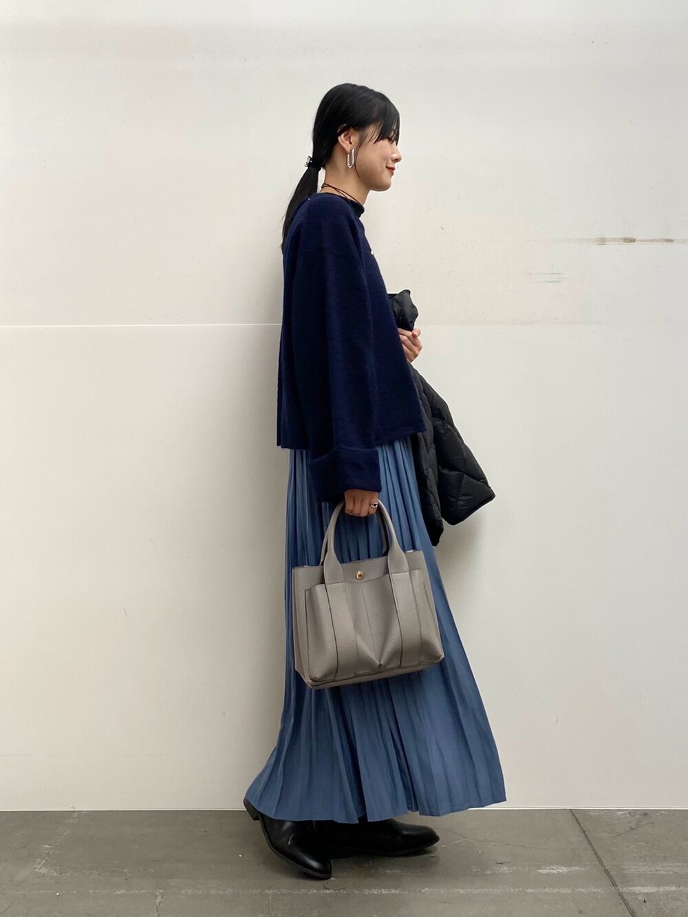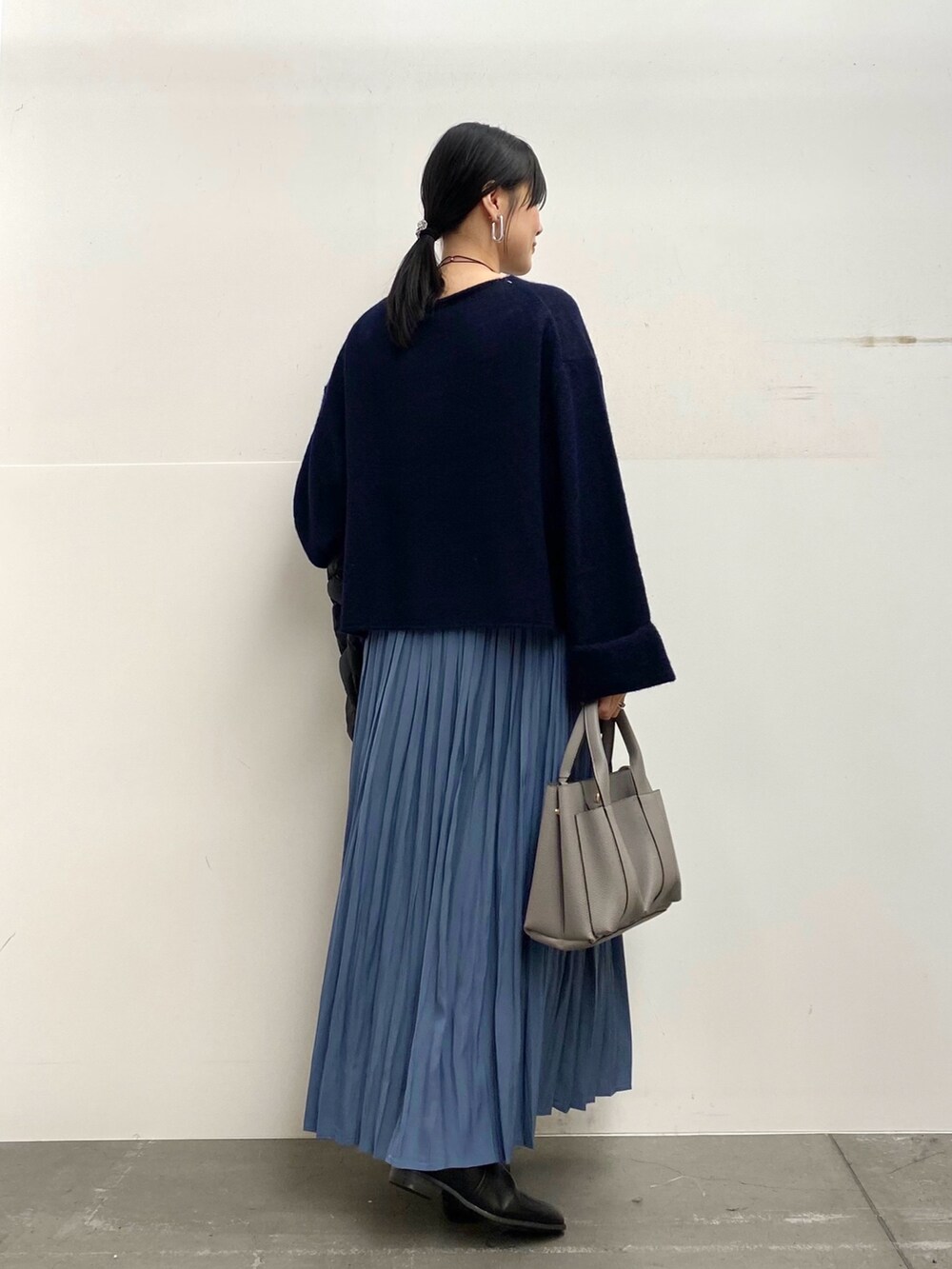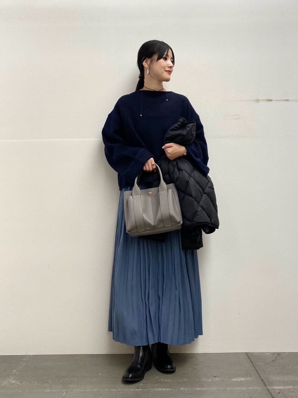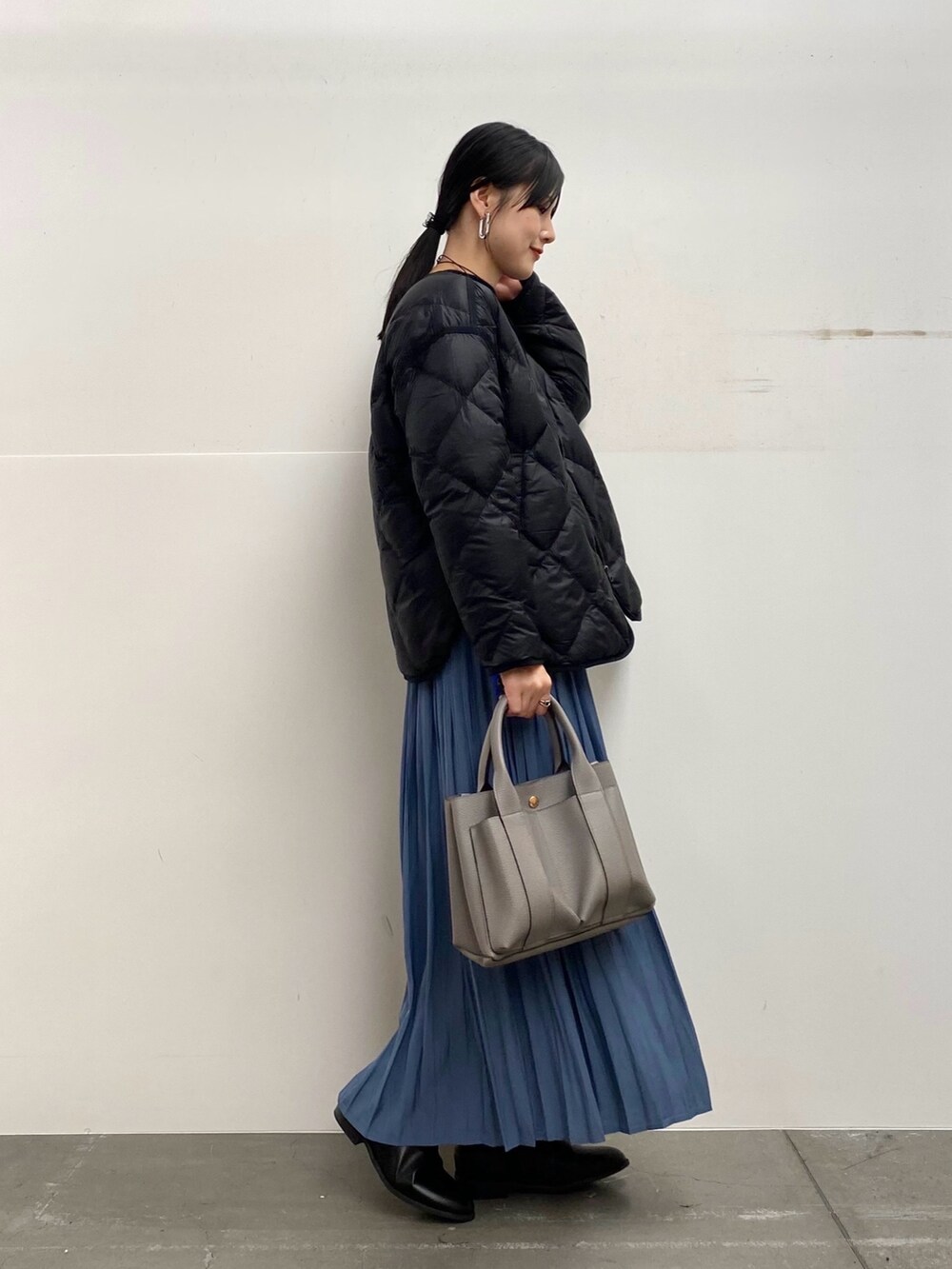 スカートのカラーに合わせて、他は暗めのトーンでまとめました♩