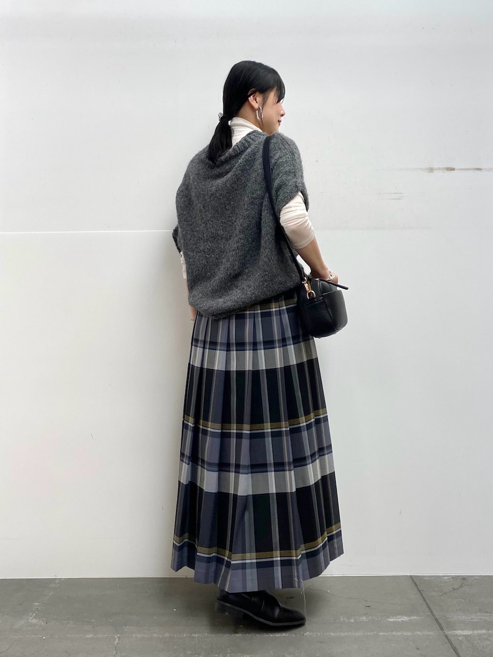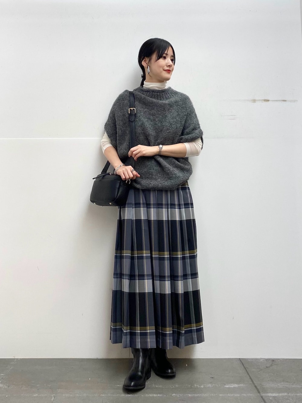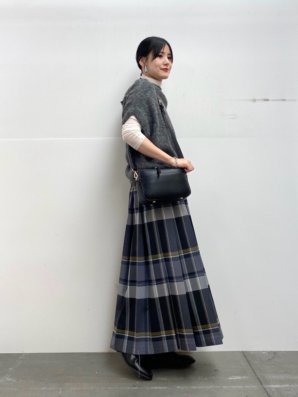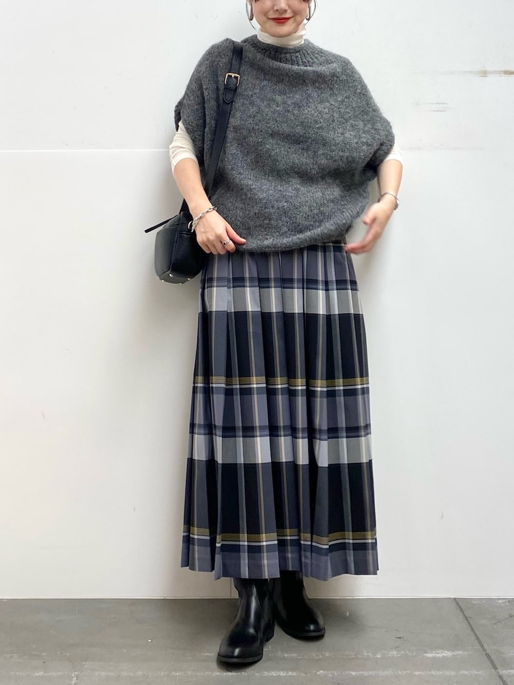 スカートはプリーツとチェックのデザインが取り入れるだけで秋冬らしい印象に。