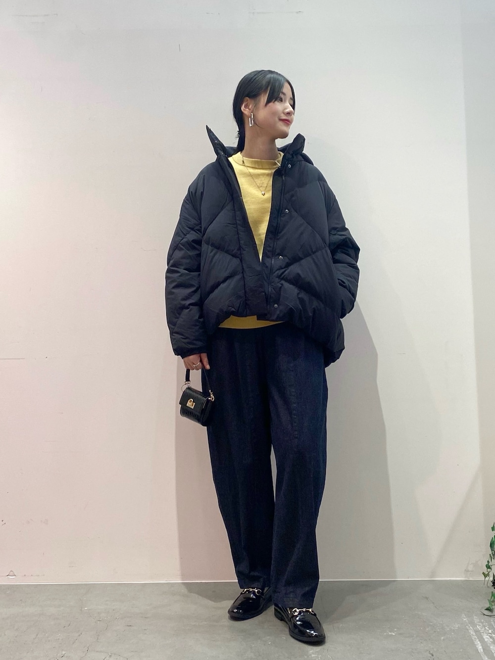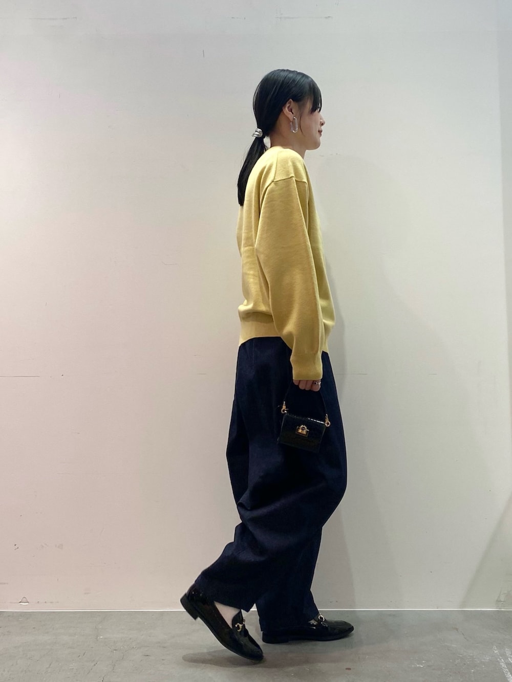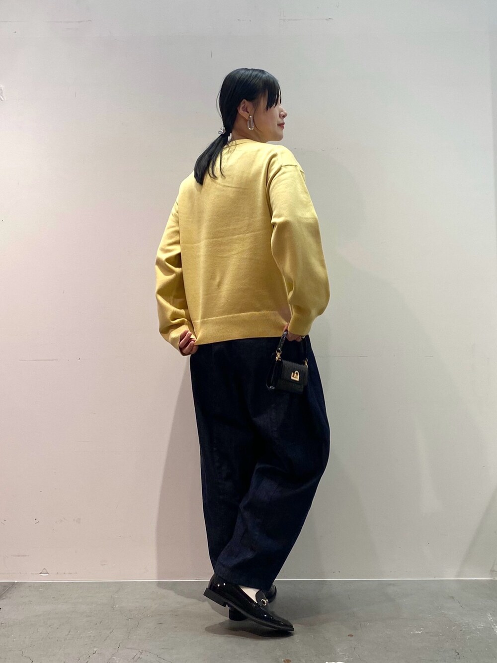 黄色のニットとデニムを合わせてカジュアルにスタイリングしました♩
