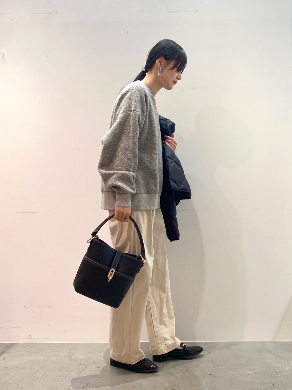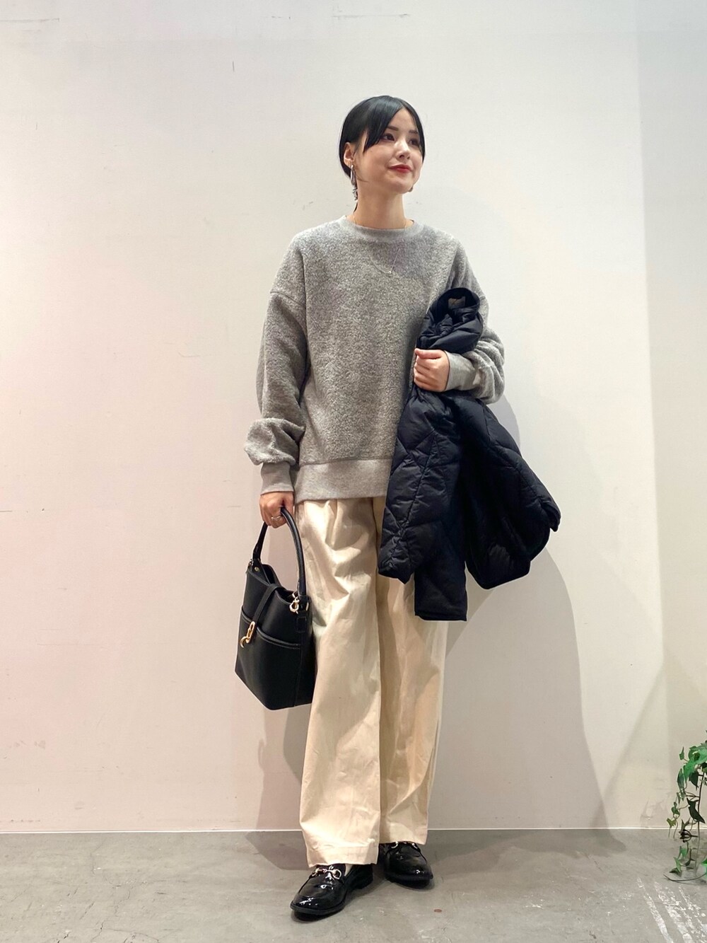 もこもこのボアのトップスをデニムと合わせてきれいめカジュアルにスタイリングしました!