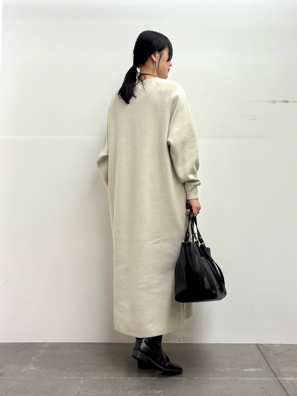 ワンピースはスウェットライクな素材感で、身体のラインを拾わず楽にお召しいただけます!