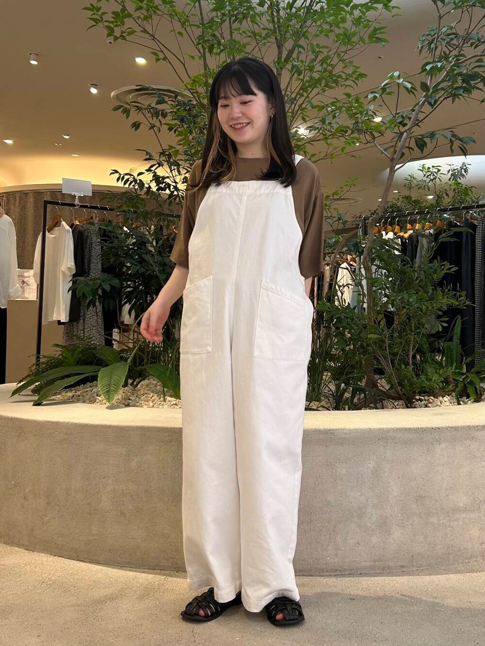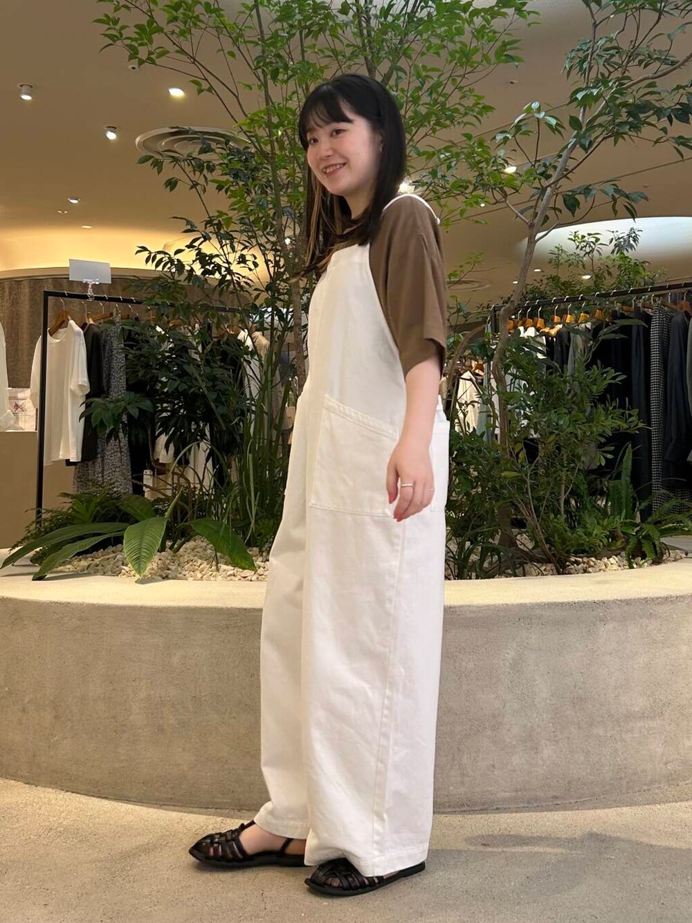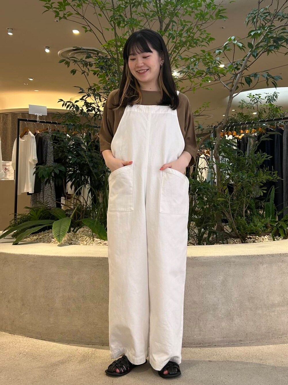 サロペットはウエストのボタンでシルエットが調節できるので、カジュアルにも大人っぽくも雰囲気を変えられます☀️