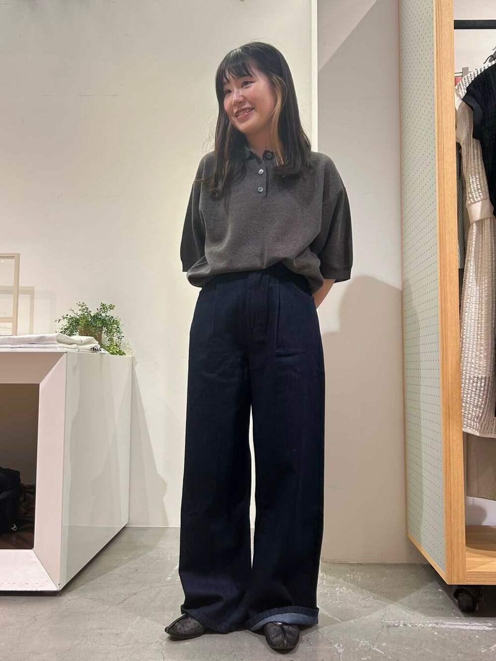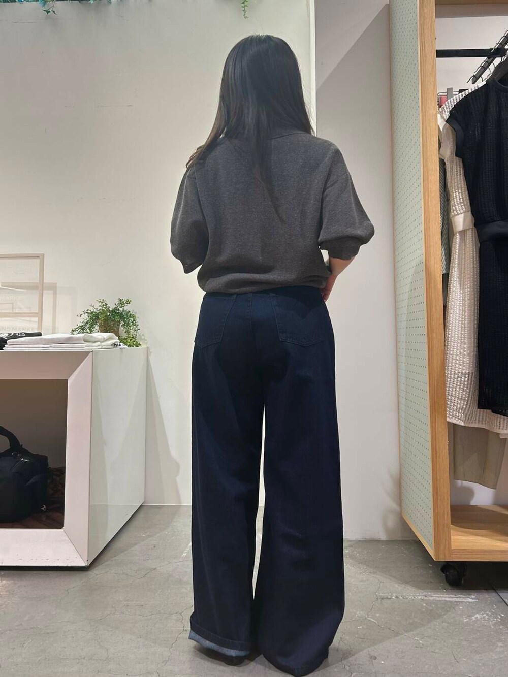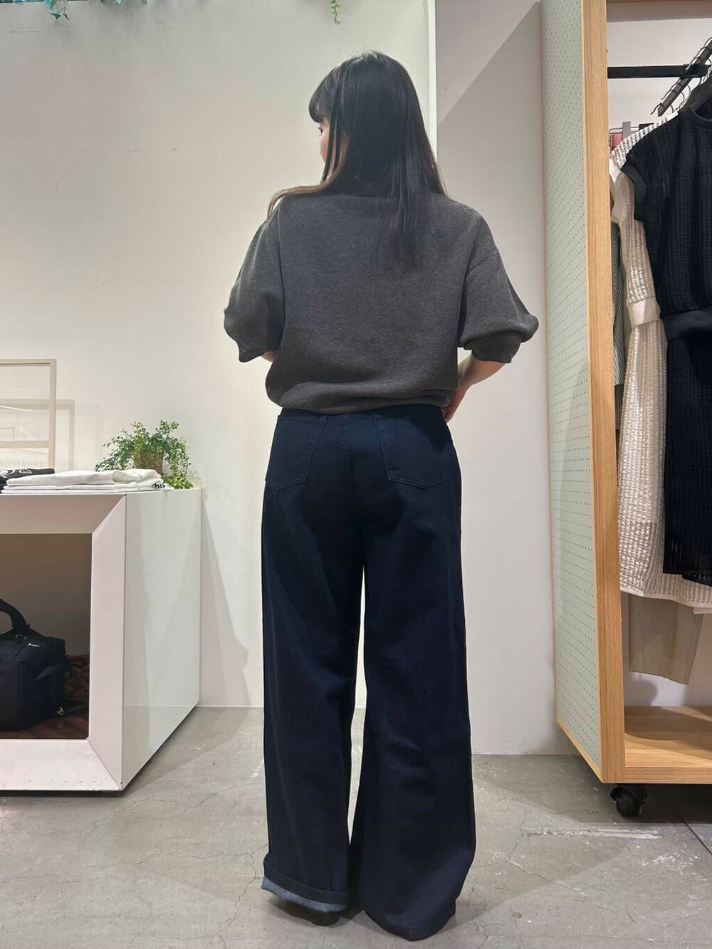 デニムはフロントタックが入っていて、ワイドなシルエットでもウエストがキュッとなってスタイルアップして見せてくれます✨裾は長めなので、折り返して裏地を見せたり、ヒールがあるシューズを合わせて綺麗めなスタイリングを楽しむこともできます🫶🏻