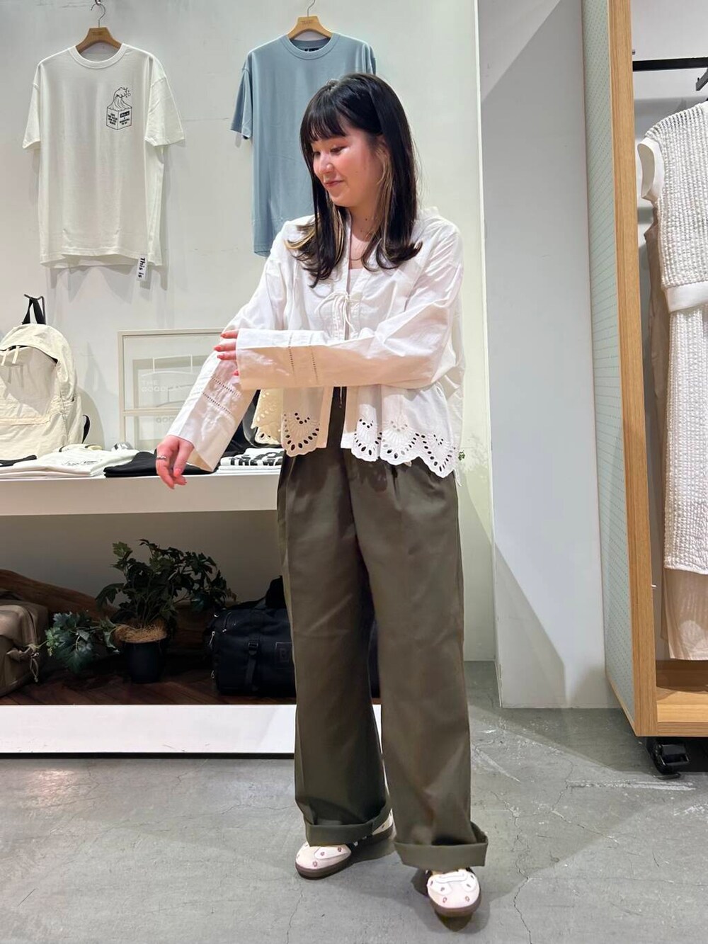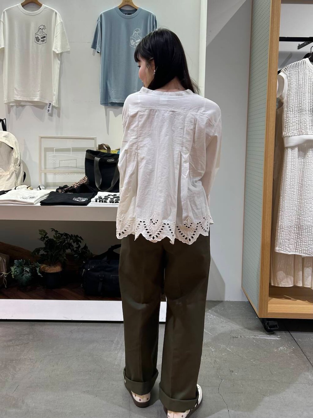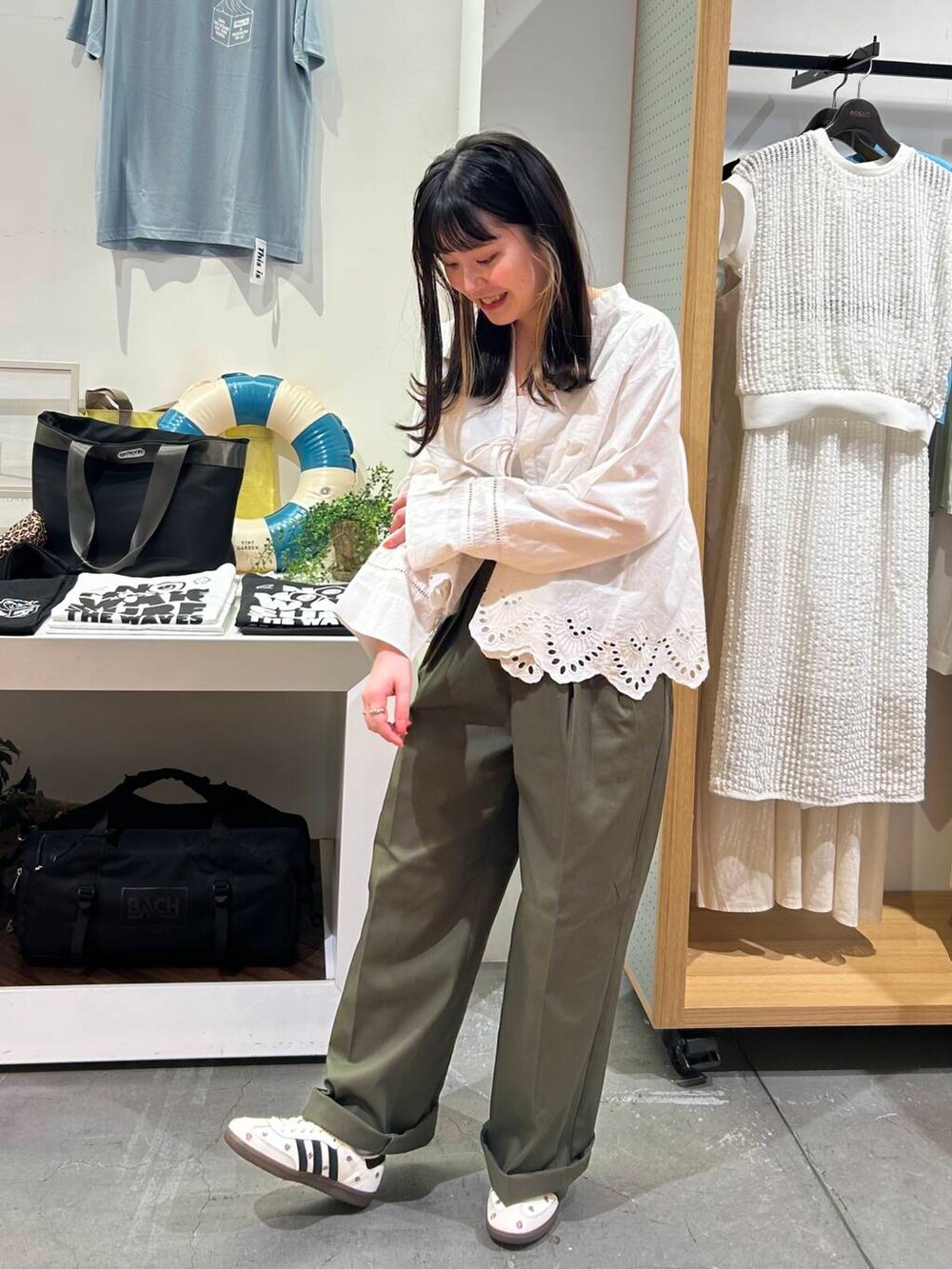 ワイドパンツは丈長めで2回折っていますが、カジュアルな印象になって甘さを抑えたい時にはちょうどいい🫶🏻