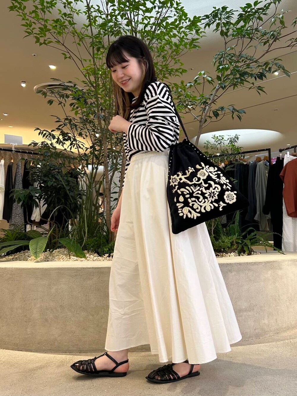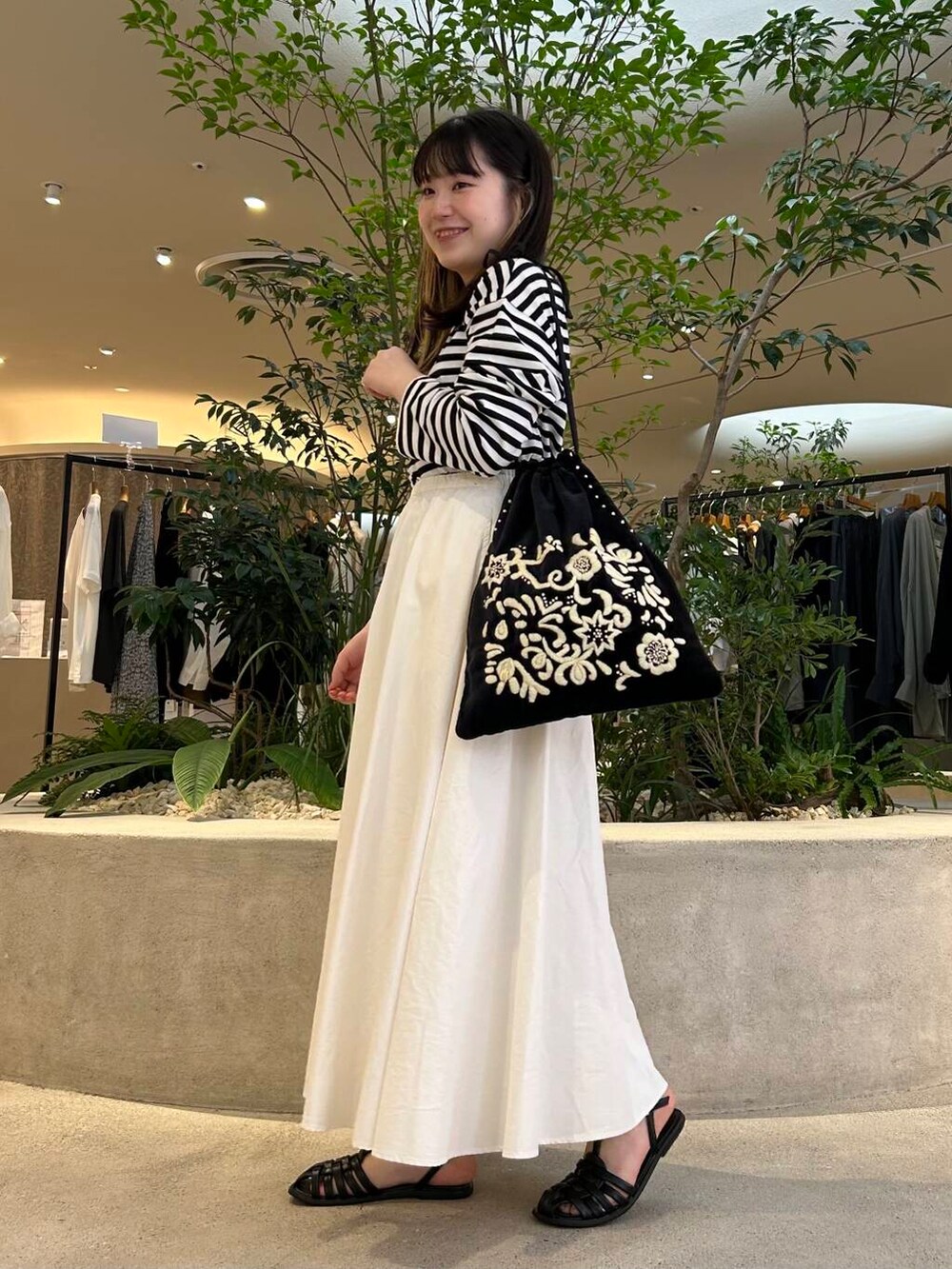 ボーダーとバッグの刺繍の組み合わせが秋っぽくて可愛い🍂💞