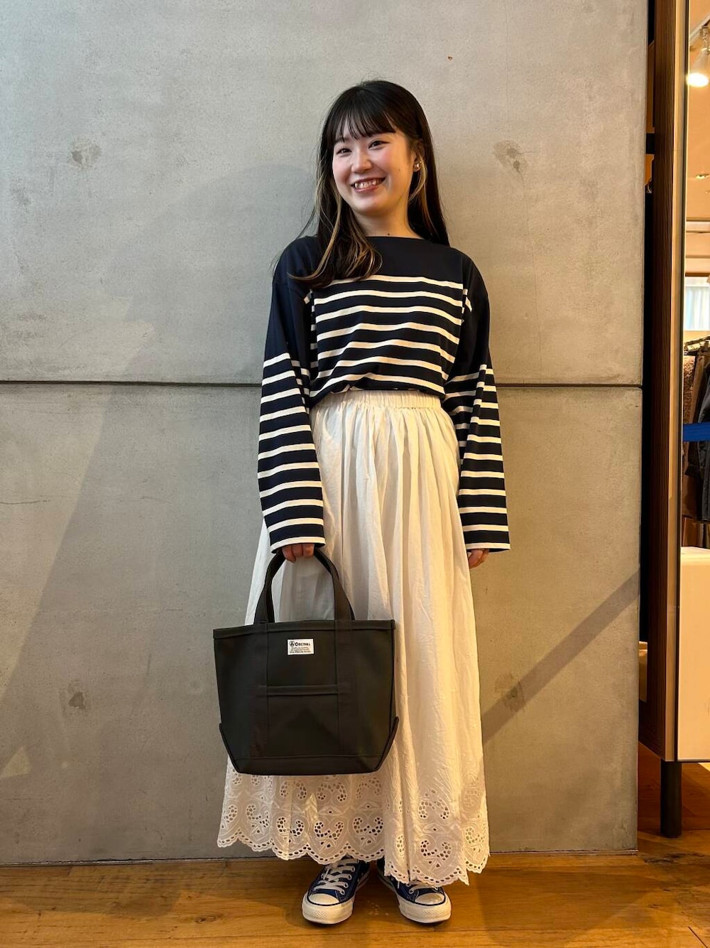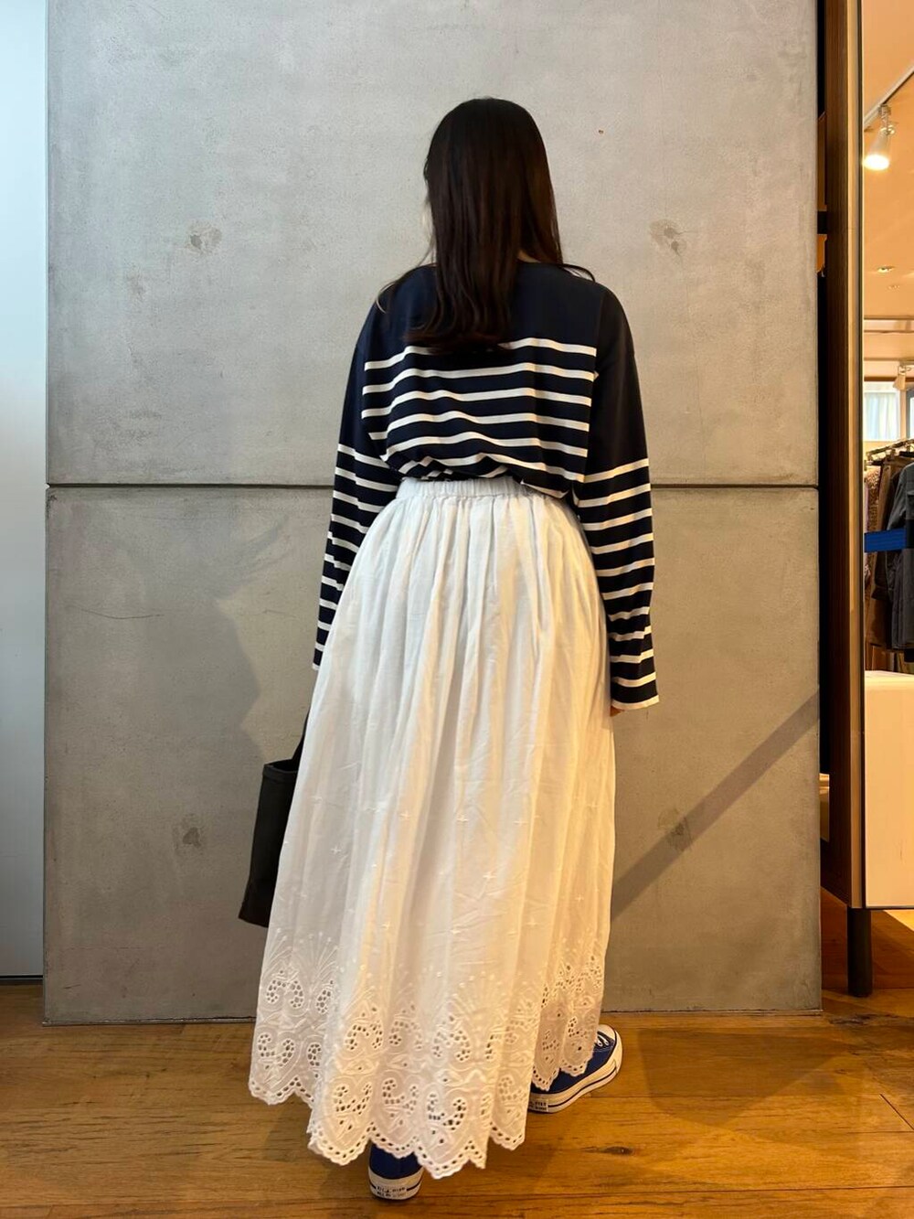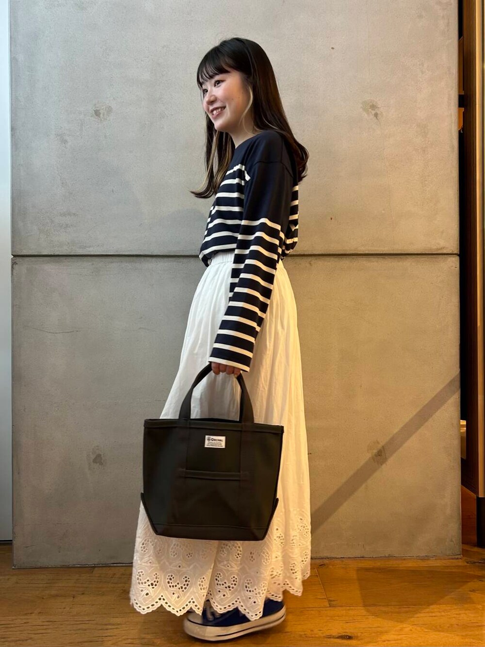 ボーダーはカジュアルになりがちですが、レーススカートを合わせることで可愛らしさがプラスされてお出かけコーデにぴったり🫶🏻