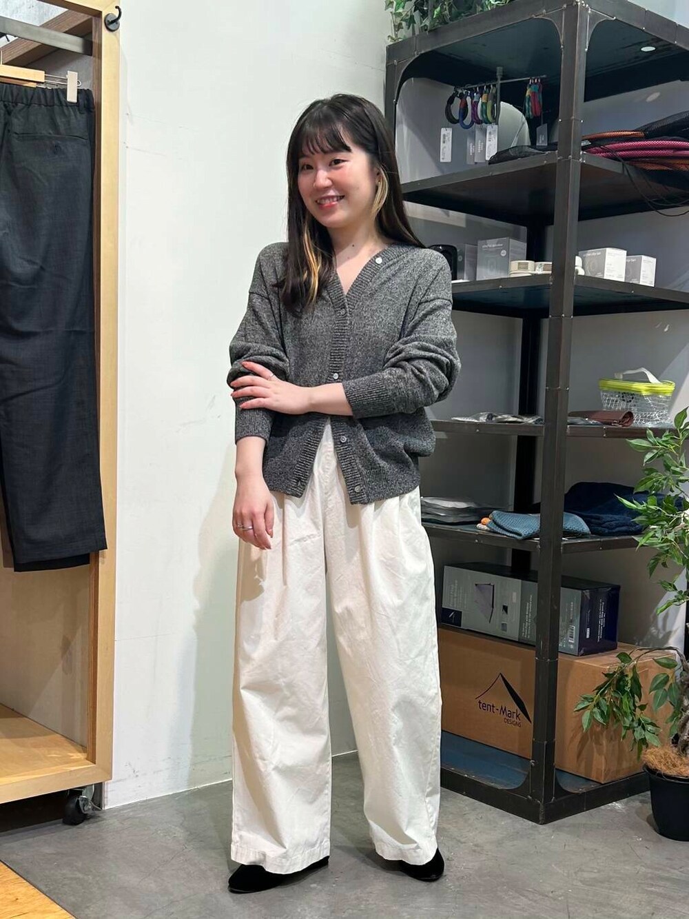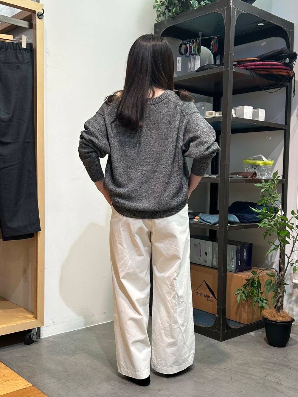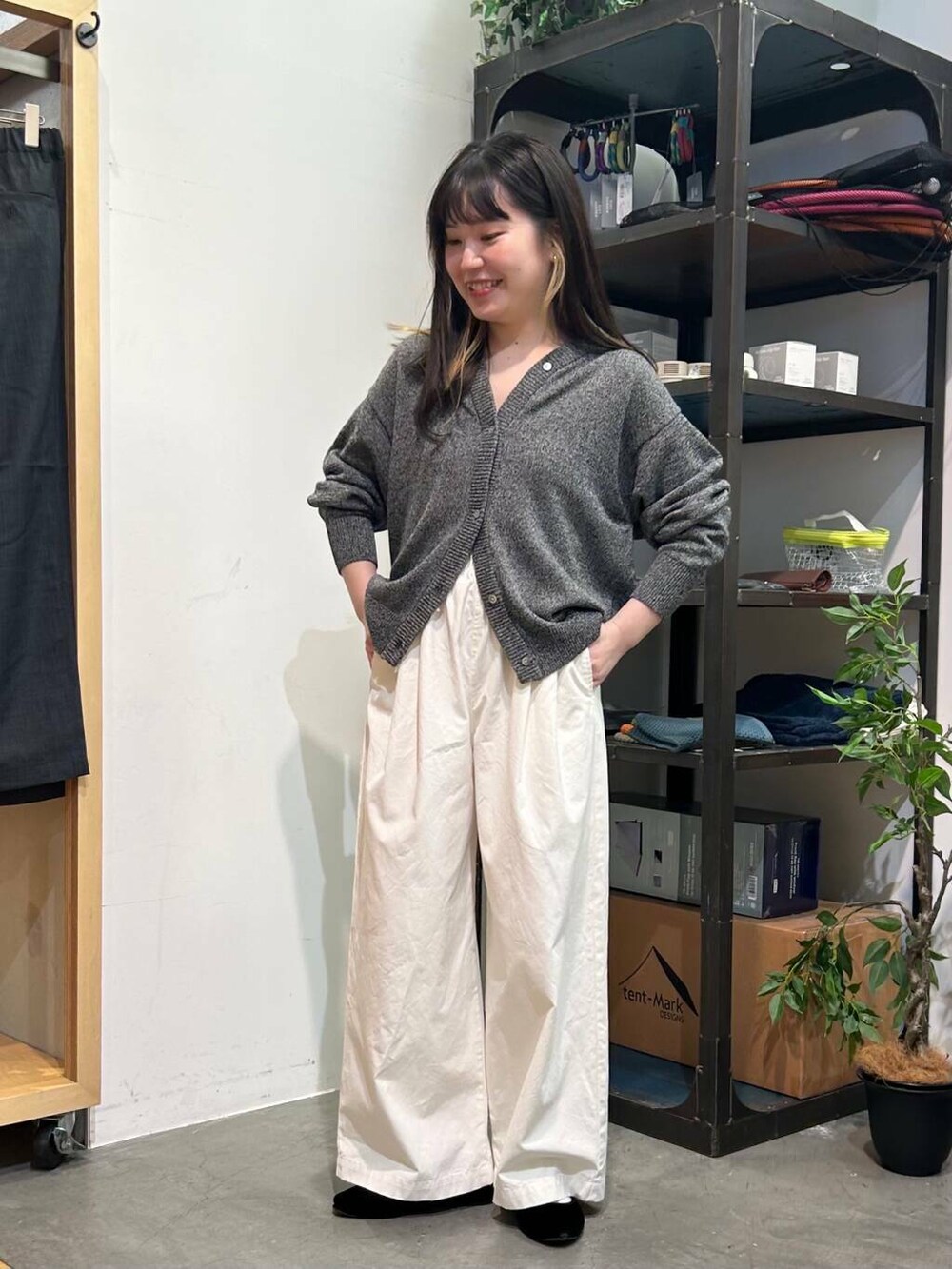 ワイドパンツはタックが入っていて、ウエストゴムで楽ちんなのに綺麗めな印象に✨生地のハリ感も高級感があります💖