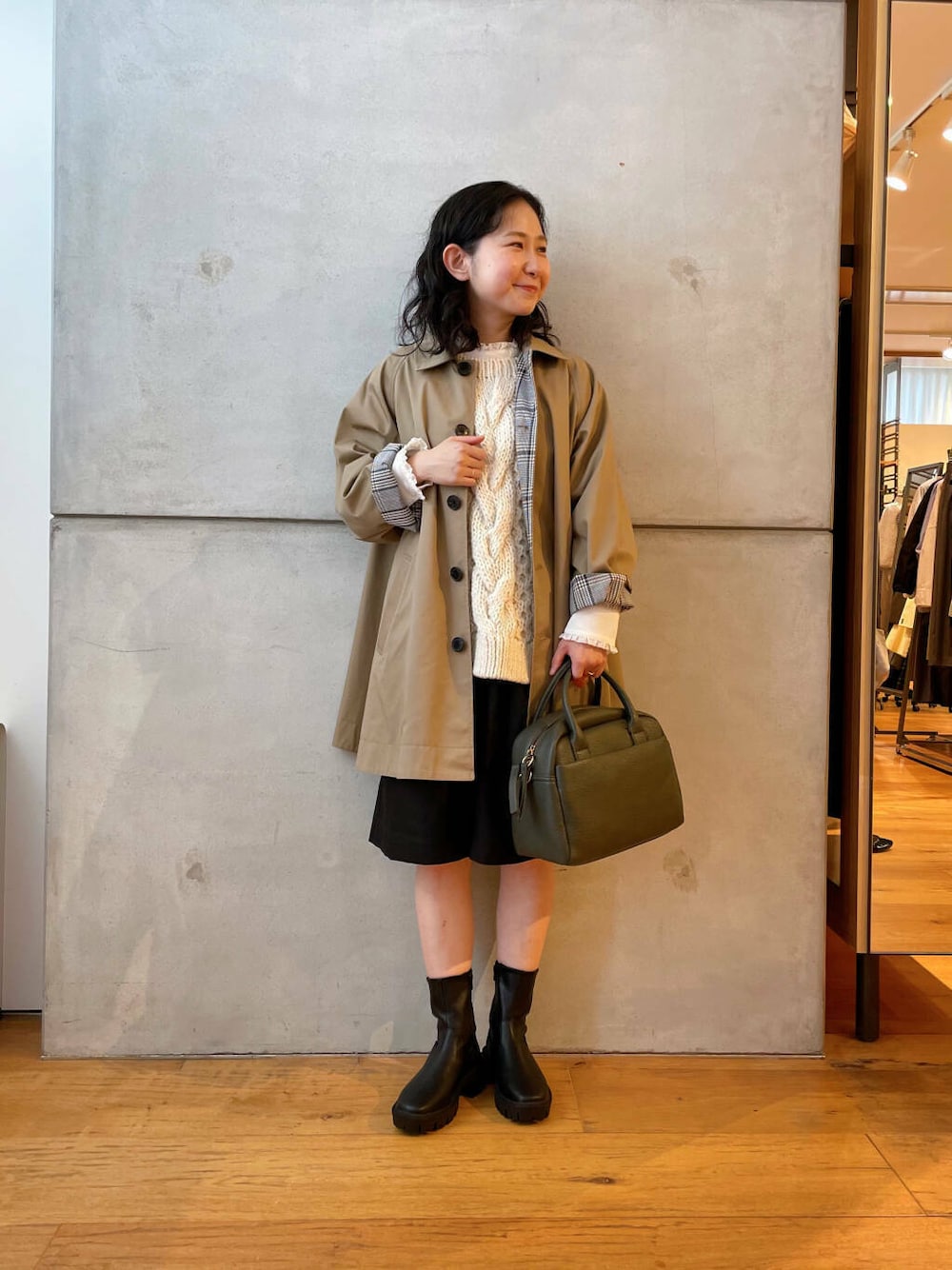 無印でもチェックでも裏地のカラーを見せて着るのがお洒落です!