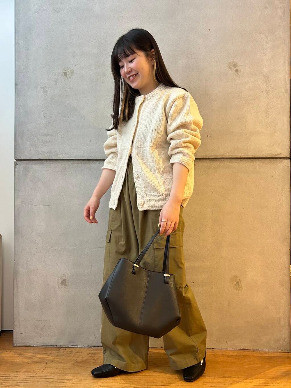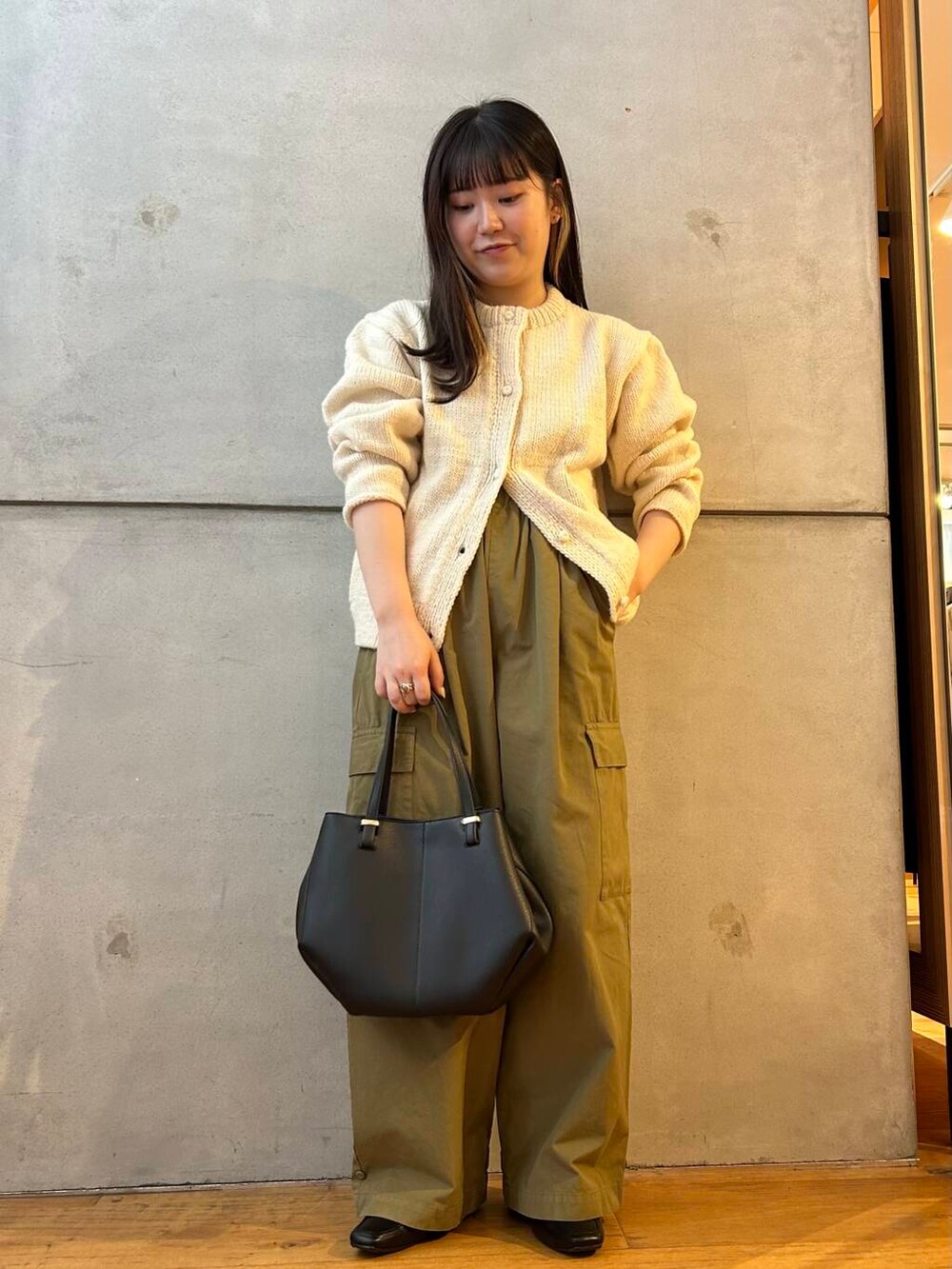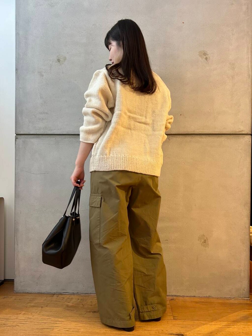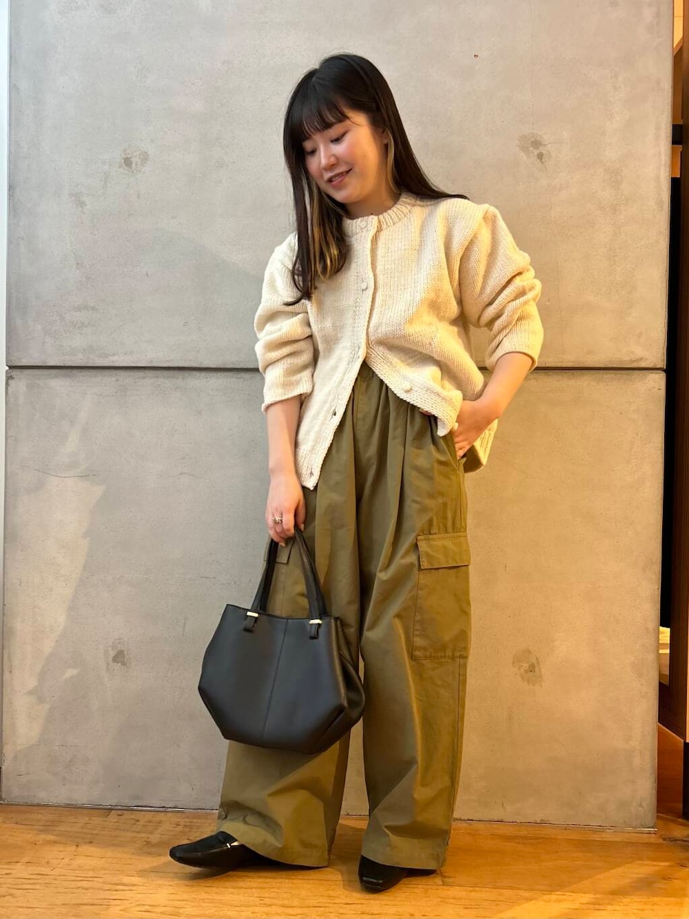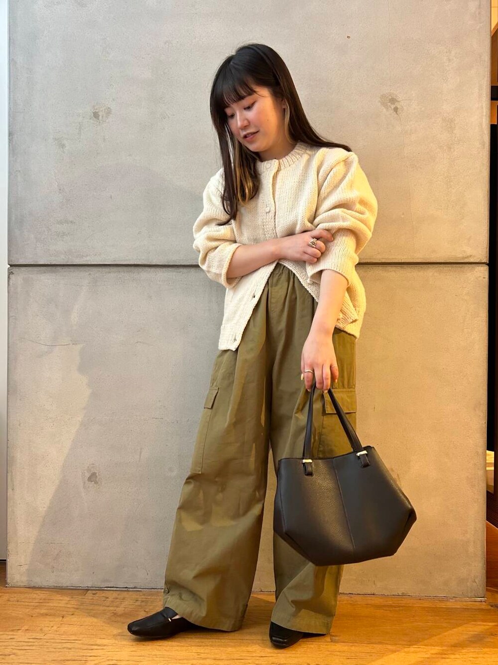 かわいらしさを抑えたい時はメンズライクなユーティリティパンツを合わせるのがおすすめです✨ポケットが4つもついていて、ウエストゴムで楽ちん🫶🏻裾のボタンを調節すれば裾を絞ったシルエットも楽しむことができます✨