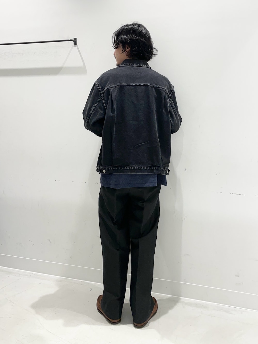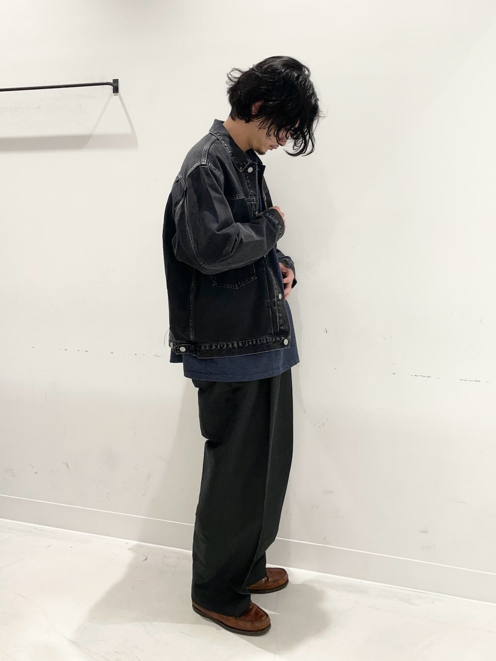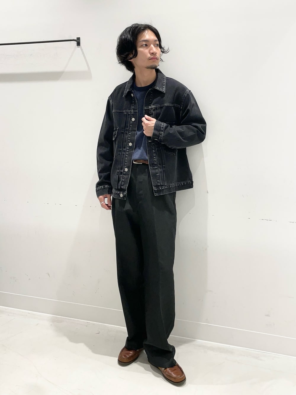 雰囲気の良いデニムをきれいなスラックスに合わせたコーデ。