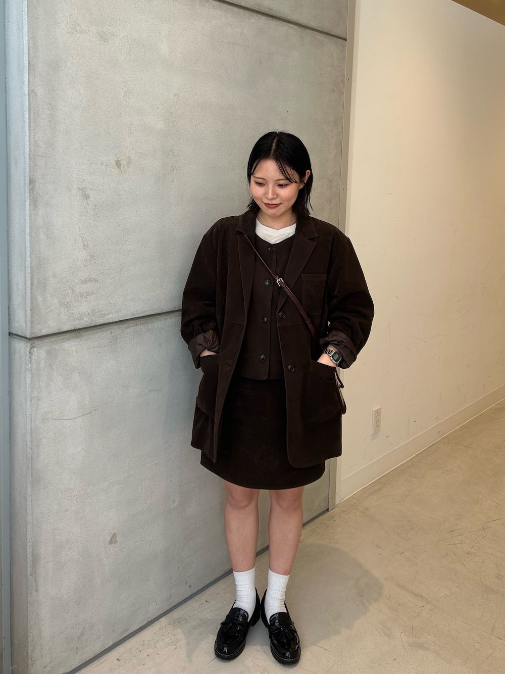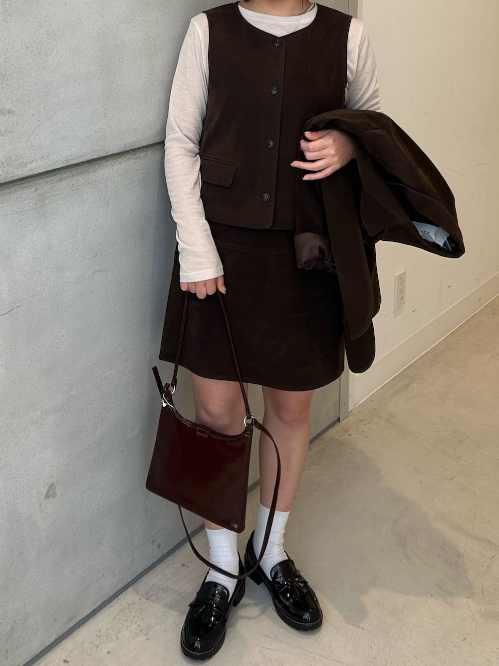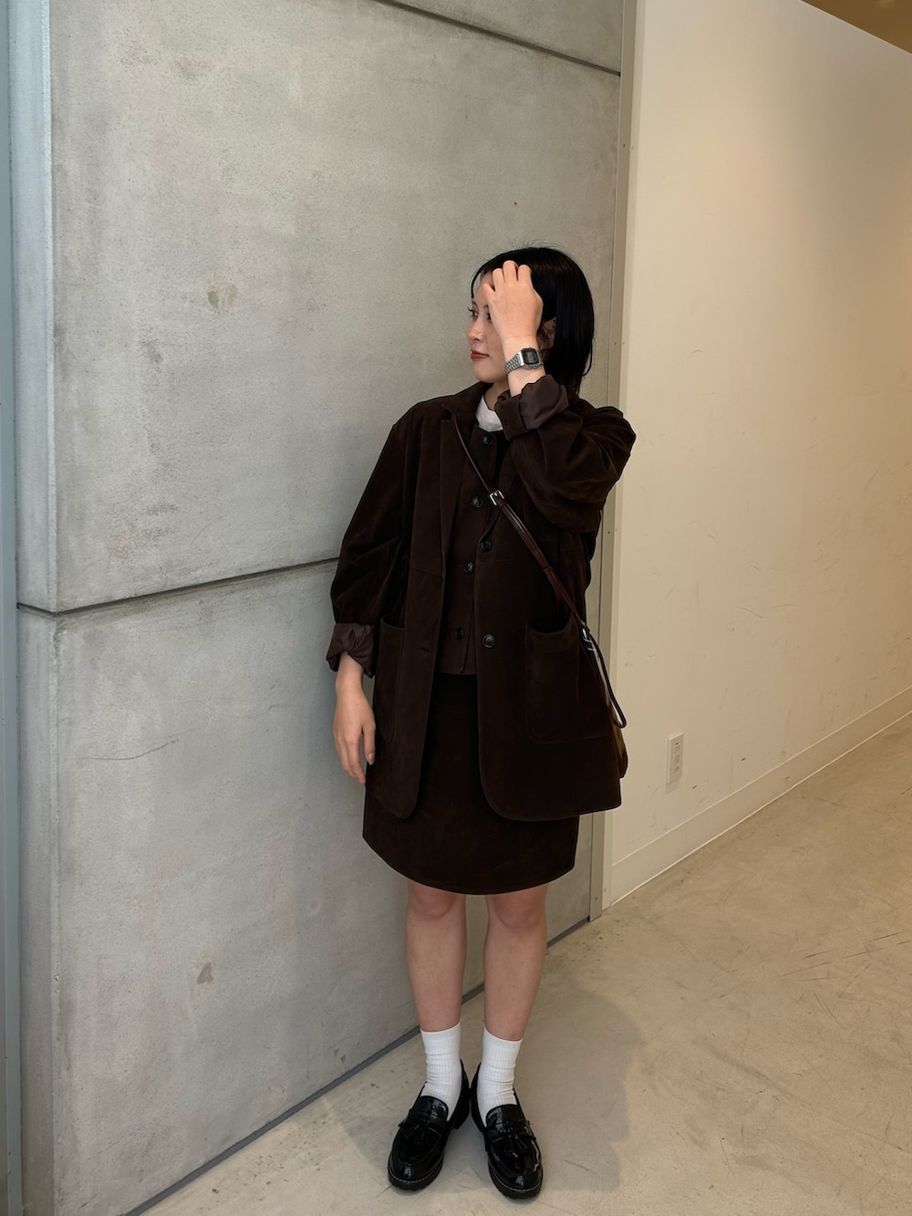 品のある生地感とダークブラウンの色味が女性らしいので、大人っぽく着こなせます🤎