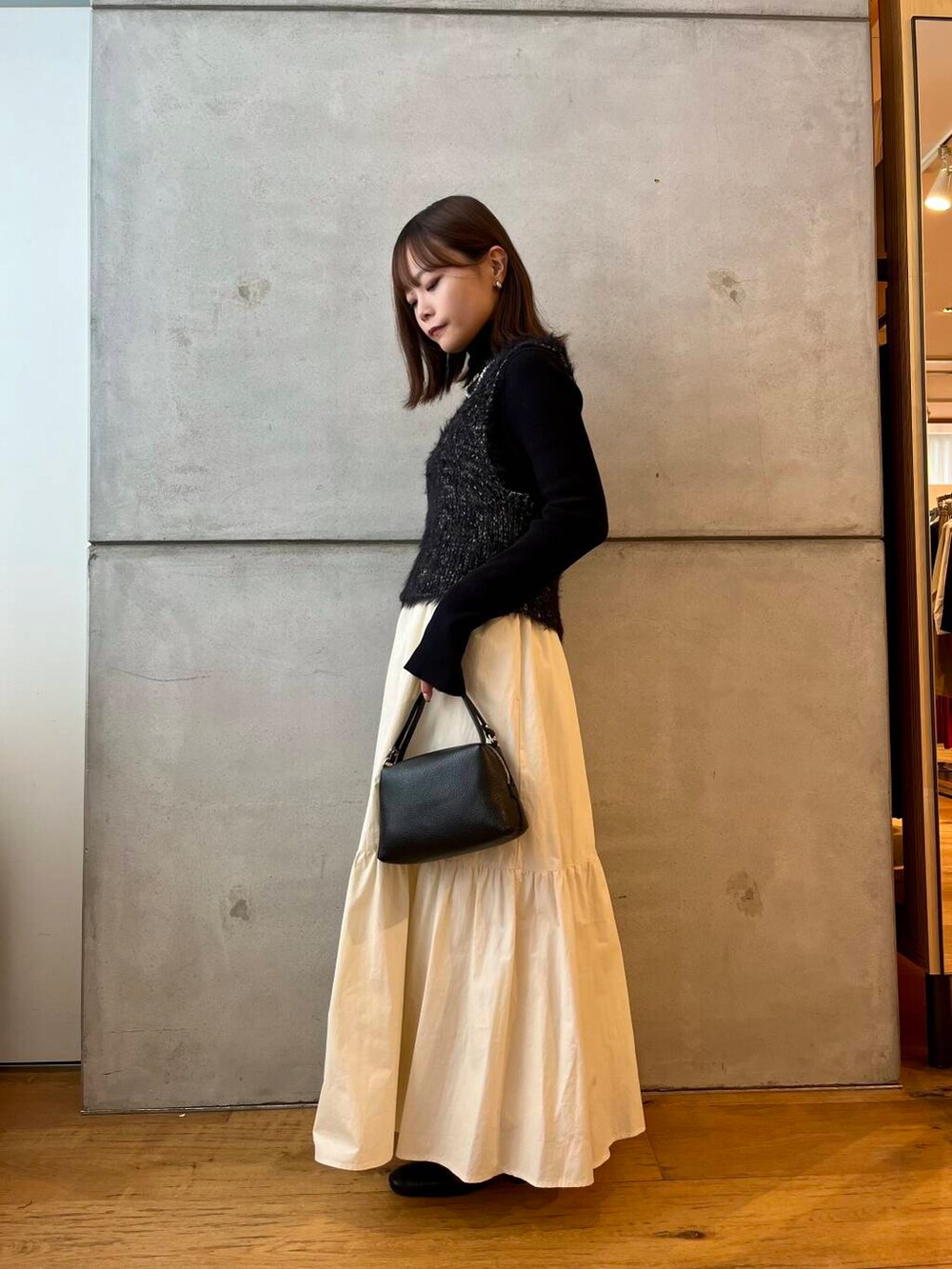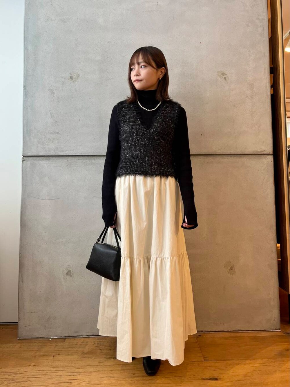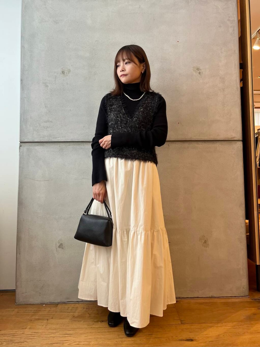女性らしいコーデで合わせました。