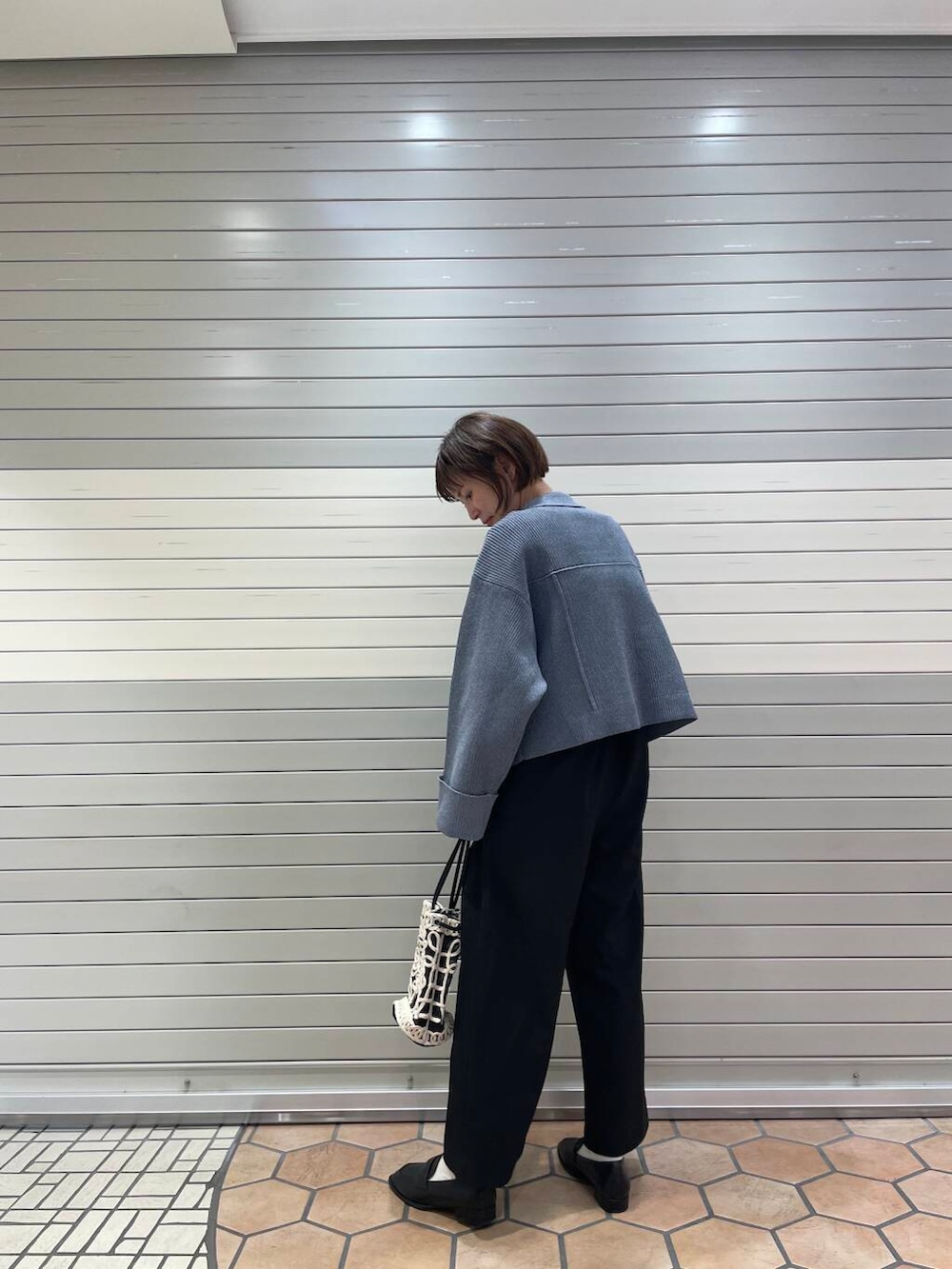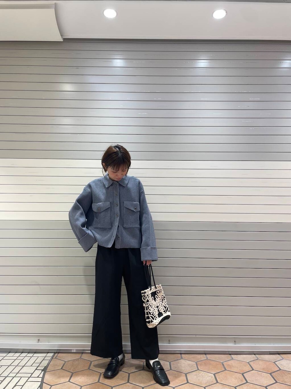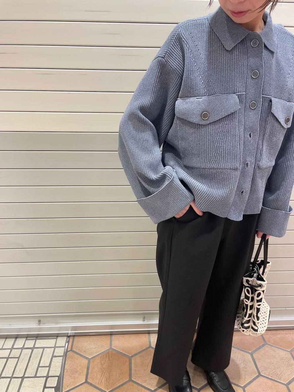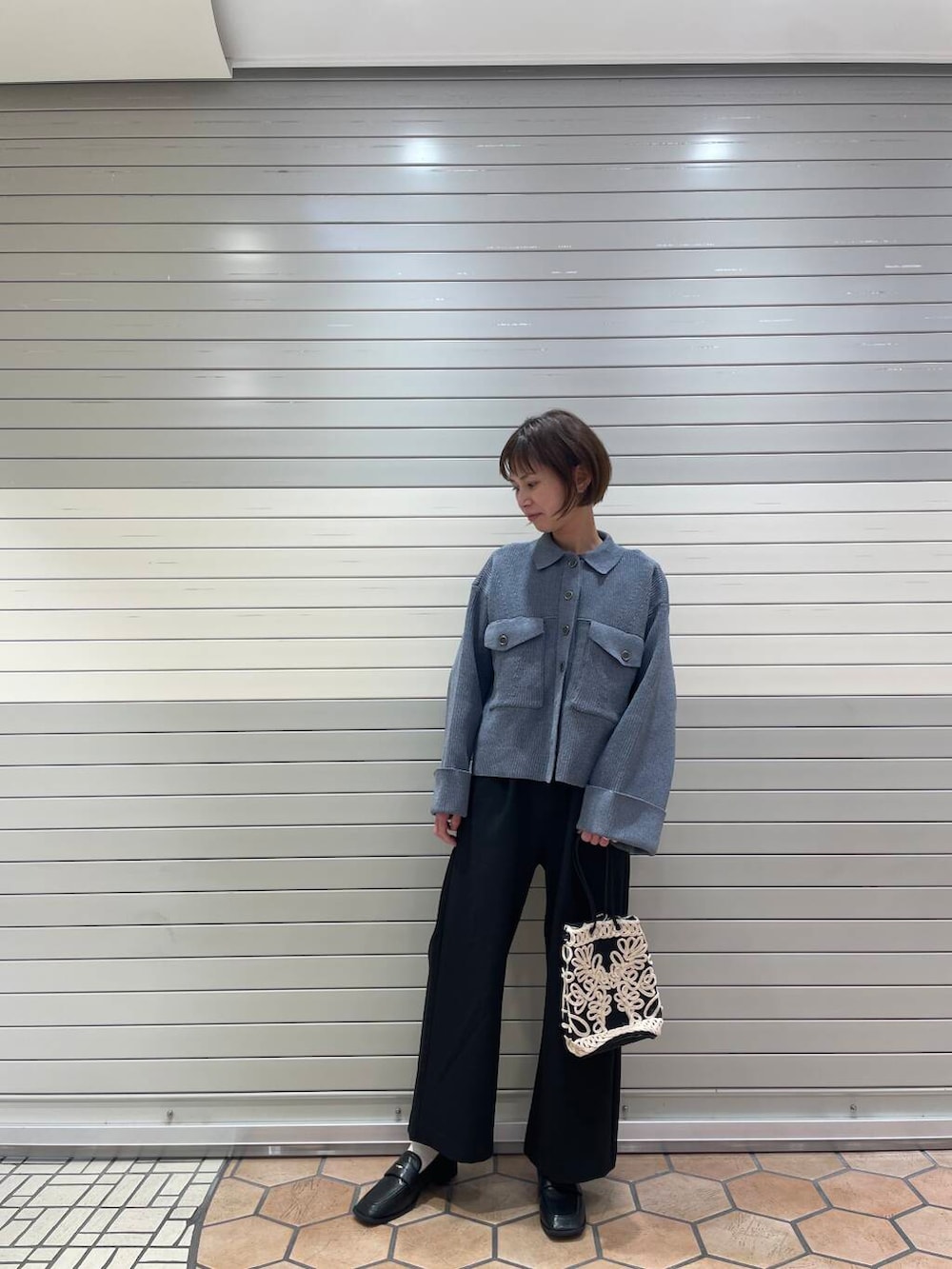 ニットショートジャケットをポイントにパンツとシューズを黒で統一してみました‼︎全体的にシンプルなので、バッグの刺繍をアクセントに持ってきて、春先にもオススメなコーディネートです。