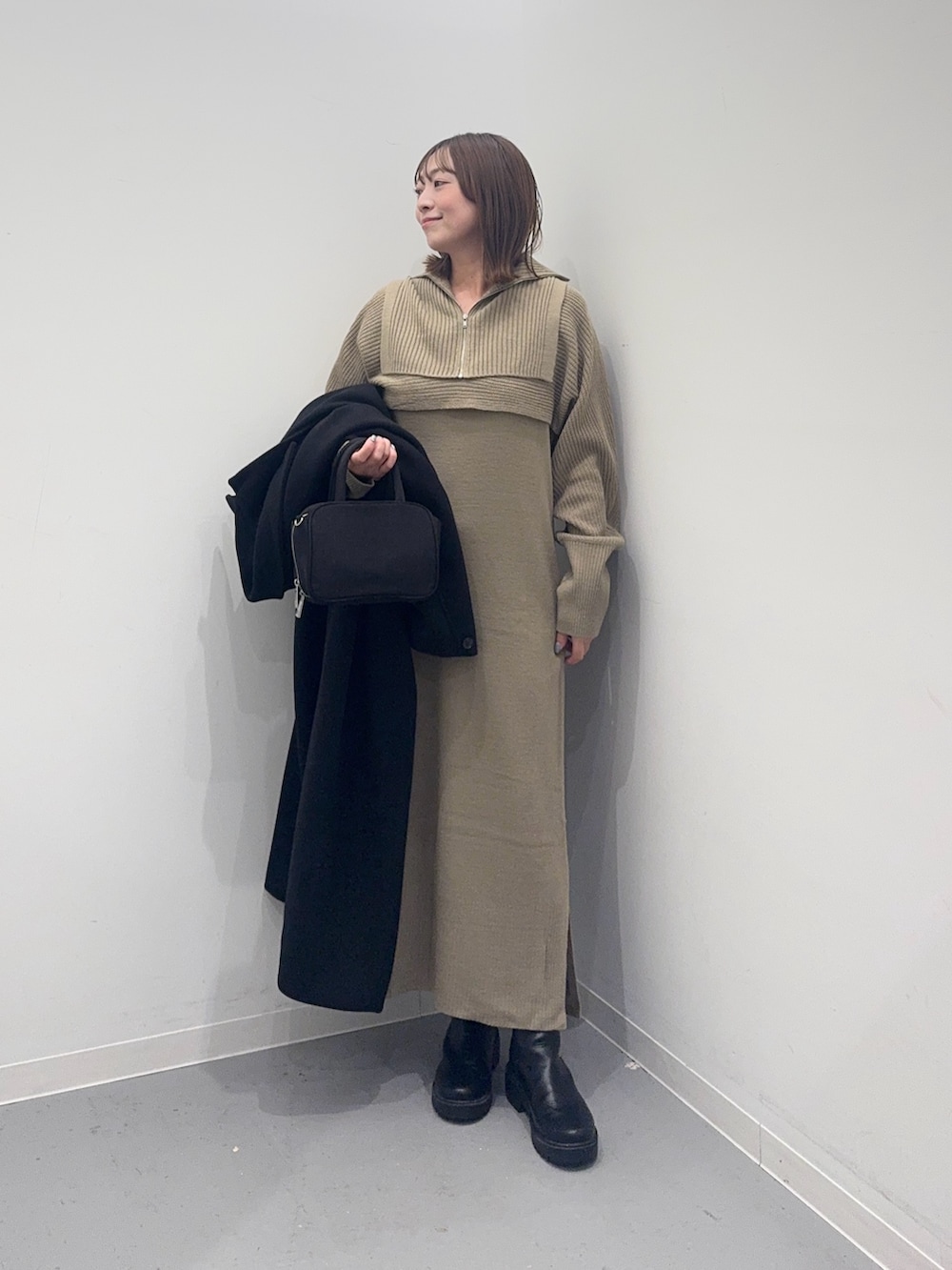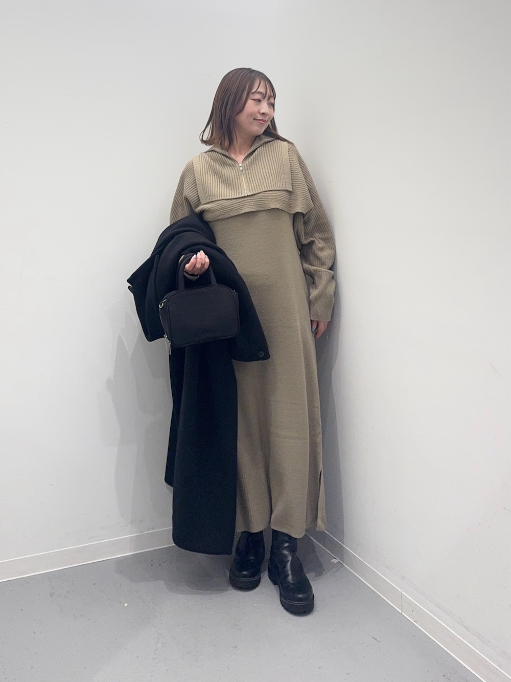 KBFハーフZIPレイヤードニットワンピース- カラー: