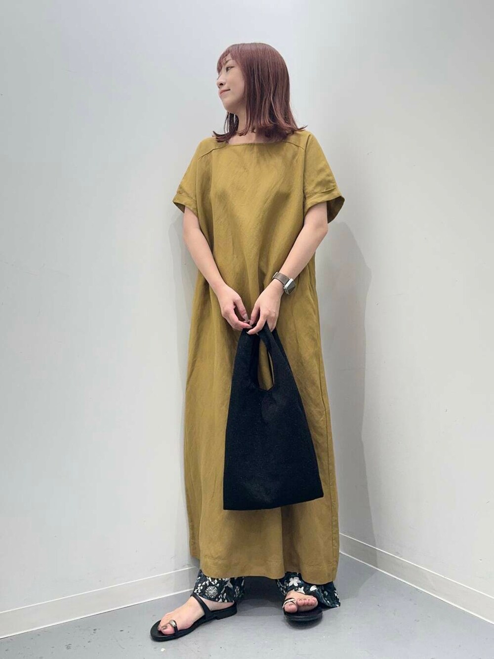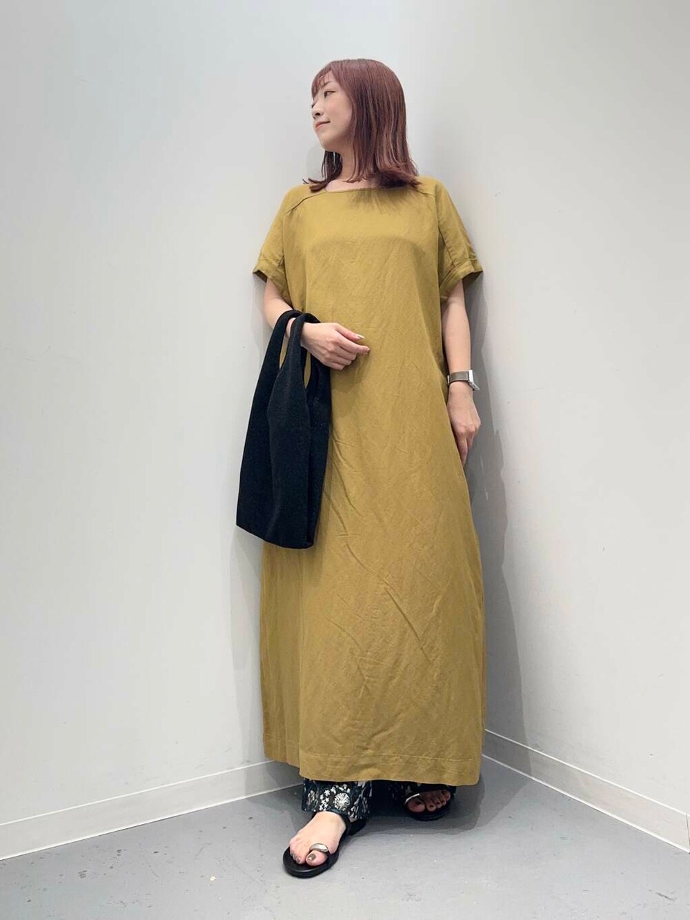 ワンピースはリネンレーヨンアイテムで