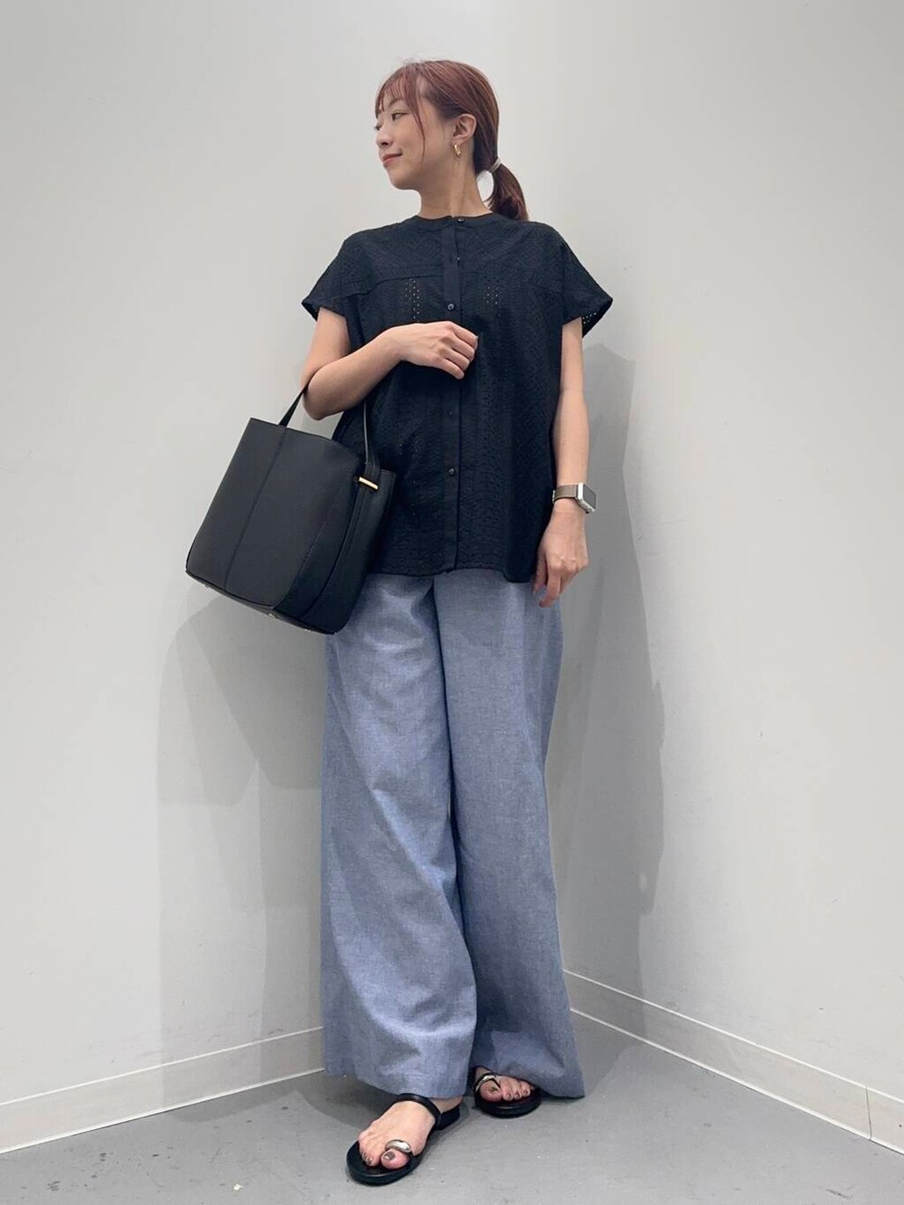 パンツ合わせてカジュアルコーデにしました。