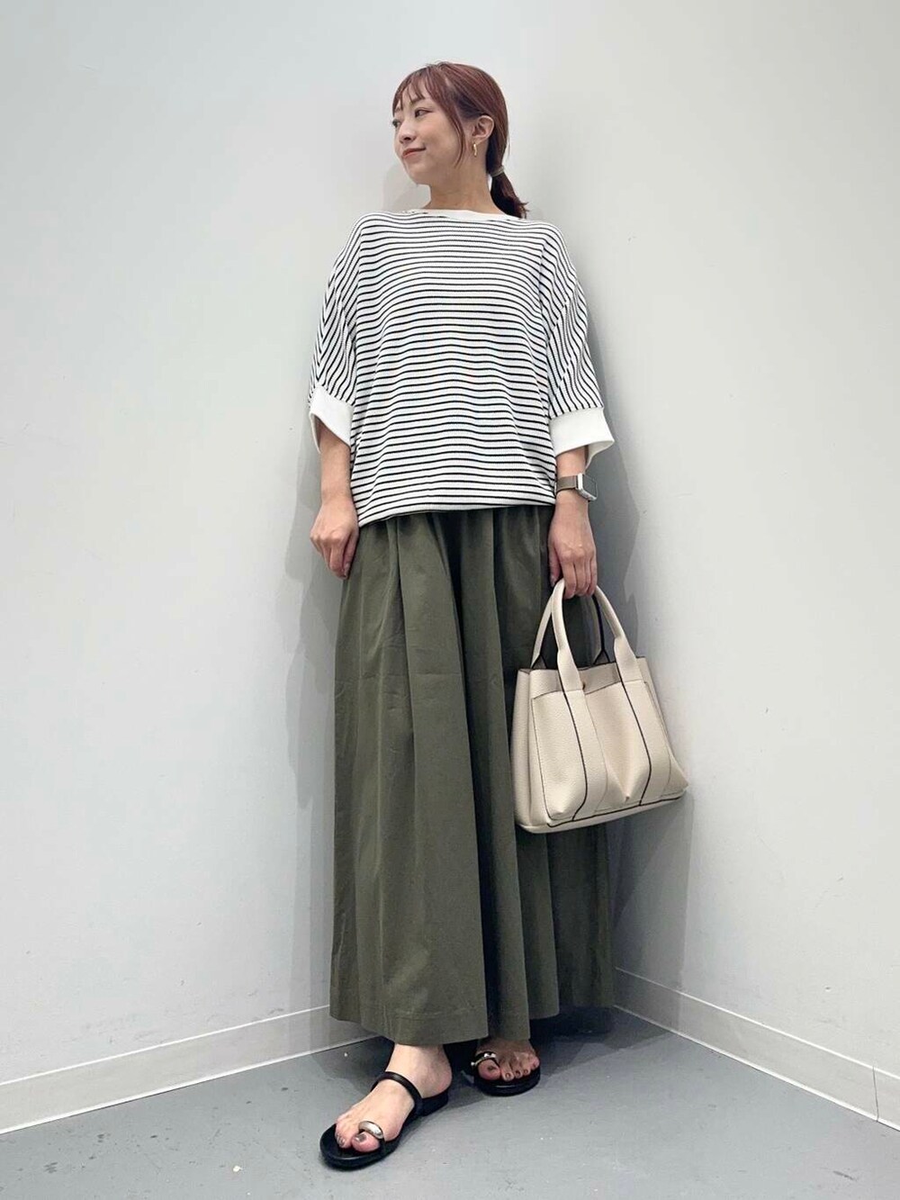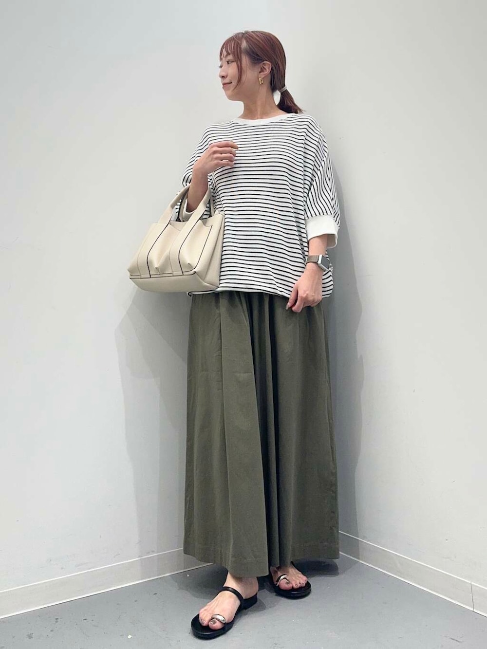 トップスはゆっとりとしたサイズ感で着やすく、