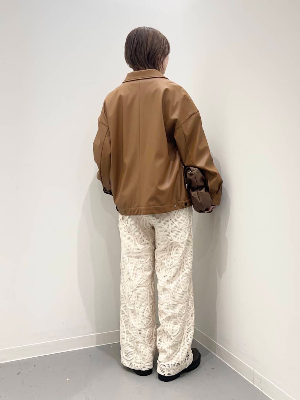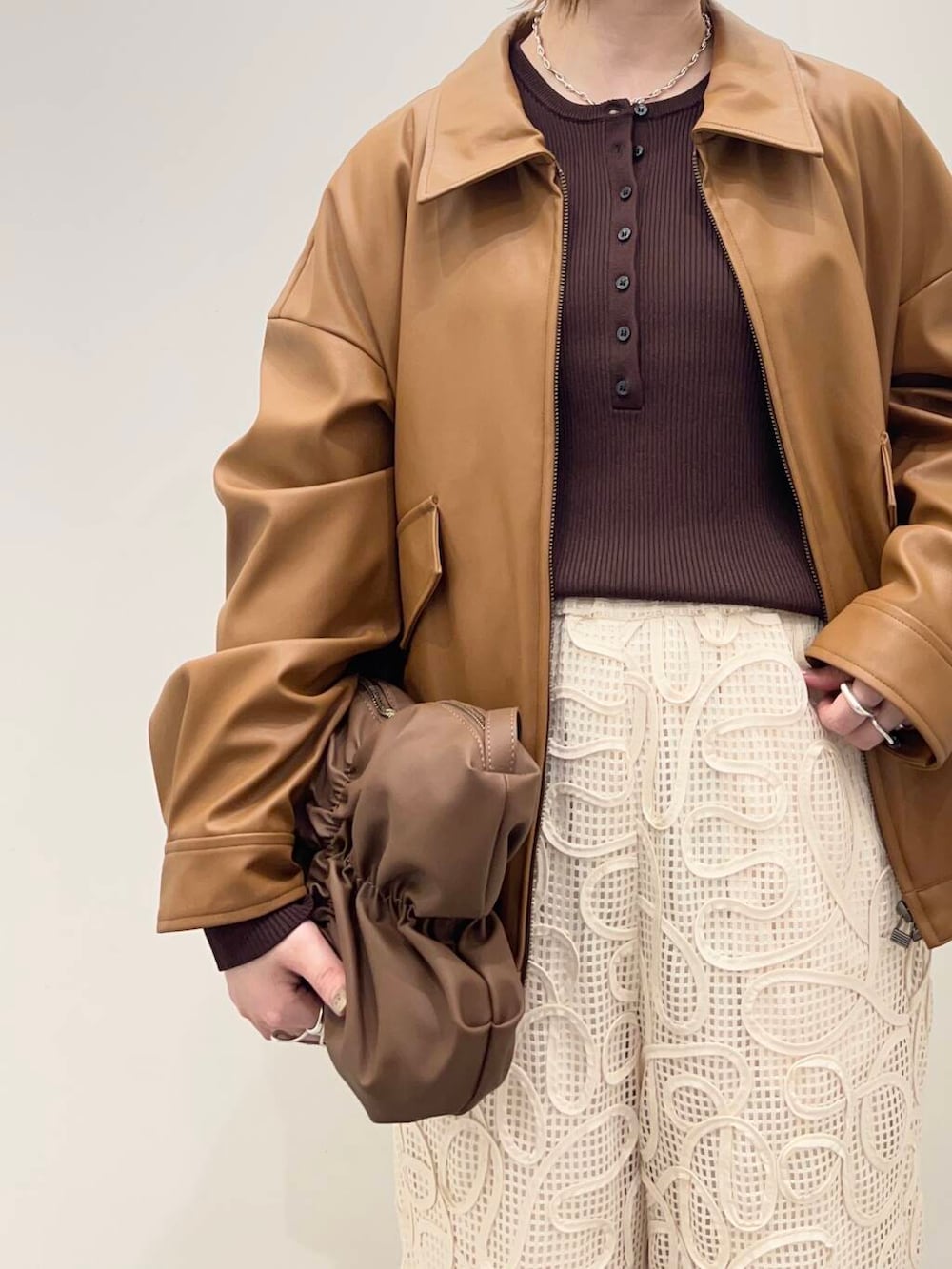 フェイクレザーのブルゾンはとっても軽い着心地。
