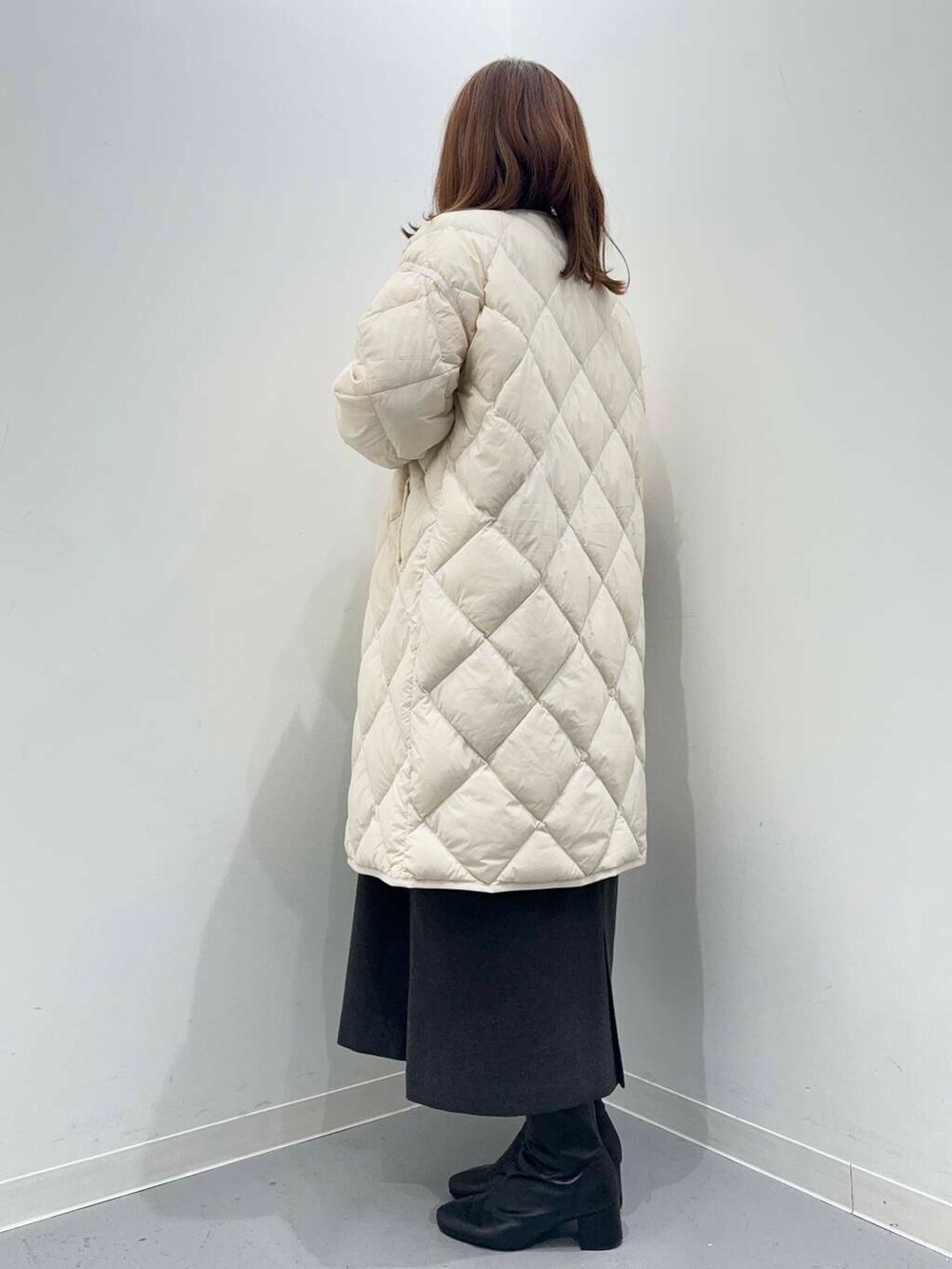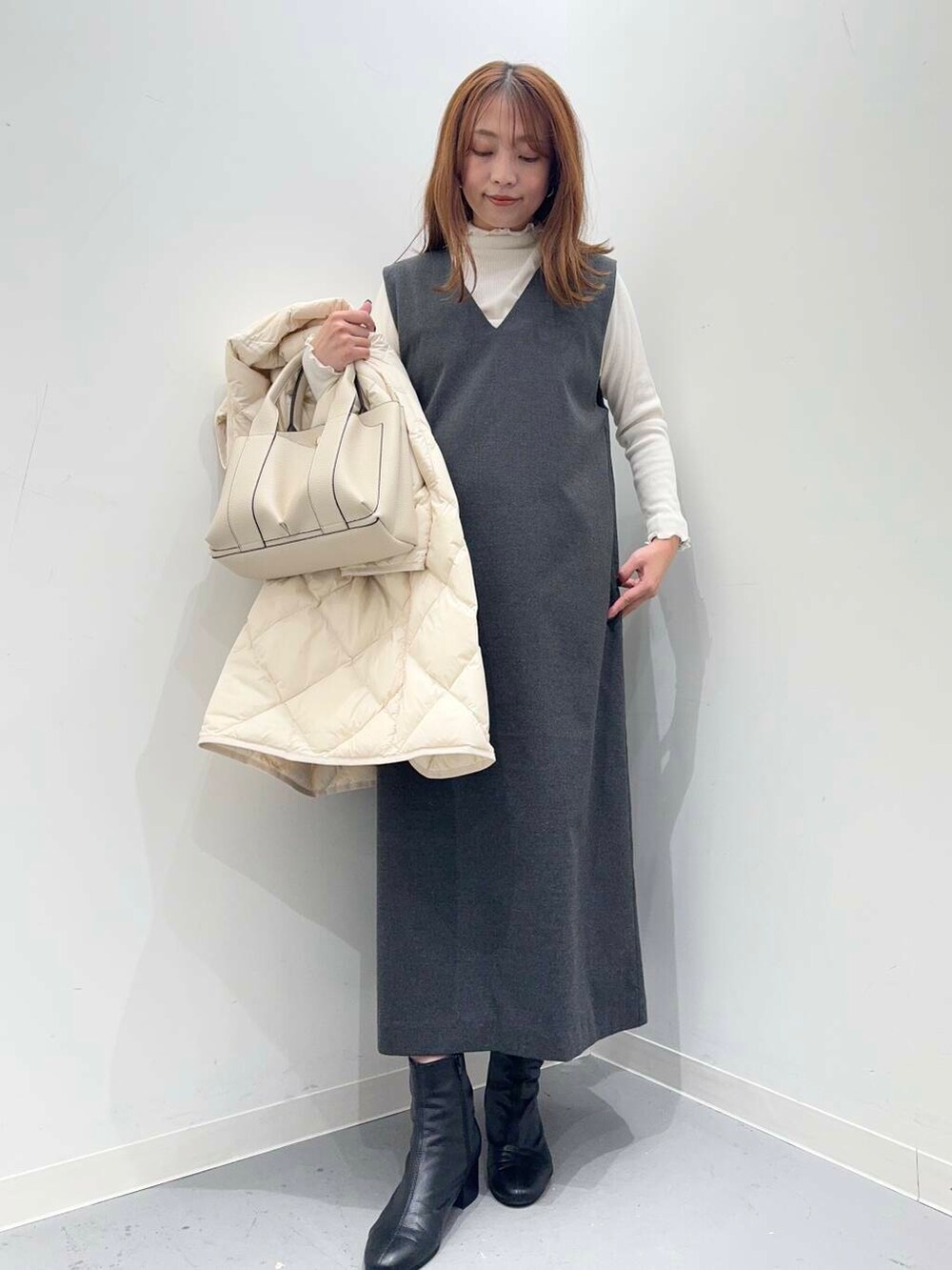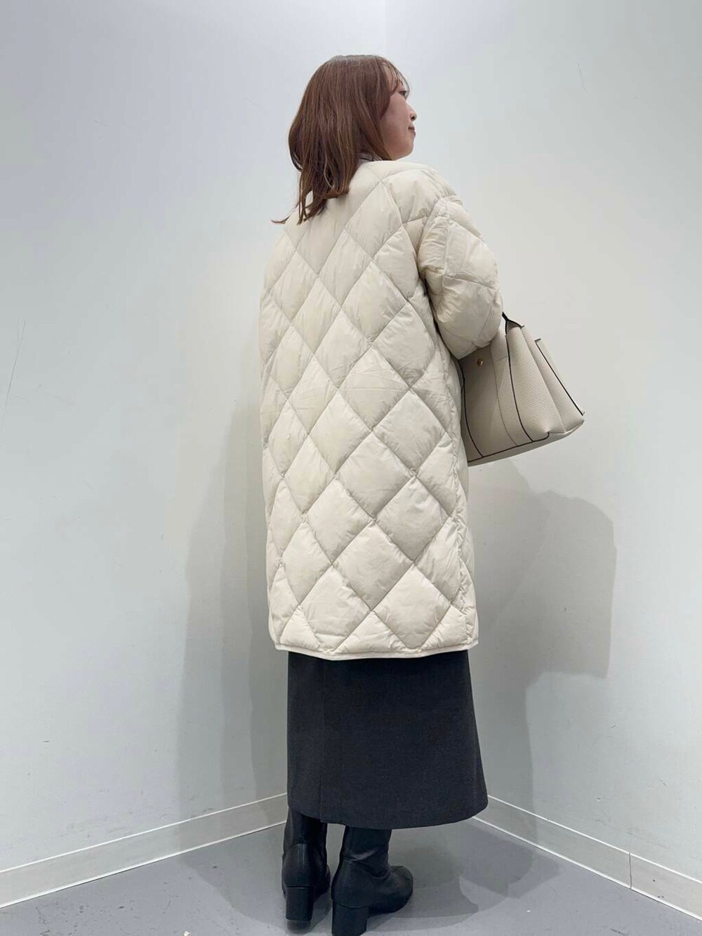 ゆったりとしたサイズ感で中に厚手のニットを
