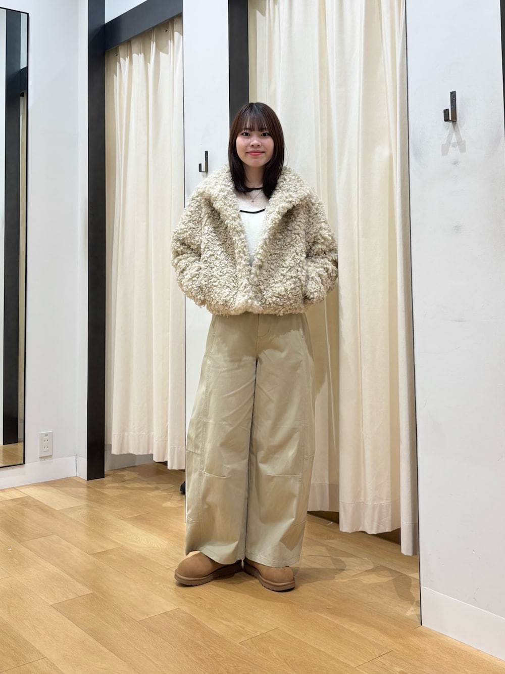 存在感のあるボア素材が可愛いジャケットです!コンパクトなサイズ感で、パンツ・スカート合わせやすいです!