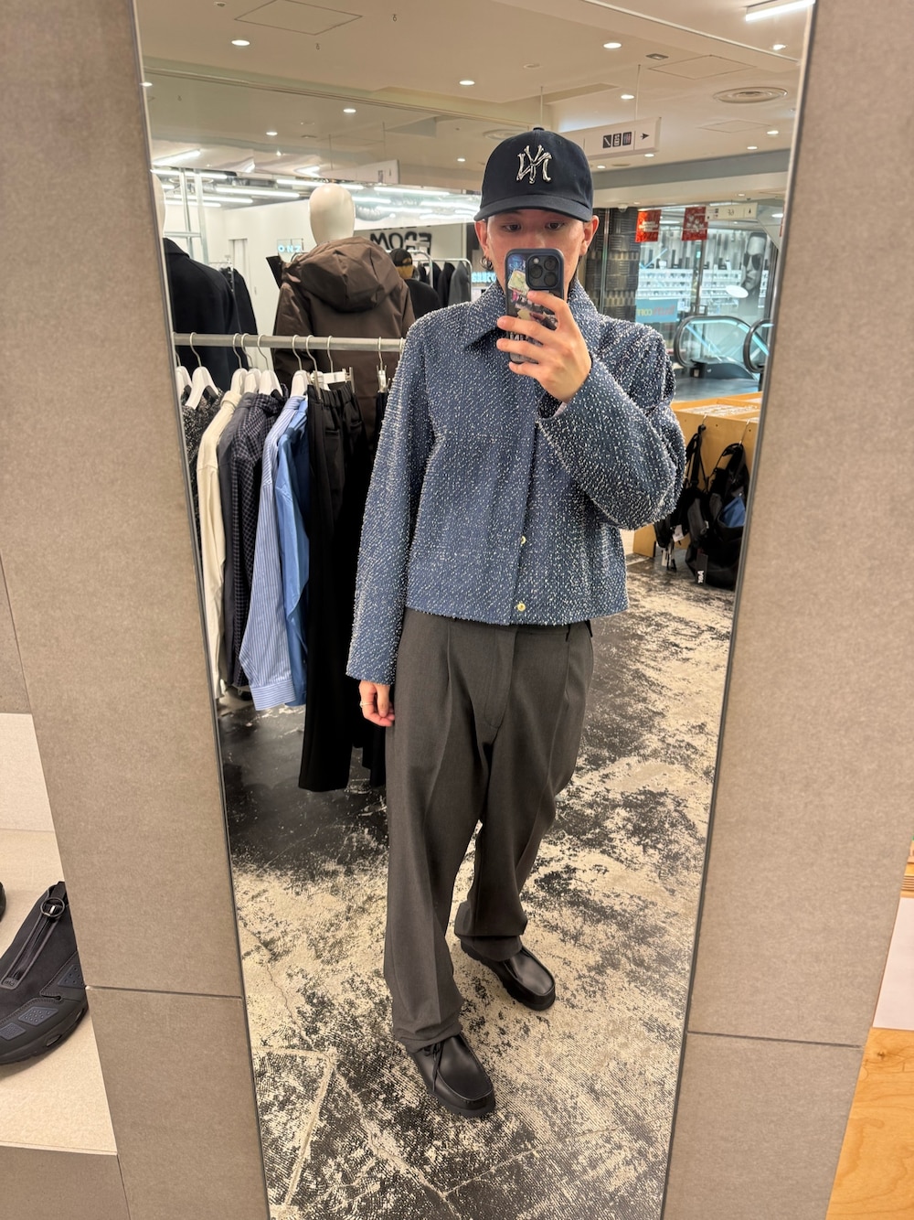 ジャケットは、オーバーサイズですがワイドデニムと合わせて、アイラインを意識して着てみました!