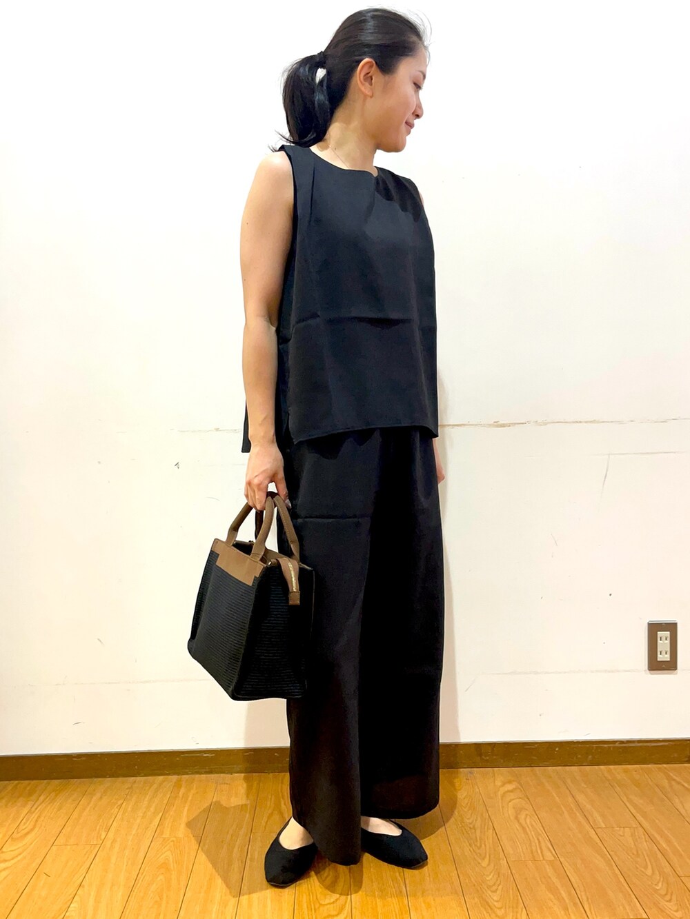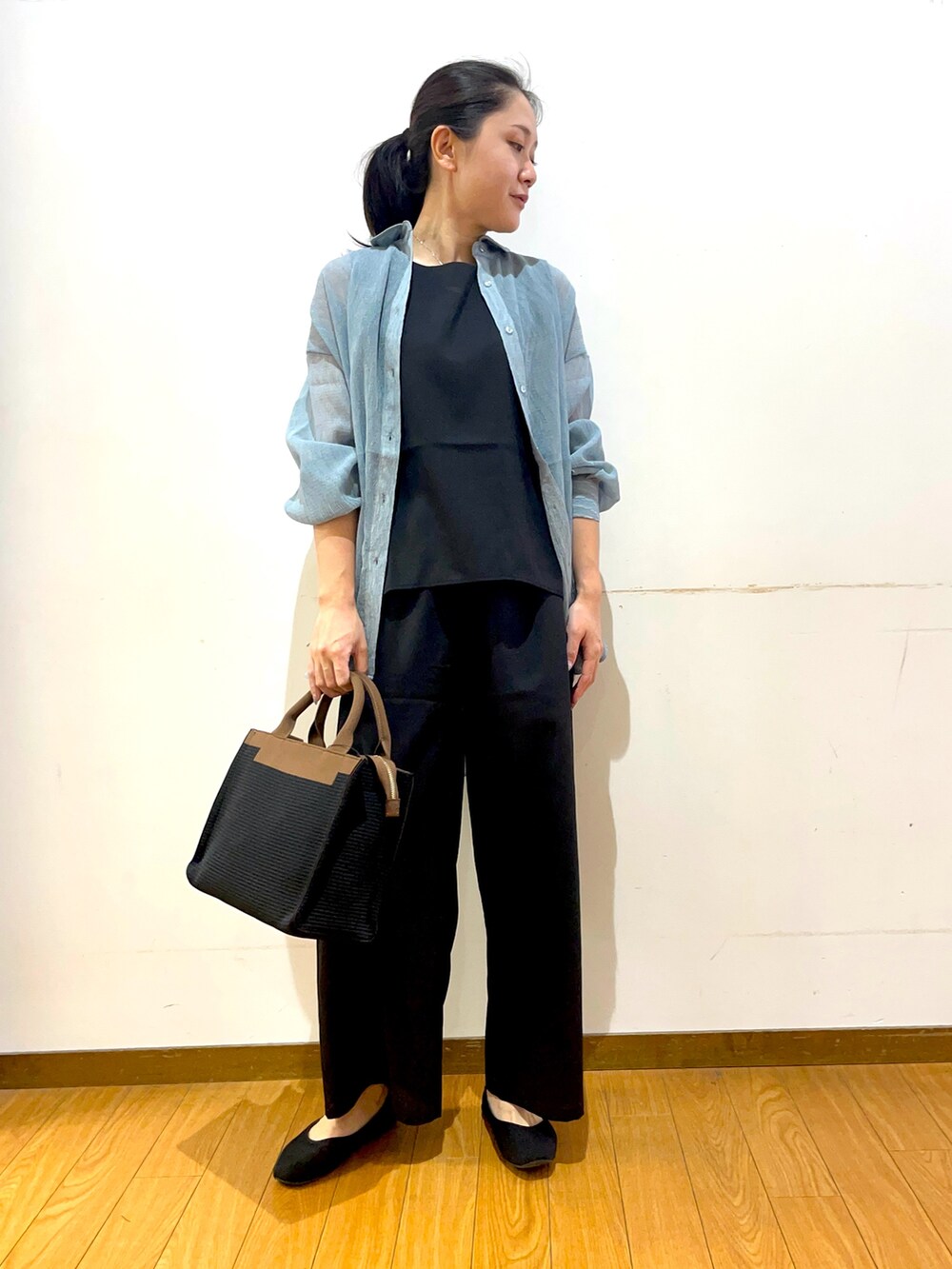 ゆったりとしたシルエットながらも襟元を抜け感を出してきて頂けると女子感UPです♪