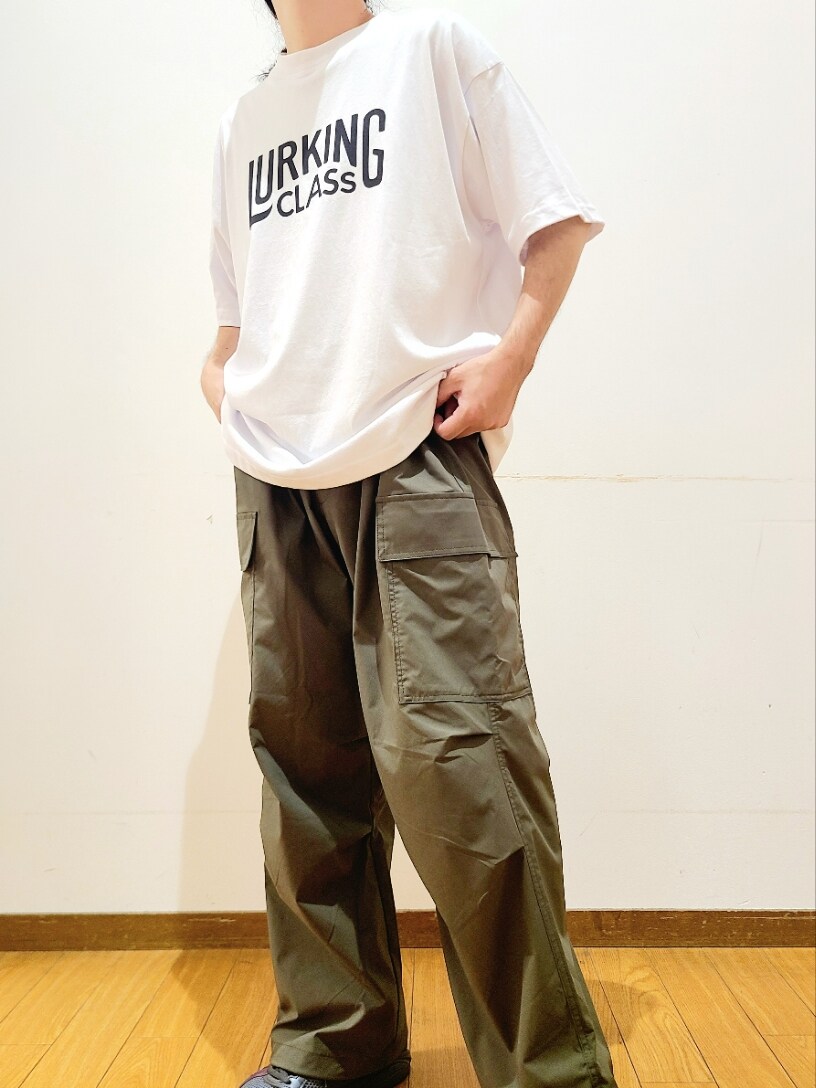 トレンドのカーゴパンツをポリ素材でさらりと。
