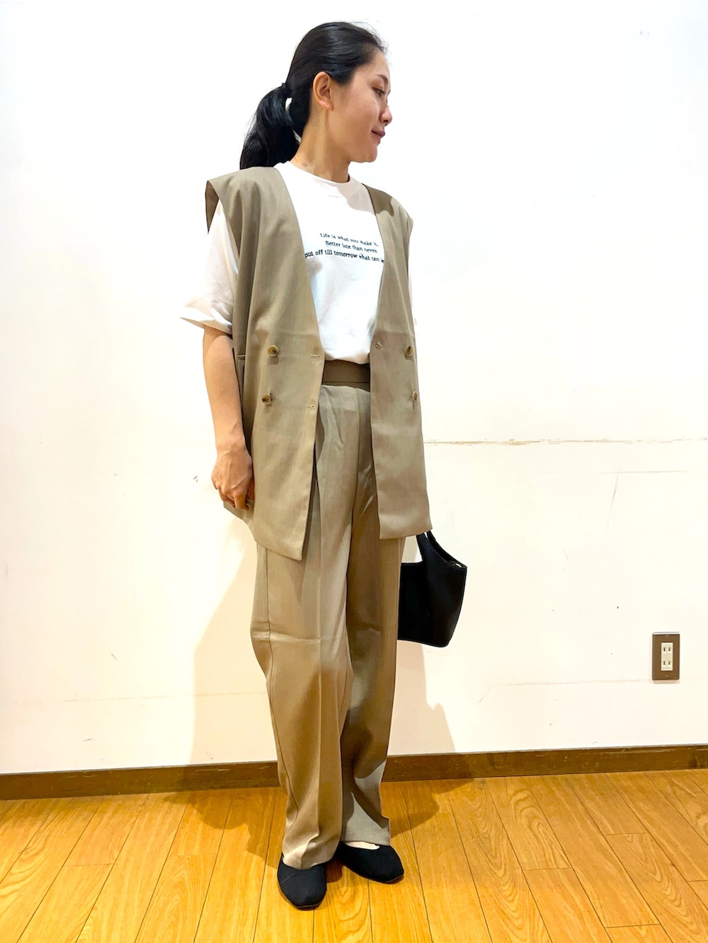 ゆるっとジレとワイドパンツでカジュアルにも着られるセットアップです♪