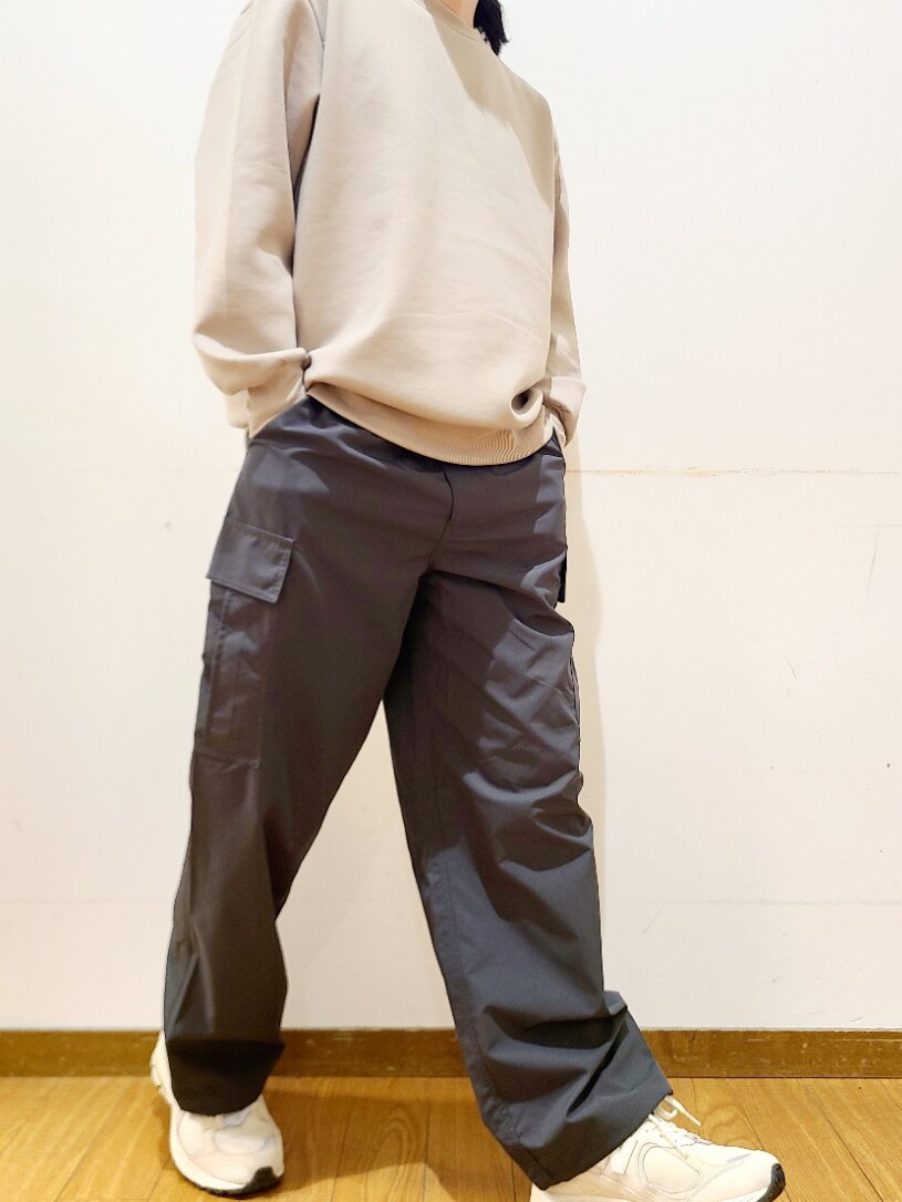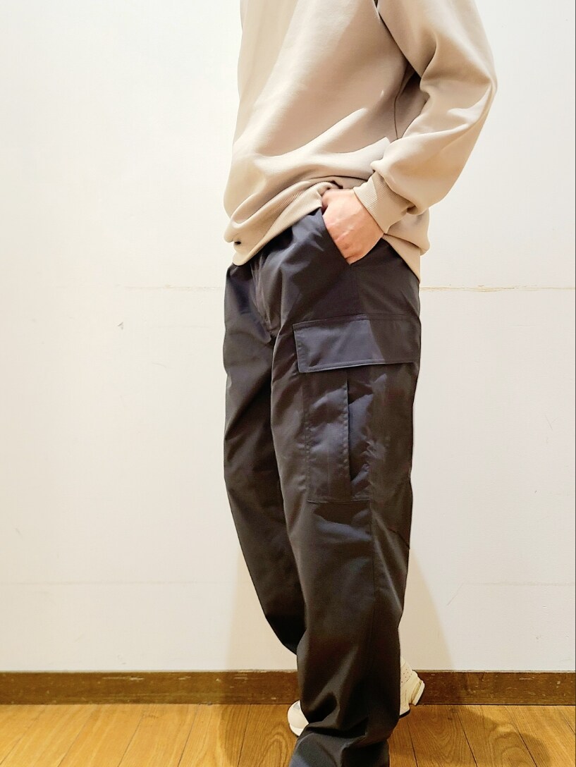 撥水、ストレッチの嬉しい機能を備えたパラシュートパンツ。