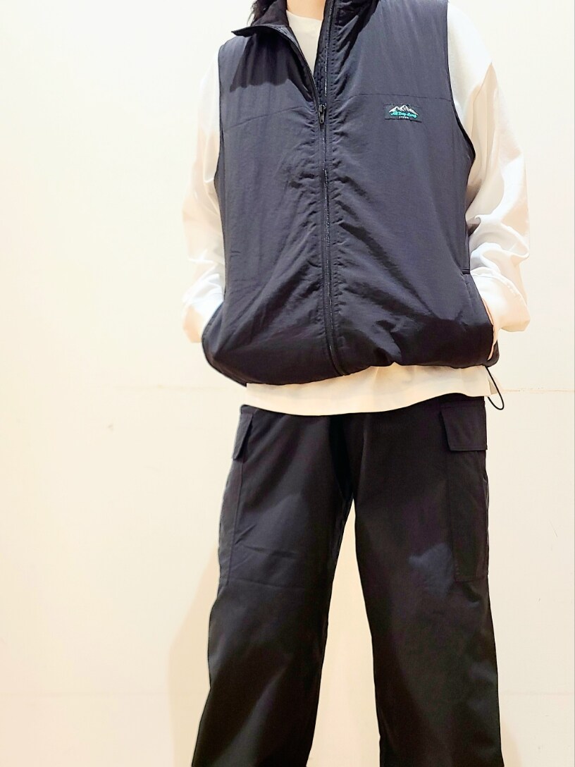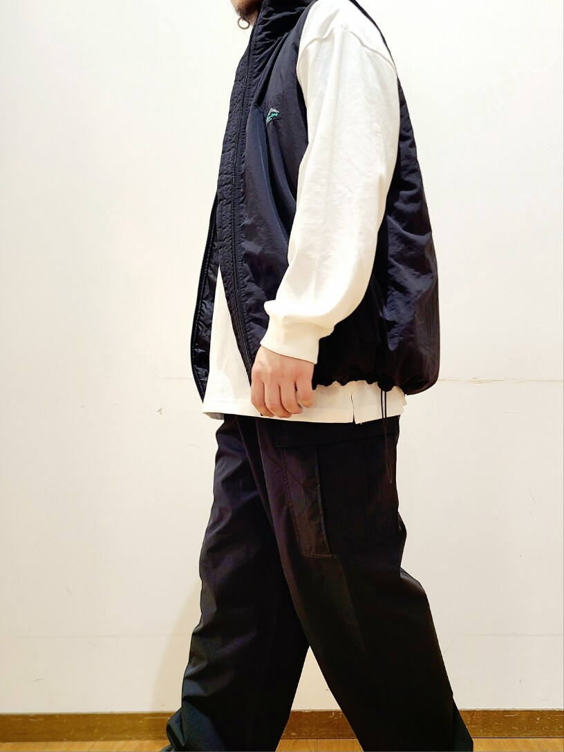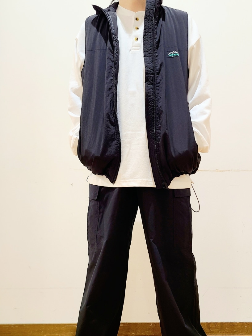 これからの時期にピッタリな薄手のベストは、パーカーやスウェットと合わせてお召しいただくと使い勝手バツグンです。
