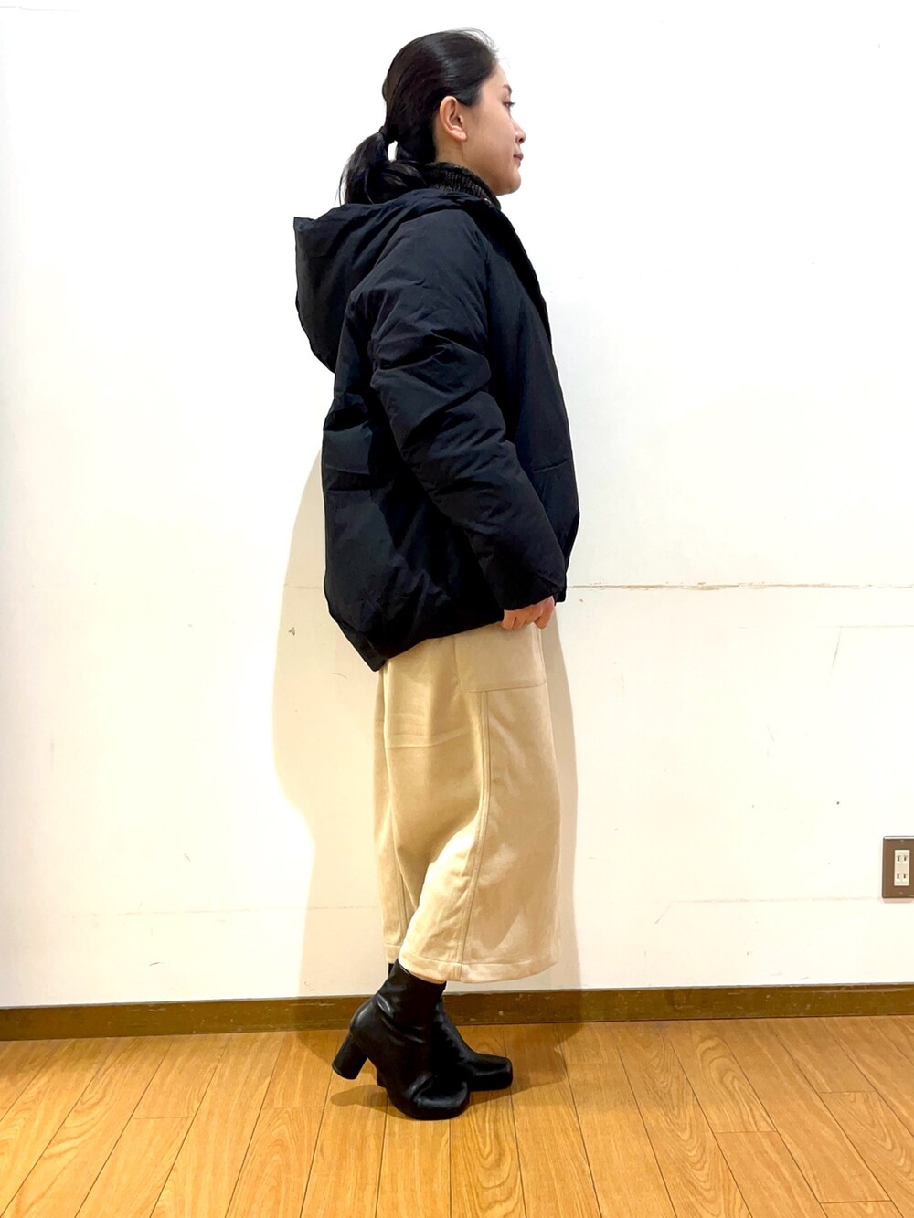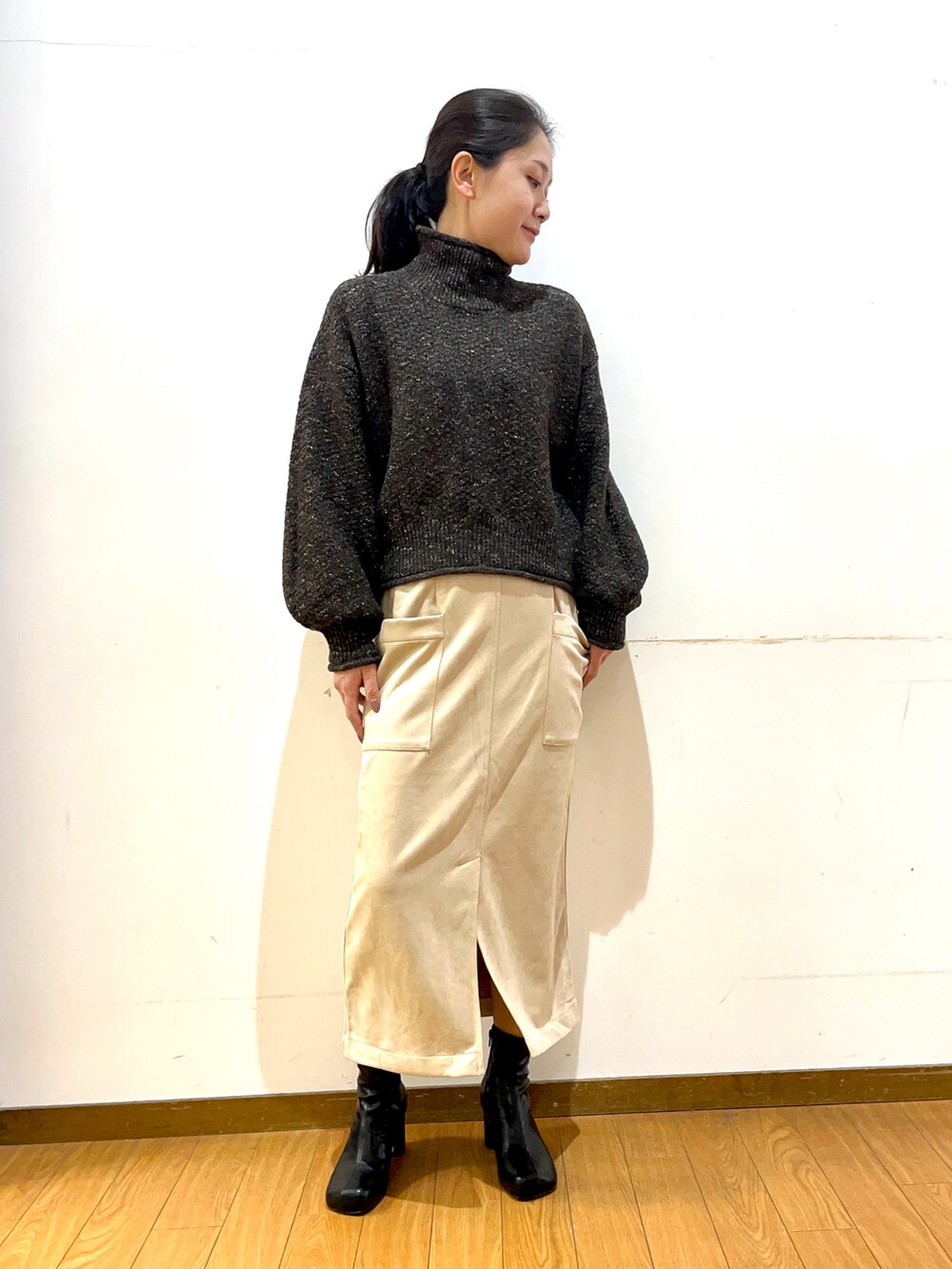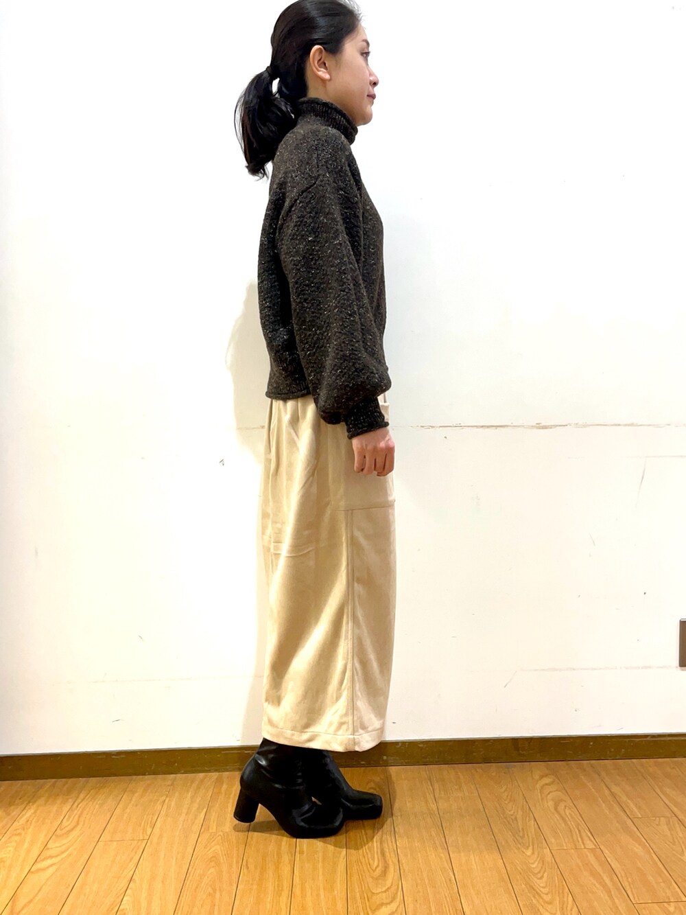 全体的にゆったりめなので、厚手のニットやパーカーなどと合わせてもゴワつかないです◎