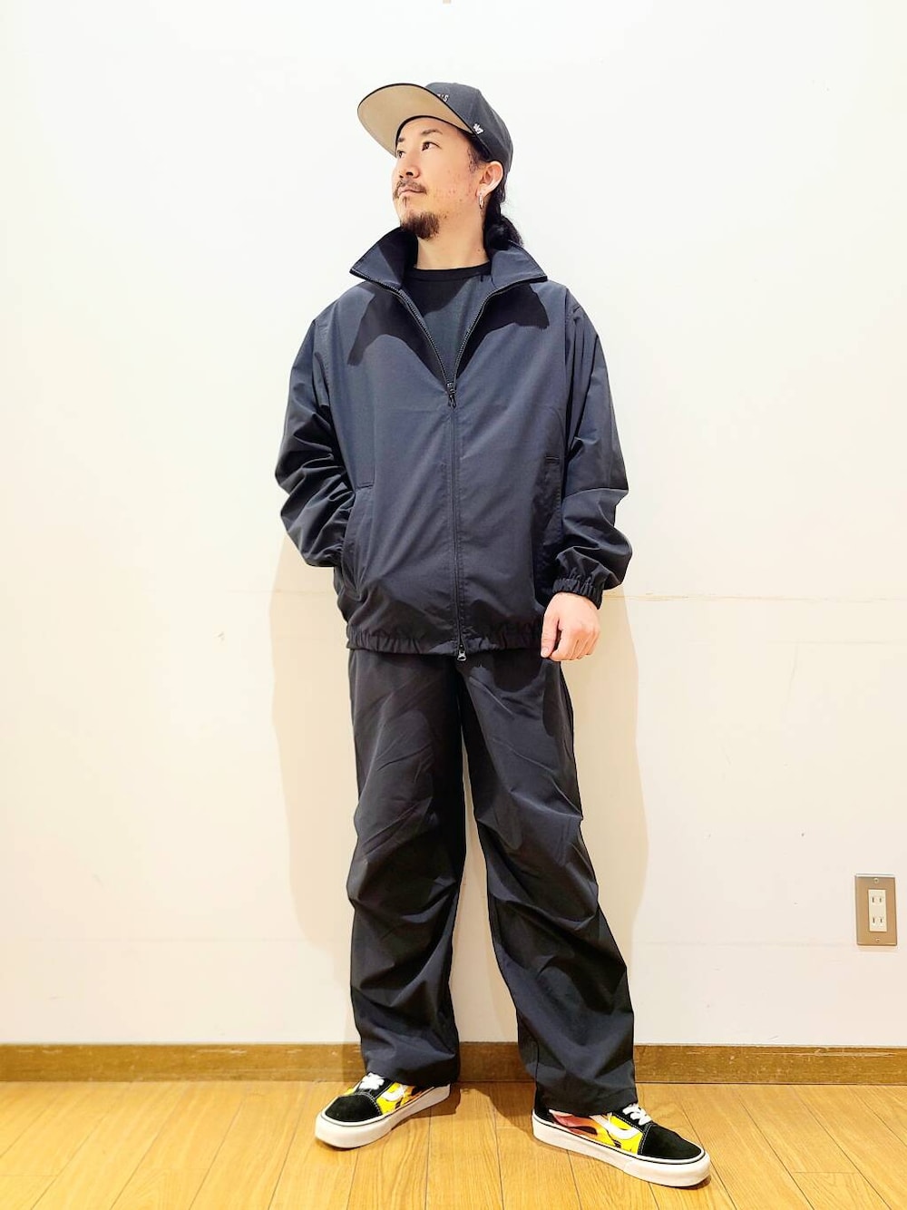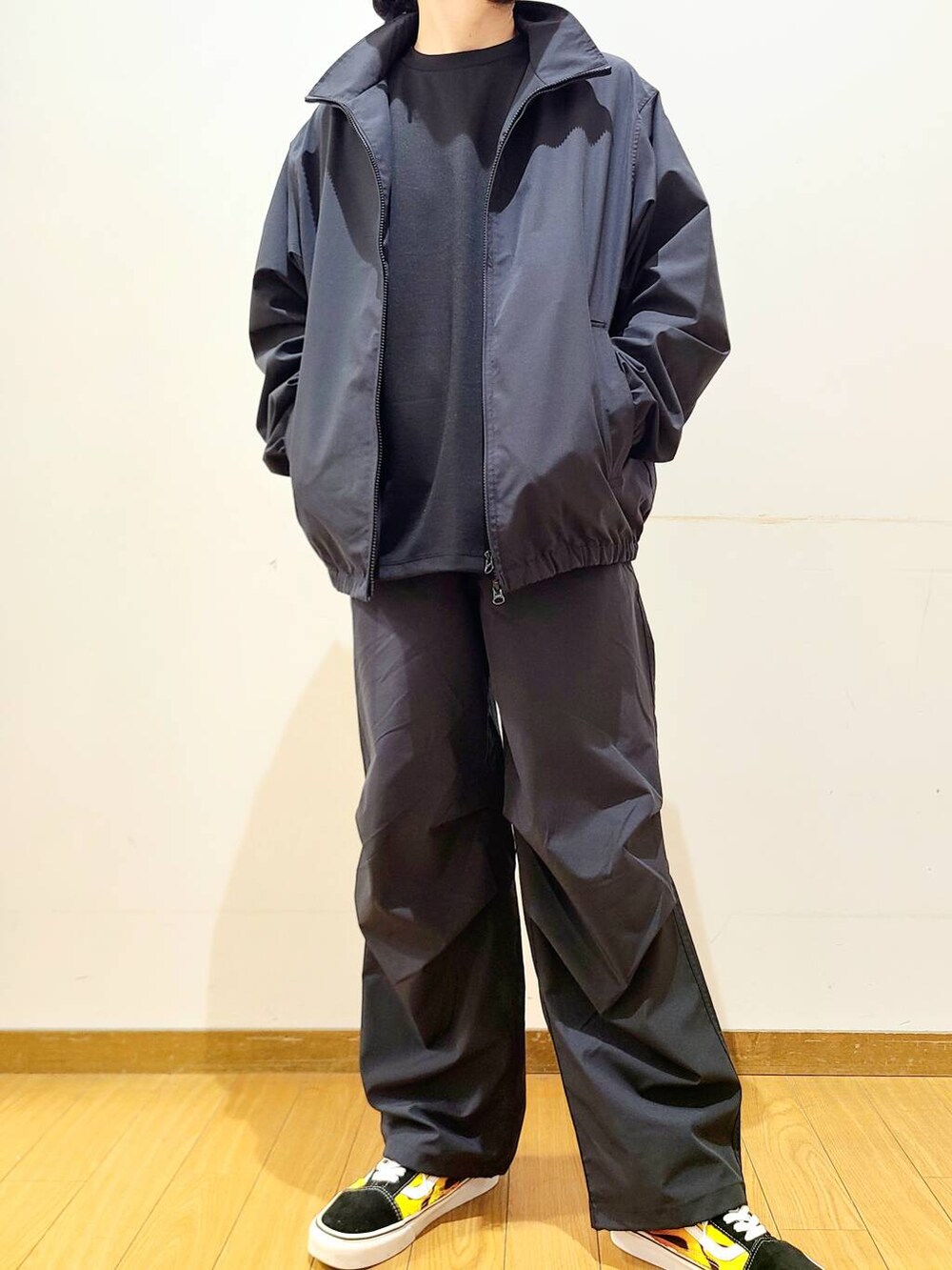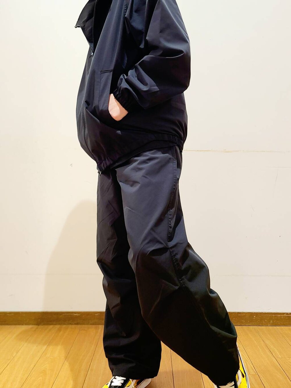 撥水、ストレッチの嬉しい機能を備えたパラシュートパンツ。
