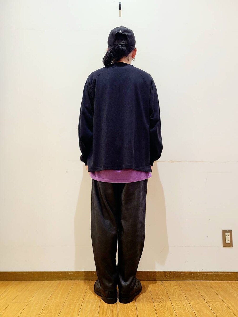 ラグランスリーブなので肩幅の広い方もお召しいただける万能Tシャツ。