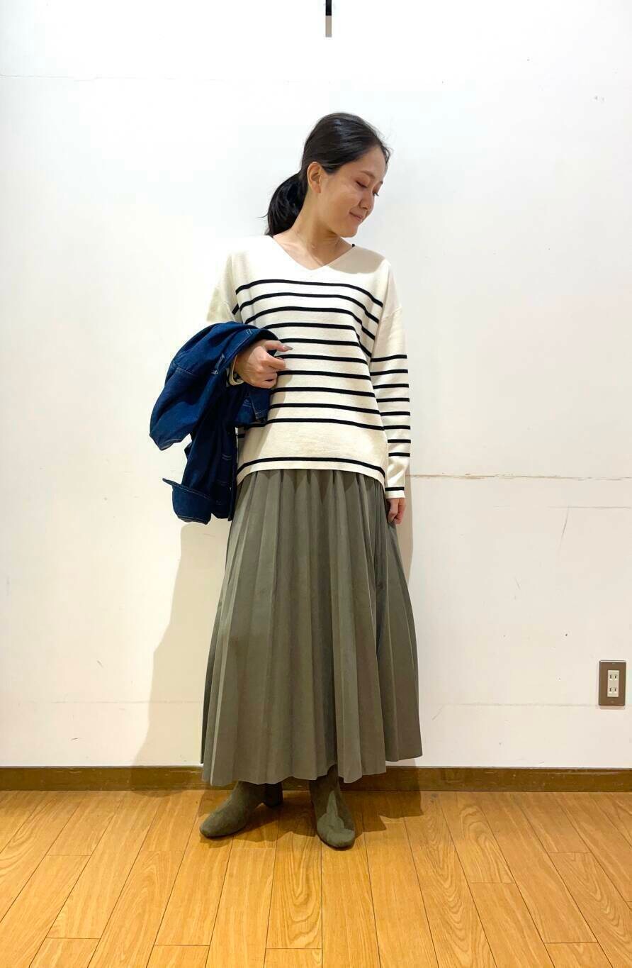 ゆったりとしたデザインになっていますが丈間は短すぎず長すぎないのでスカートにもパンツにも合わせられます☆