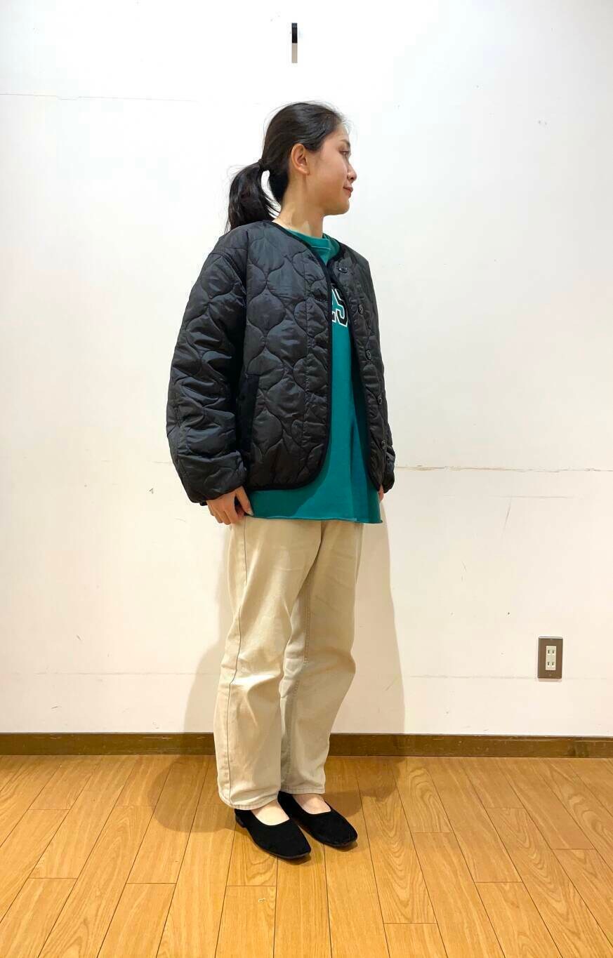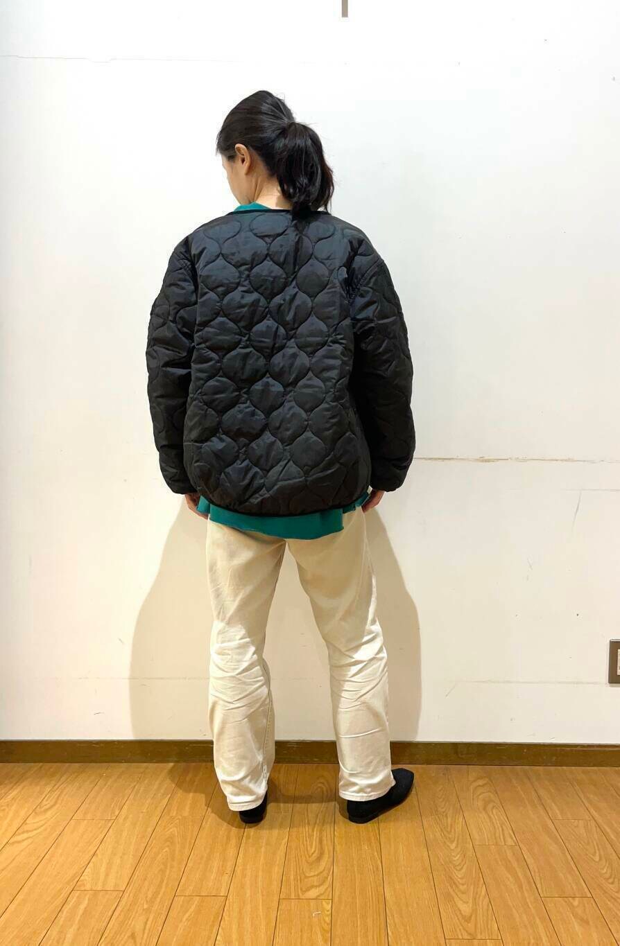 ゆったりしたサイズ感なので、厚手のニットやスウェットの上からでも楽に羽織れます♪丈感は後ろがやや長めになっているのでヒップラインが隠れる長さがあります^_^