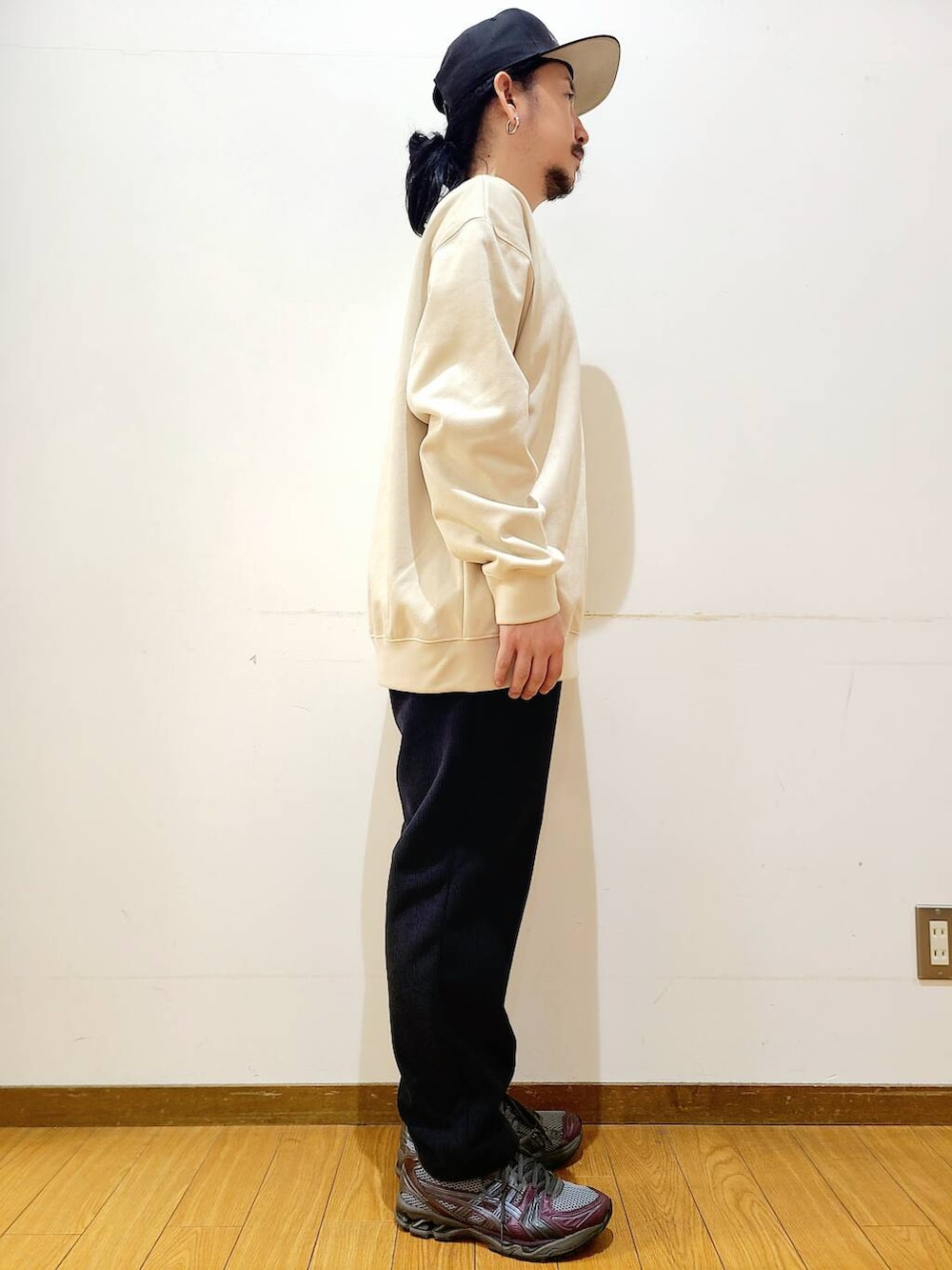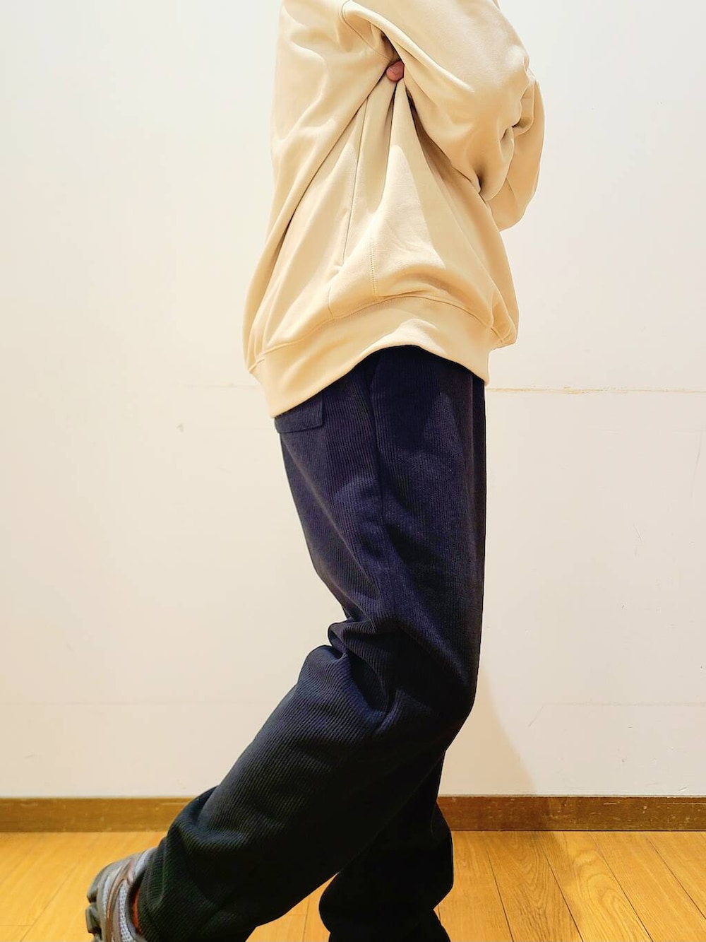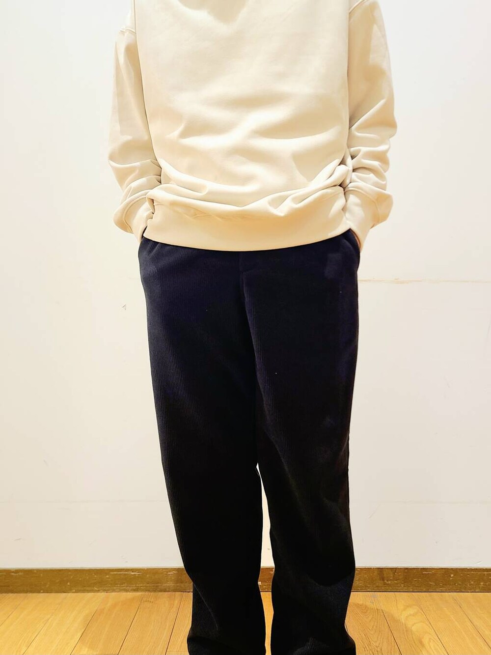 すっきり細めのシルエットでセットアップでの着用がお勧め。