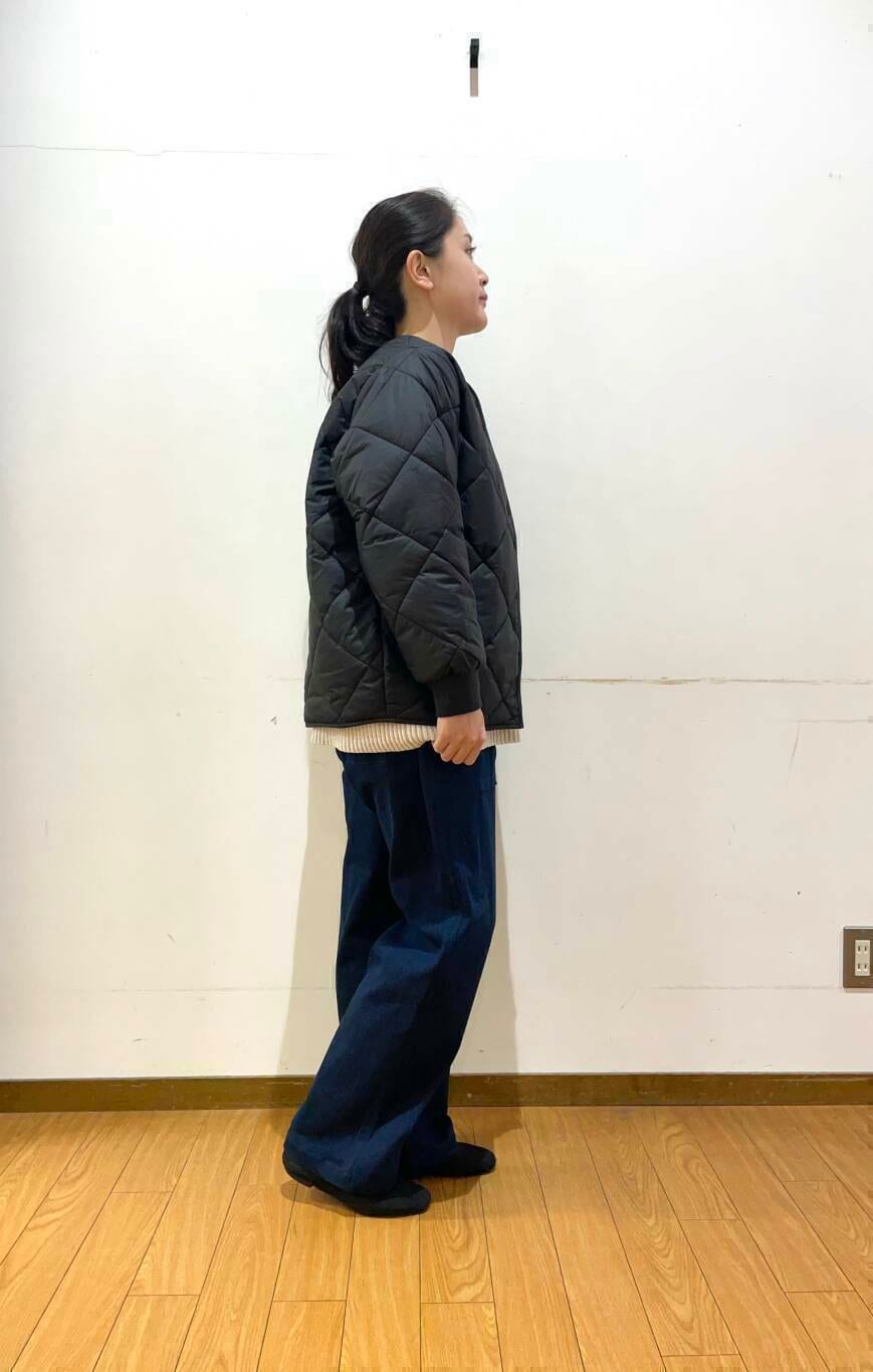 全体的にゆったりめなので、厚手のニットやパーカーなどと合わせてもゴワつかないです◎