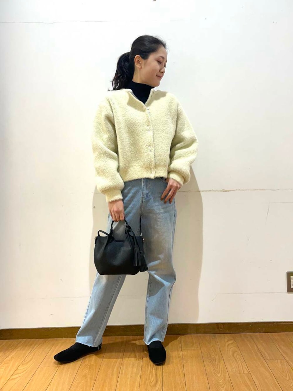 モチモチハイネックリブニット