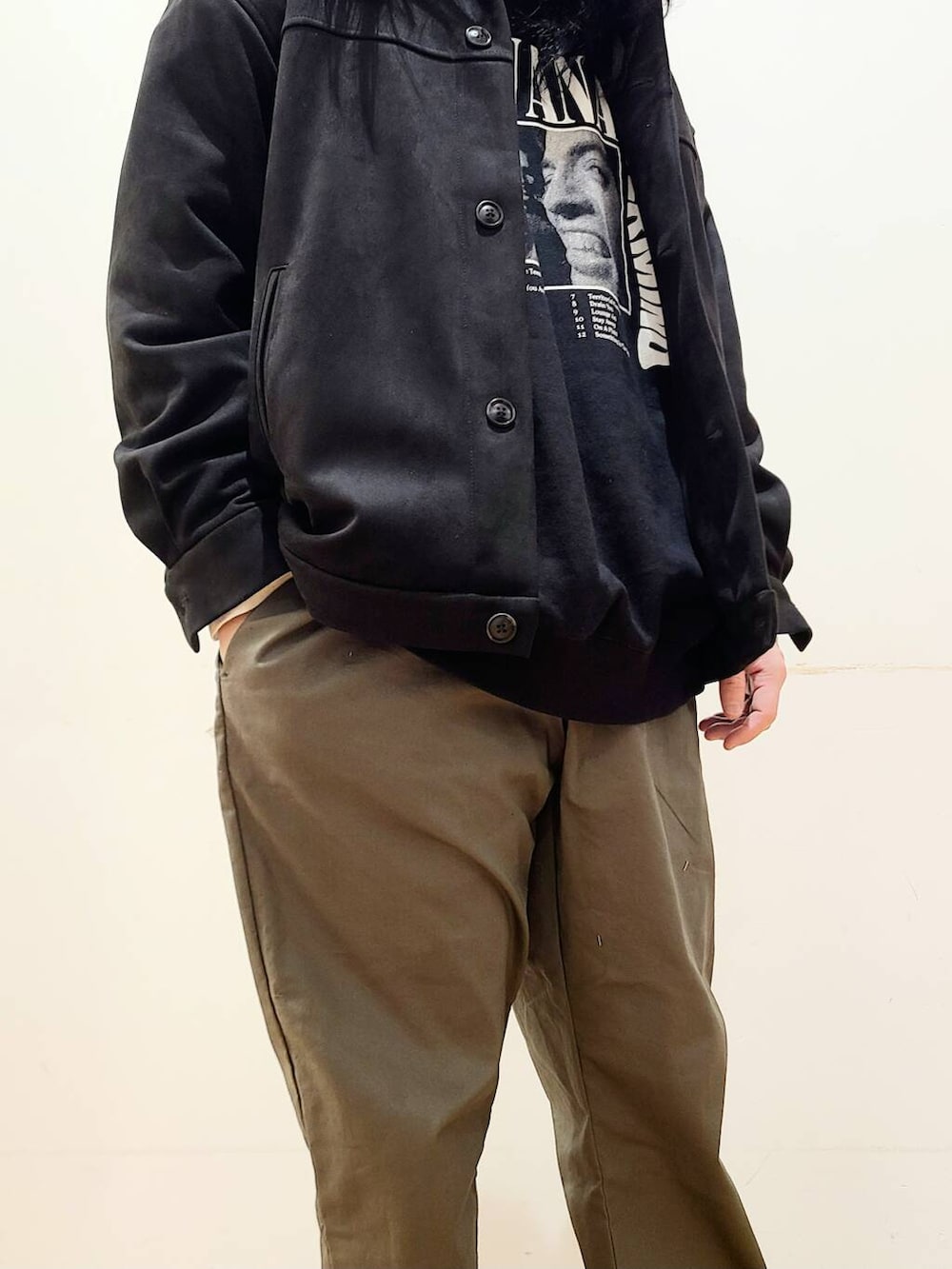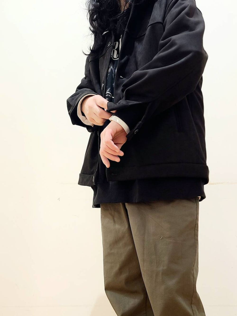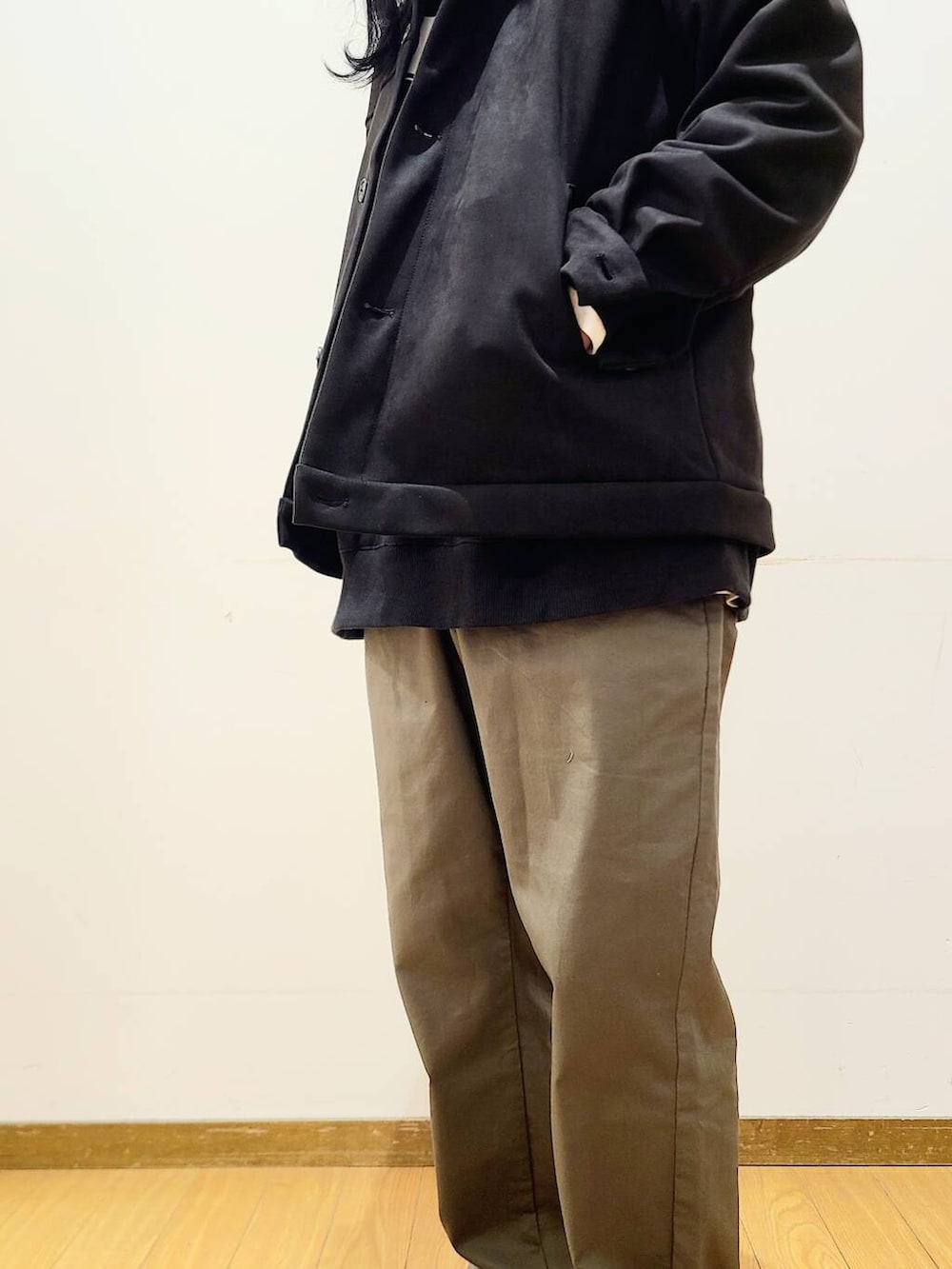 ゆったりとしたサイズ感なので、ある程度のオーバーサイズインナーでも違和感なくお召しいただけます。