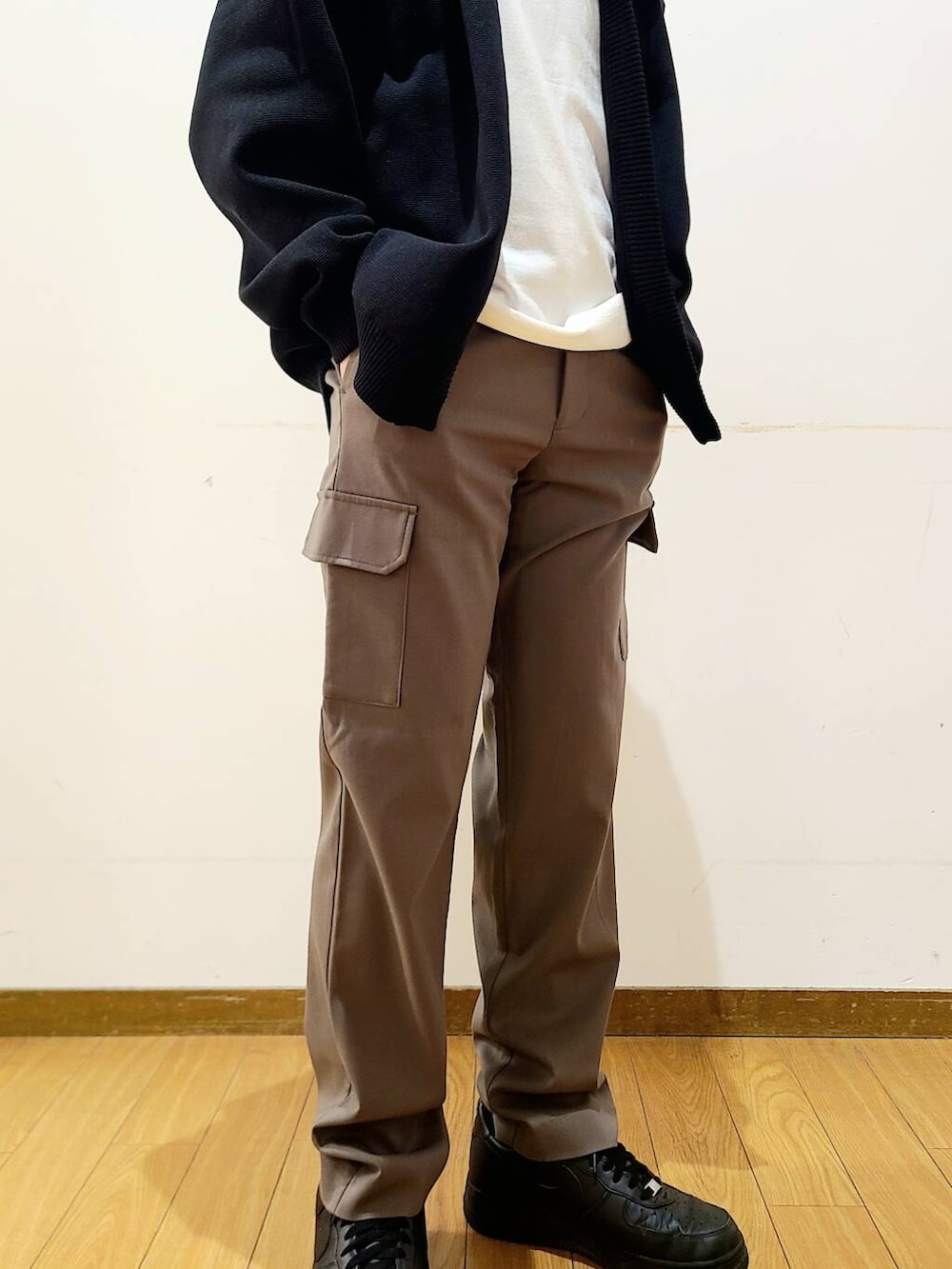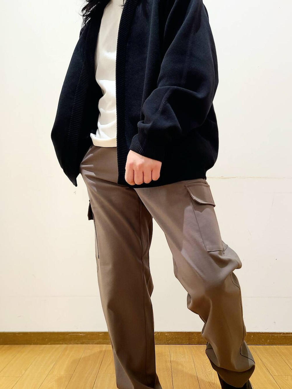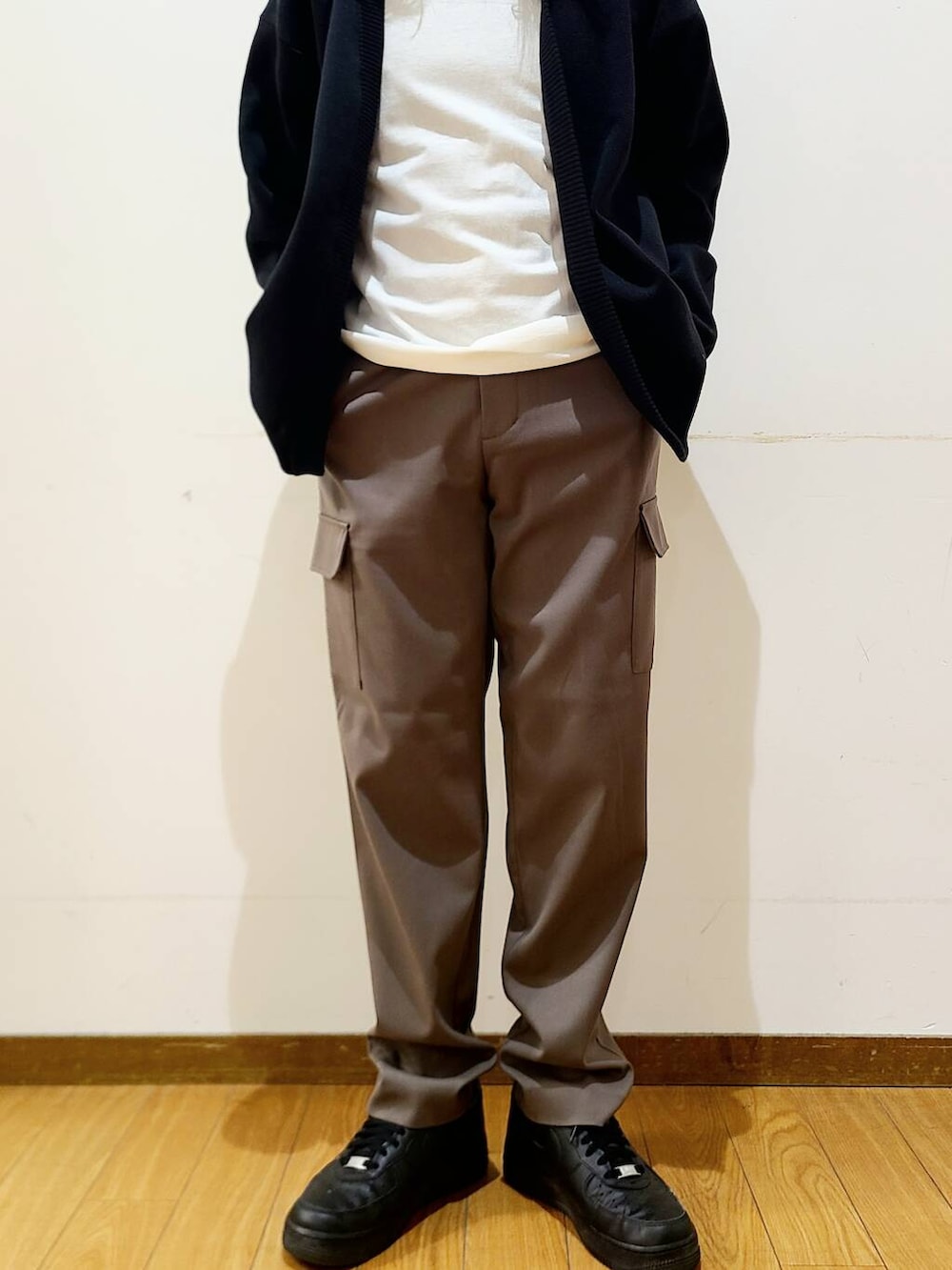 ミリタリー感弱めのカーゴパンツなので、レザーシューズなどドレッシーな着回しも可能な嬉しいアイテムです。