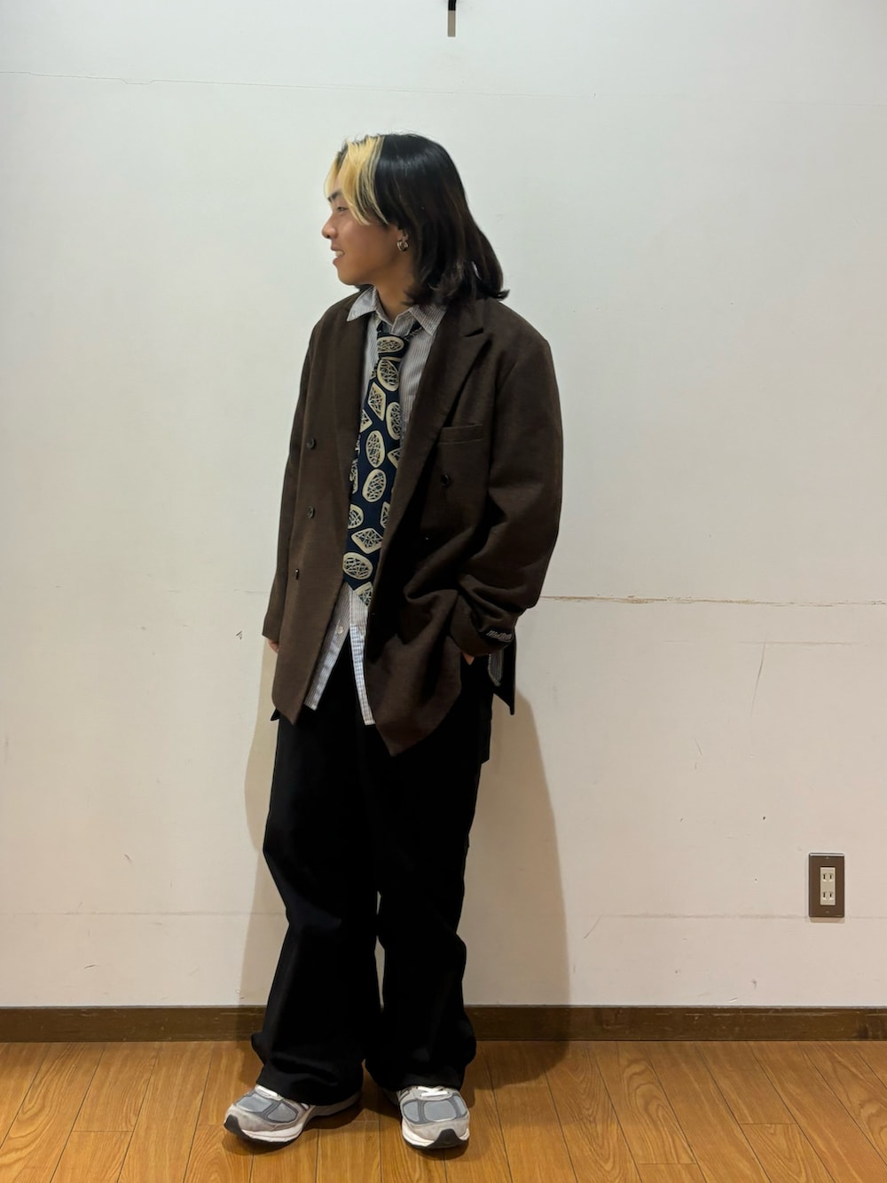 トップスのジャケットはウールの生地感が上品で、ゆとりのあるサイズ感なのでカジュアルなコーデでも使いやすいです!