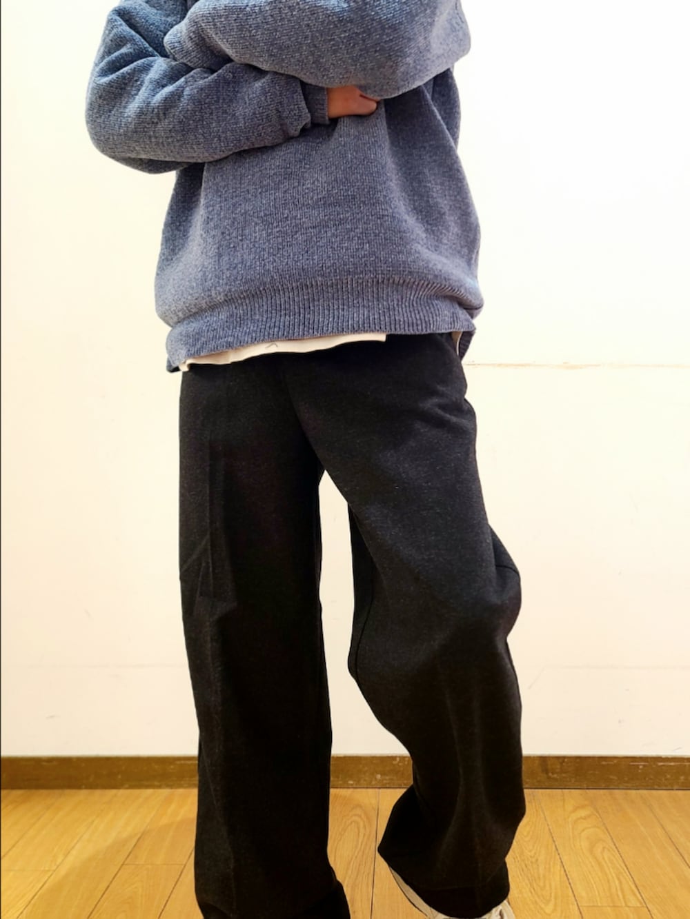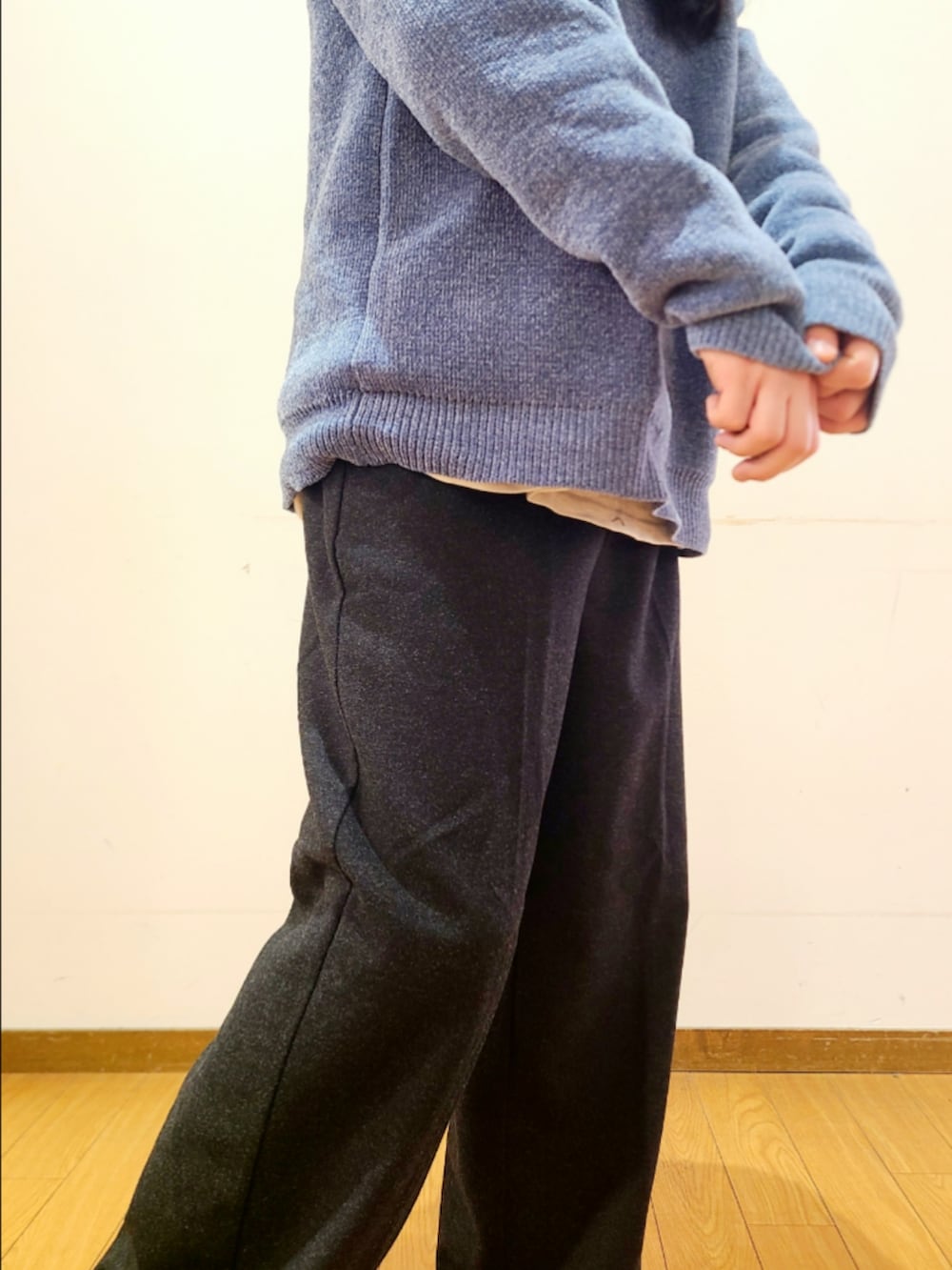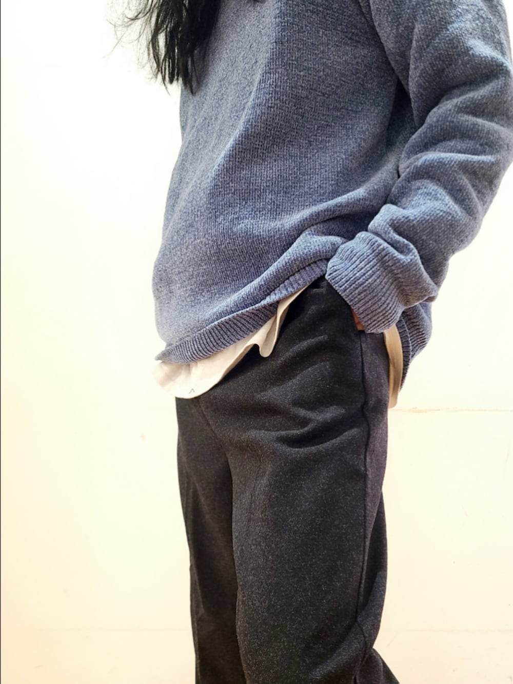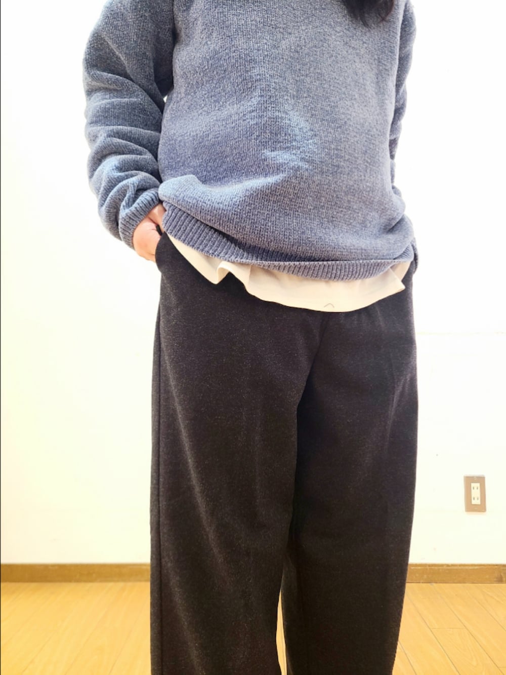 ウール混の暖かな生地感が冬らしいセンタープレススラックス。