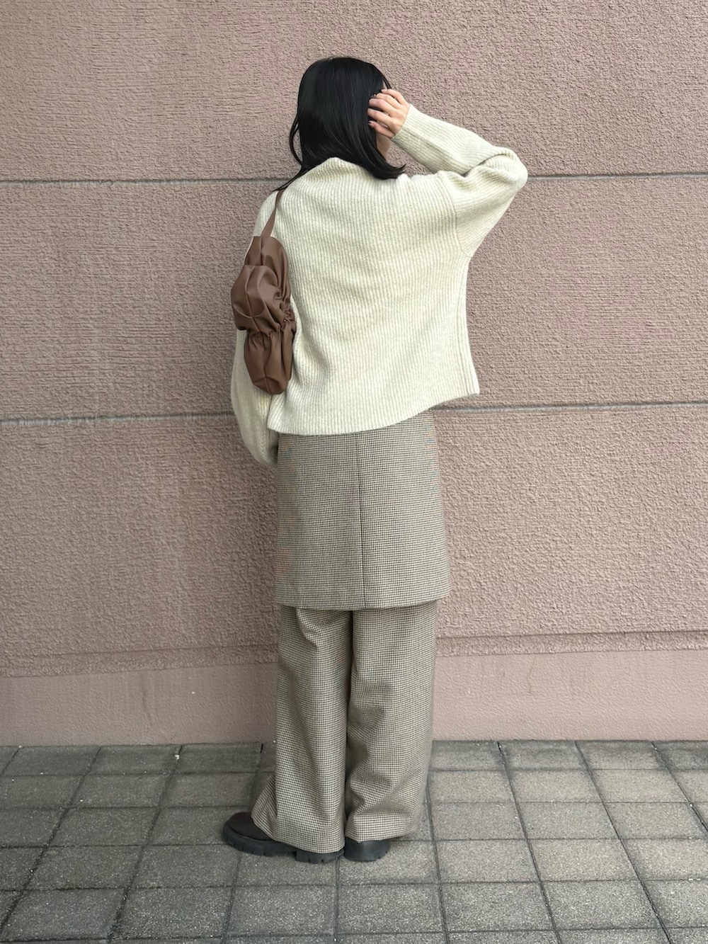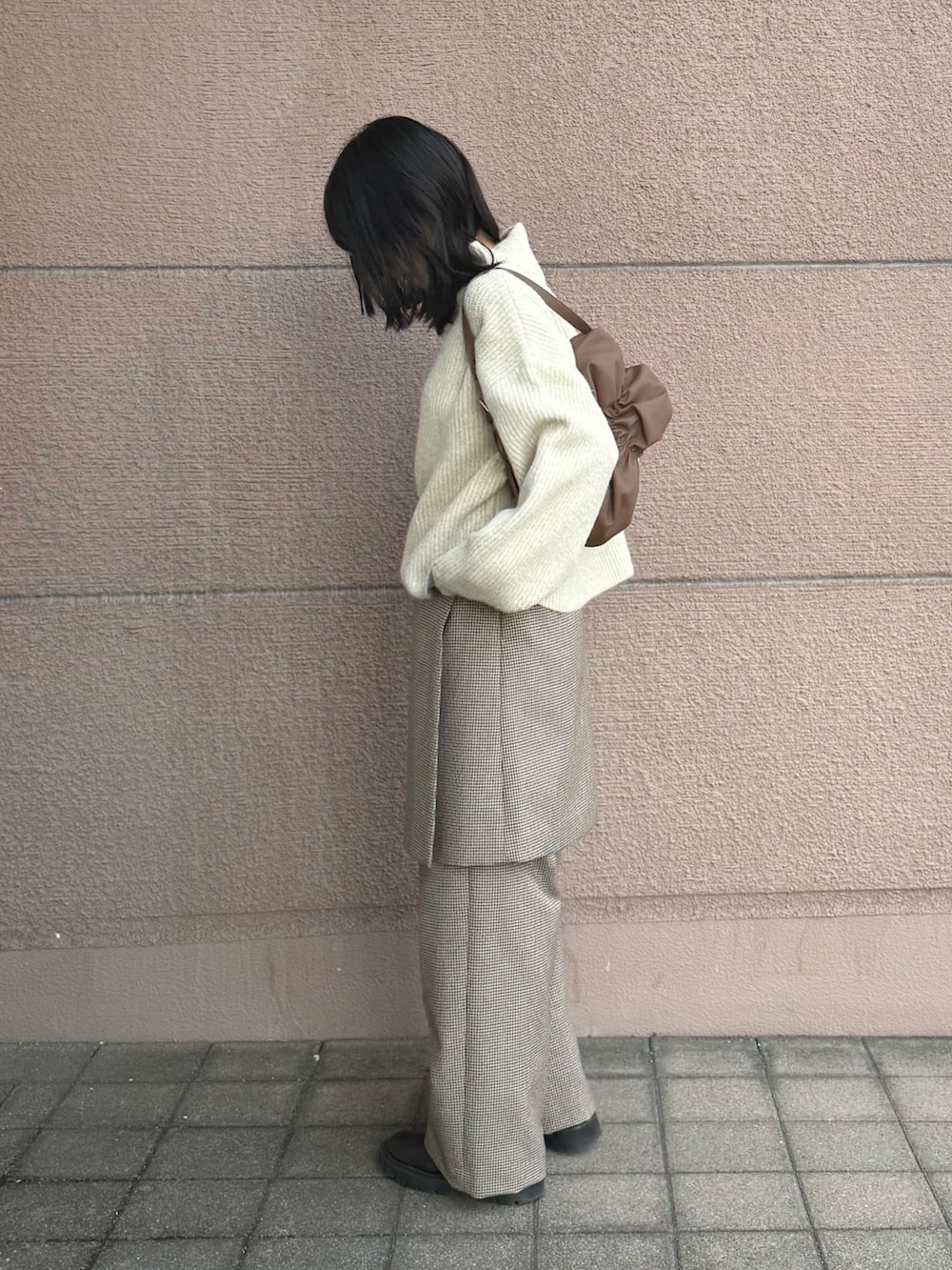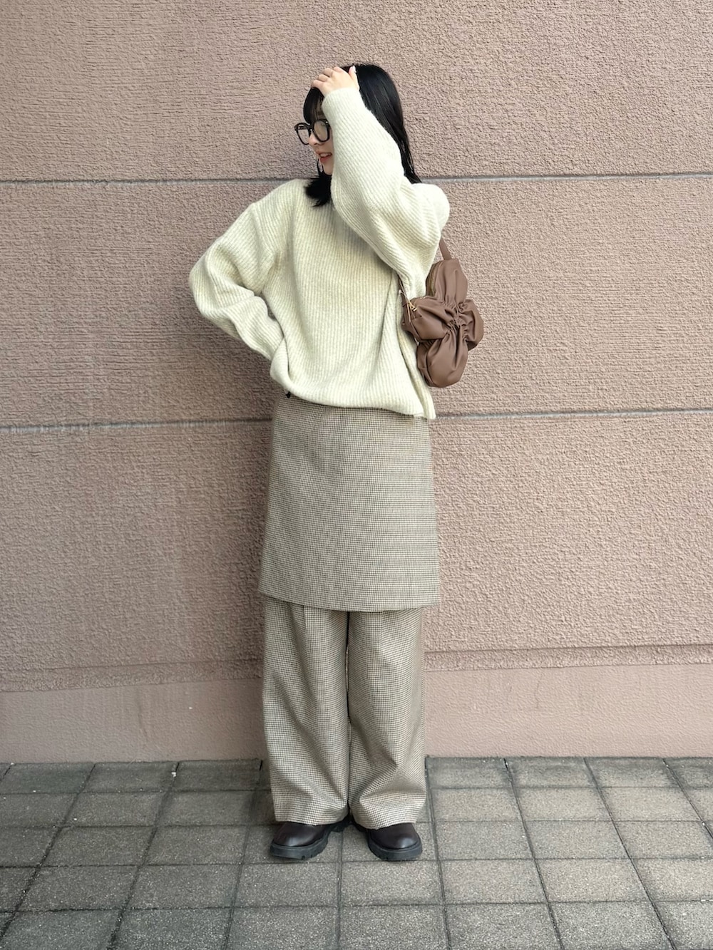 トップスはボトルネックニットでふわふわした生地がとても可愛いアイテムになっています!色味もシルエットも可愛いのでおすすめです!