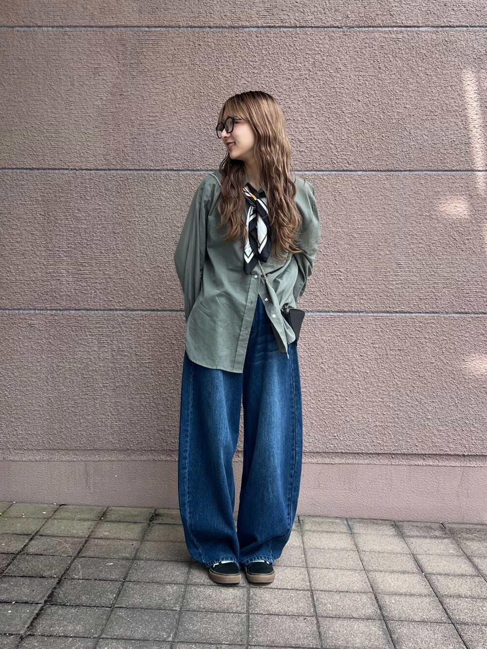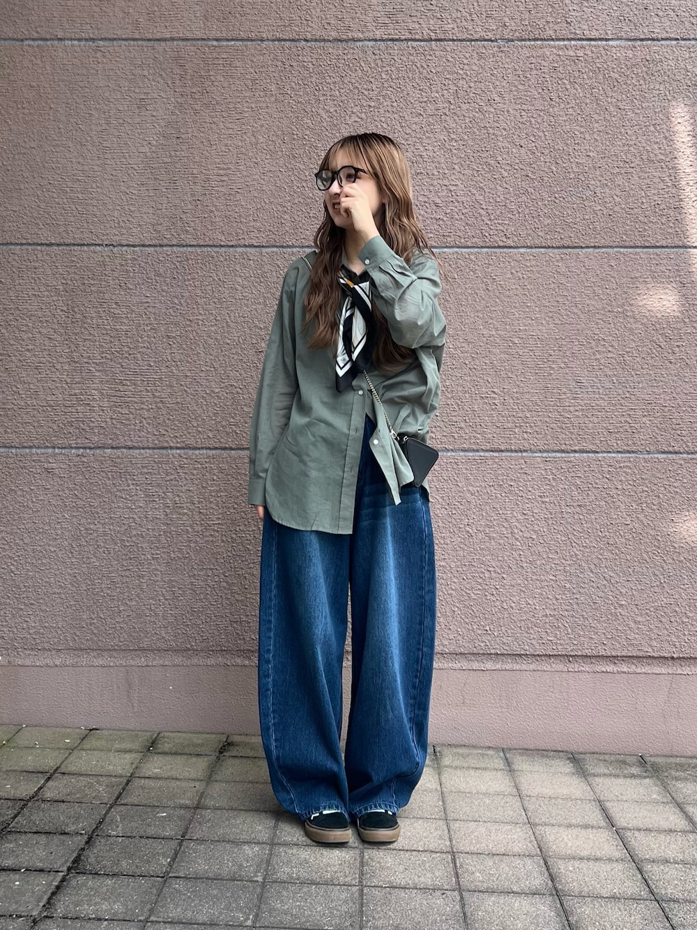 ボトムスはデニムパンツでゆったりと着ていただけるアイテムになっています!