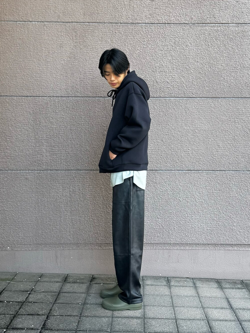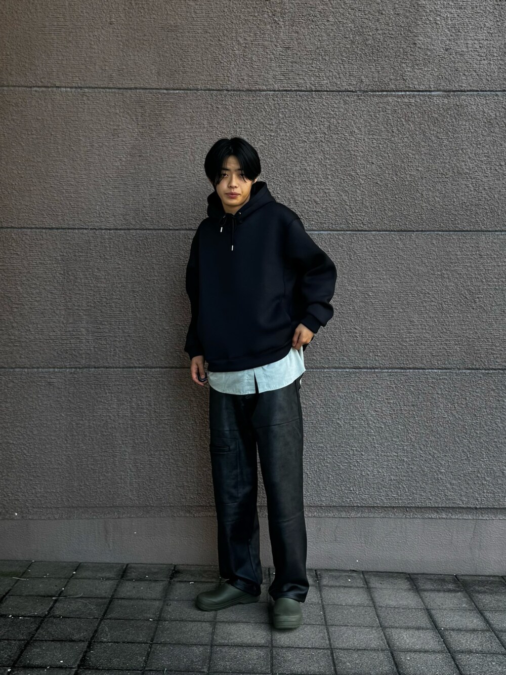 このパーカーは着丈が短いので、レイヤードしやすくなっていて、シャツとの組み合わせがとてもいいです!ぜひ参考にしてください!