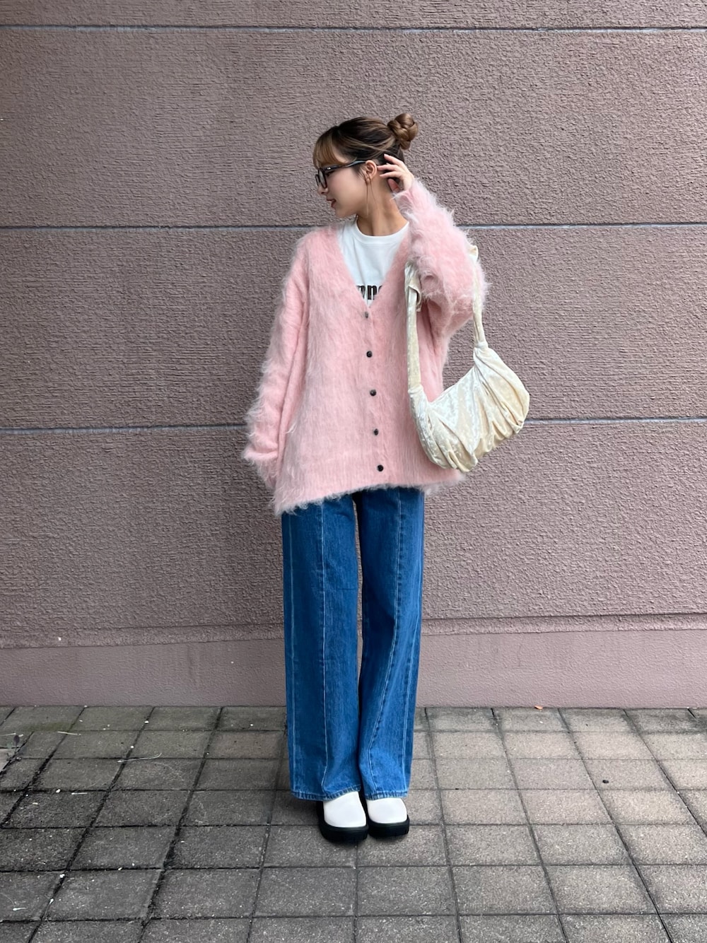 トップスはロンTEEとニットカーディガンでカーディガンはふわっとしていてゆったり着ることが出来ます!全体的に大きめになっています!色味も可愛くおすすめなアイテムです!♡